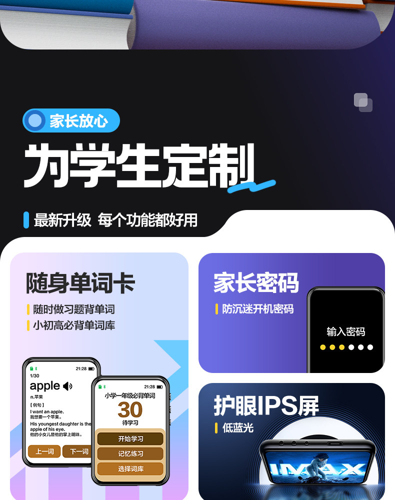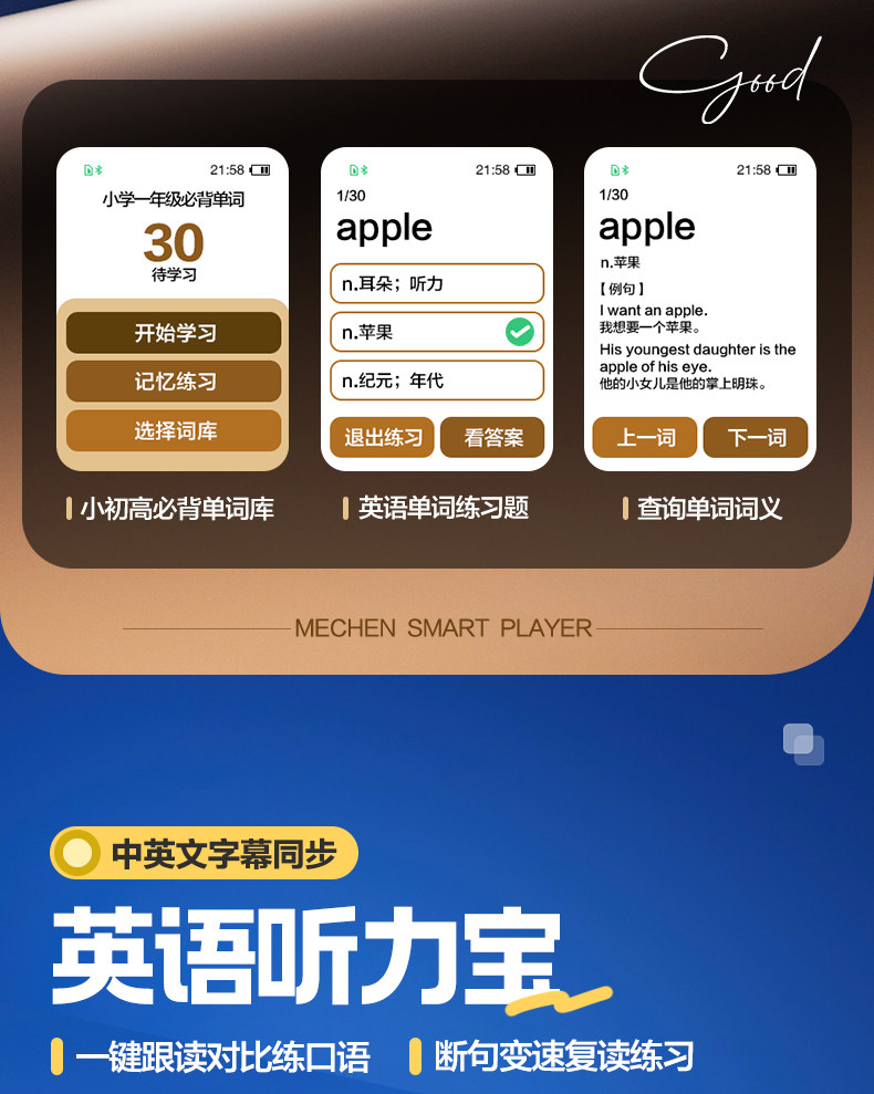 | Memory Capacity | 16g [Downloaded - Songs/Novels/Movies - English Listening/Other Subject Teaching Materials Can Be Specified - (Novels and Movies Can Be Deleted)],32Gb [Pre-Loaded with Songs/Novels/Movies - Supports English Listening/Others Textbook Content - (Novels and Movies Are Removable)],64Gb [Pre-Loaded with Downloads - Songs/Novels/Movies - Supports English Listening/Other Subject Textbooks - (Novels and Movies Are Removable)] |