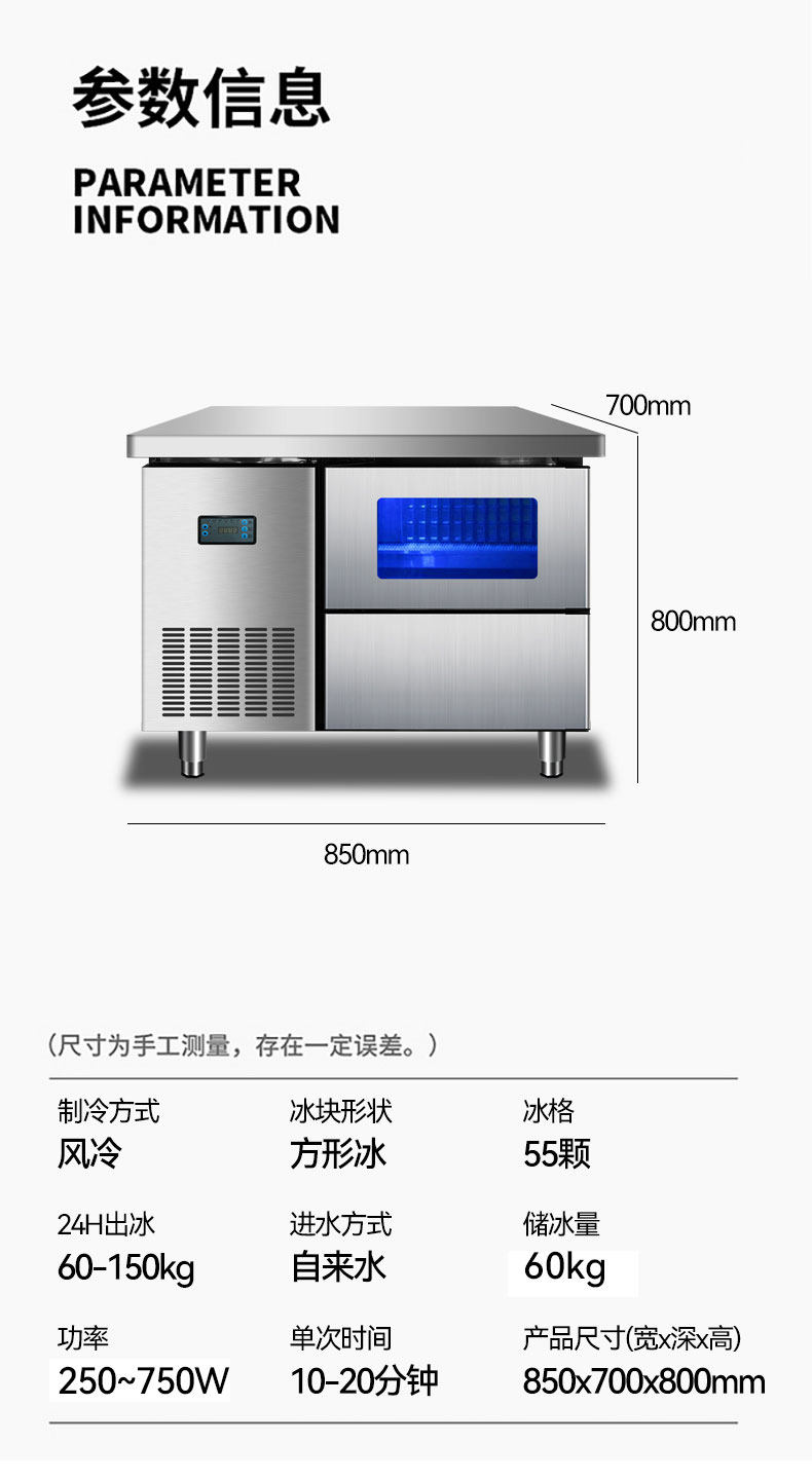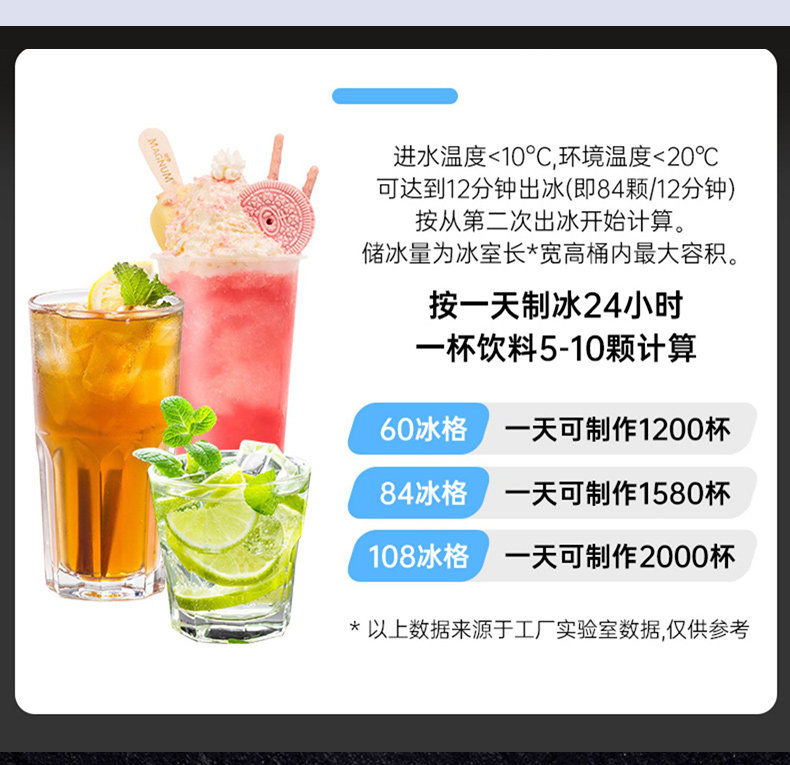 | Color Classification | (Square Ice) 55 Ice Trays, Daily Production of 60kg Large Ice Trays,(Square Ice) 55 Ice Trays, Daily Production of 70kg Large Ice Trays,(Square Ice) 84 Ice Trays, Daily Production of 80kg Large Ice Trays,(Square Ice) 84 Ice Trays, Daily Production of 100kg Large Ice Trays,(Square Ice) 84 Ice Trays, Daily Production of 100kg Ice Trays,(Crescent Ice) 64 Ice Trays with a Daily Output of 60kg of Large Ice Trays,(Crescent Ice) 128 Ice Trays, Daily Production of 120kg Large Ice Trays,(Crescent Ice) Daily Production of 150kg Large Ice Tray Ice Making,(Snowflake Ice) Large Ice Tray Ice Making with a Daily Capacity of 60kg,(Snowflake Ice) Large Ice Tray Ice Making with a Daily Capacity of 80kg,(Snowflake Ice) Large Ice Tray Ice Making with a Daily Capacity of 100kg,Customized Photoshoot (Contact Customer Service) |