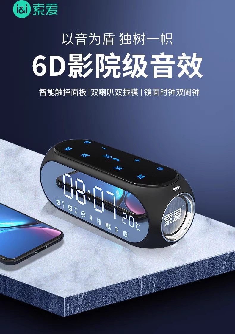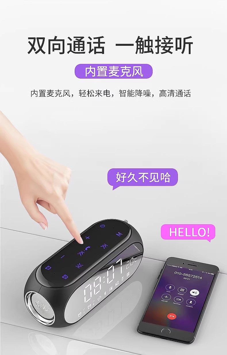 [2Nd Generation Upgrade] Sony Ericsson Wireless Bluetooth Speaker Subwoofer Mirror Gift High-Power Clock for Home Use
