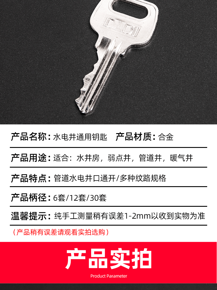 Universal Key for Property Management: Lock Cylinder, Key for Utility Room, Water Well, Electric Well, Water Meter, Water and Electricity Room, Fire Door, Weak Current Room