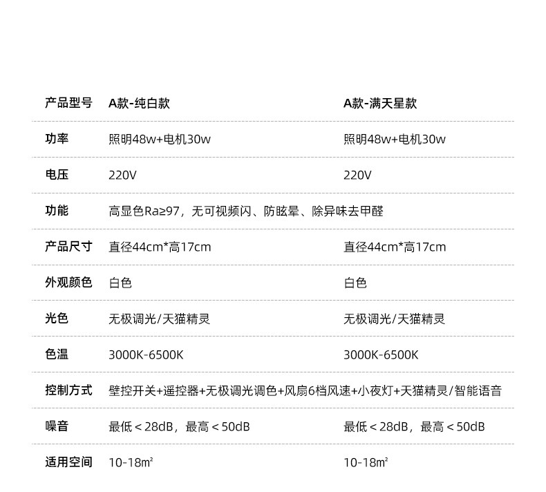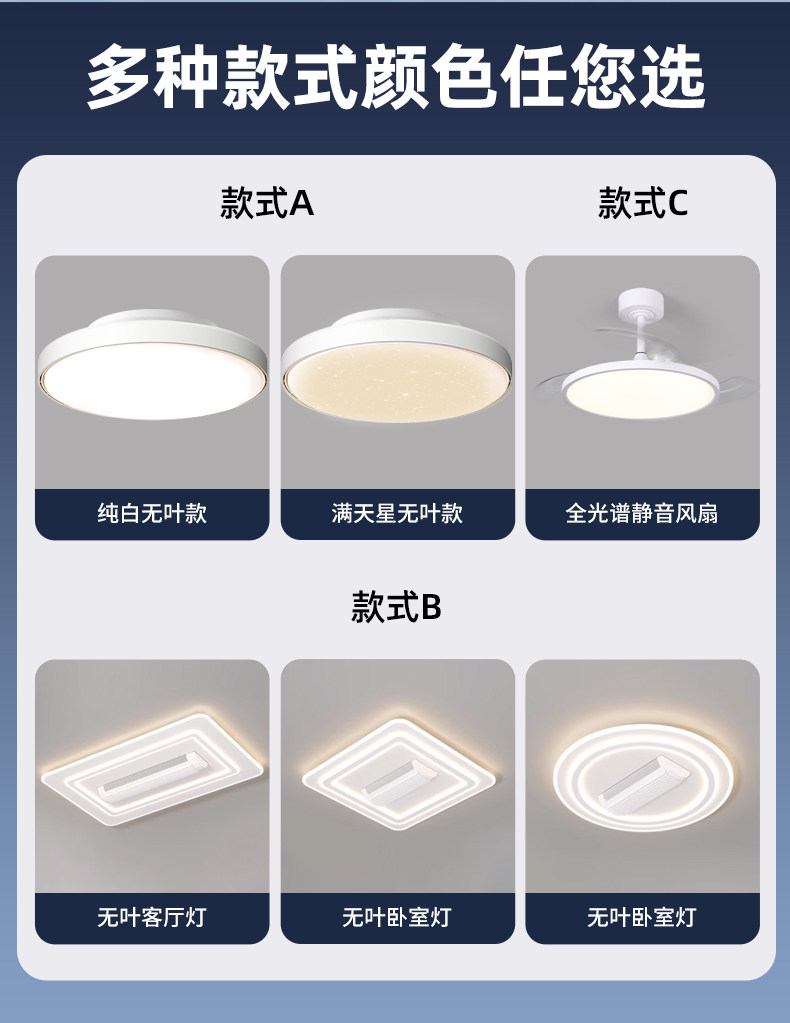 | Color Classification | Contact Customer Service to Place an Order and Get a Surprise - Air Purification [Odor Removal, Formaldehyde Removal, Installation Included],[Milk White Edge-Pure White] 84W Voice Direct Control/Full Spectrum Eye Protection/Large Diameter Air Outlet/Frequency Conversion Energy Saving,[Pearl White-Flat Cover Model] 84W Voice Direct Control/Large Diameter Air Outlet/Variable Frequency Energy Saving/Pure Copper Motor,[Pearl White-Starry Sky Model] 84W Voice Direct Control/Large Diameter Air Outlet/Inverter Energy Saving/Pure Copper Motor,[Crystal Edge-Pure White] 84W Voice Direct Control/Full Spectrum Eye Protection/Large Diameter Air Outlet/Frequency Conversion Energy Saving,[Pure White] Full Spectrum Eye Protection/Deodorization and Formaldehyde Removal/48W Stepless Dimming/Frequency Conversion Energy Saving,[Gypsophila] Full Spectrum Eye Protection/Deodorization and Formaldehyde Removal/48W Stepless Dimming/Frequency Conversion Energy Saving,【Super Powerful 3Rd Gen - Flat Cover】108W Voice Control / Full Spectrum Eye Protection / High Airflow with Bright Light,【Super Powerful 3Rd Gen - Dual Layer】108W Voice Control / Full Spectrum Eye Protection / High Brightness & Powerful Fan,【Super Powerful 3Rd Generation - Walnut Wood Edition】108W Voice Control / Full Spectrum Eye Protection / High Brightness & Powerful Fan,[Milk White Edge-Pure White] 84W Stepless Dimming/Full Spectrum Eye Protection/Large Diameter Air Outlet/Frequency Conversion Energy Saving,[Milk White Edge-Pure White] 84W Tmall Elf/Full Spectrum Eye Protection/Large Diameter Air Outlet/Variable Frequency Energy Saving,【Crystal Edge - Pure White】84W Tmall Genie Compatible / Full Spectrum Eye Protection / Large Diameter Air Outlet / Variable Frequency Energy Saving,Surrounding Light Circle [120°Left and Right Air Supply] 100W Voice Direct Control/Φ60Cm,Surround Light Square [120°Left and Right Air Supply] 100W Voice Direct Control/60*60Cm,Surround Light Length [120°Left and Right Air Supply] 208W Voice Direct Control/108*68Cm,[Happy Flower-Cream White] 72W-50Cm-Offline Voice,【Happy Bloom - Cream White】72W - 50cm - Tmall Genie Compatible,[Happy Flower-Walnut Color] 72W-50Cm-Offline Voice,【Happy Bloom - Walnut】72W - 50cm - Tmall Genie Compatible,Ultra-Thin 2.5cm- 36inch White 48W Three-Tone Lighting/Full Spectrum Eye Protection/Ra97 High Cri,Package A1 [Two-Room Installation] Pure White Stepless Dimming,Package A3 [Two-Room Set] Starry Night Stepless Dimming,Package B1 [Two Bedrooms and One Living Room] Pure White Stepless Dimming,Package B3 [Two Bedrooms, One Living Room] Starry Sky Stepless Dimming,Package C1 [Three Bedrooms and One Living Room] Pure White Stepless Dimming,Package C3 [Three Bedrooms and One Living Room] Starry Sky Stepless Dimming,180°Left and Right Air Supply - Bladeless Round Light 80W-50Cm/Three-Color Dimming + Free Remote Control/Full Spectrum Eye Protection,180°Left and Right Air Supply - Bladeless Round Light 80W-50Cm/Stepless Dimming + Free Remote Control/Full Spectrum Eye Protection,180°Left and Right Air Supply - Bladeless Round Light 80W-50Cm/Offline Voice + Remote Control/Full Spectrum Eye Protection,180°Left and Right Air Supply - Bladeless Square Lamp 90W-50Cm/Three-Color Dimming + Free Remote Control/Full Spectrum Eye Protection,180°Left and Right Air Supply - Bladeless Square Lamp 90W-50Cm/Stepless Dimming + Free Remote Control/Full Spectrum Eye Protection,180 ° Left and Right Air Supply - Bladeless Square Lamp 90W-50Cm/Offline Voice + Free Remote Control/Full Spectrum Eye Protection,Package A4 [Two-Room Set] - Gypsophila & Tmall Genie,Package B2 [Two Bedrooms, One Living Room] - Standard Daytime Alexa |