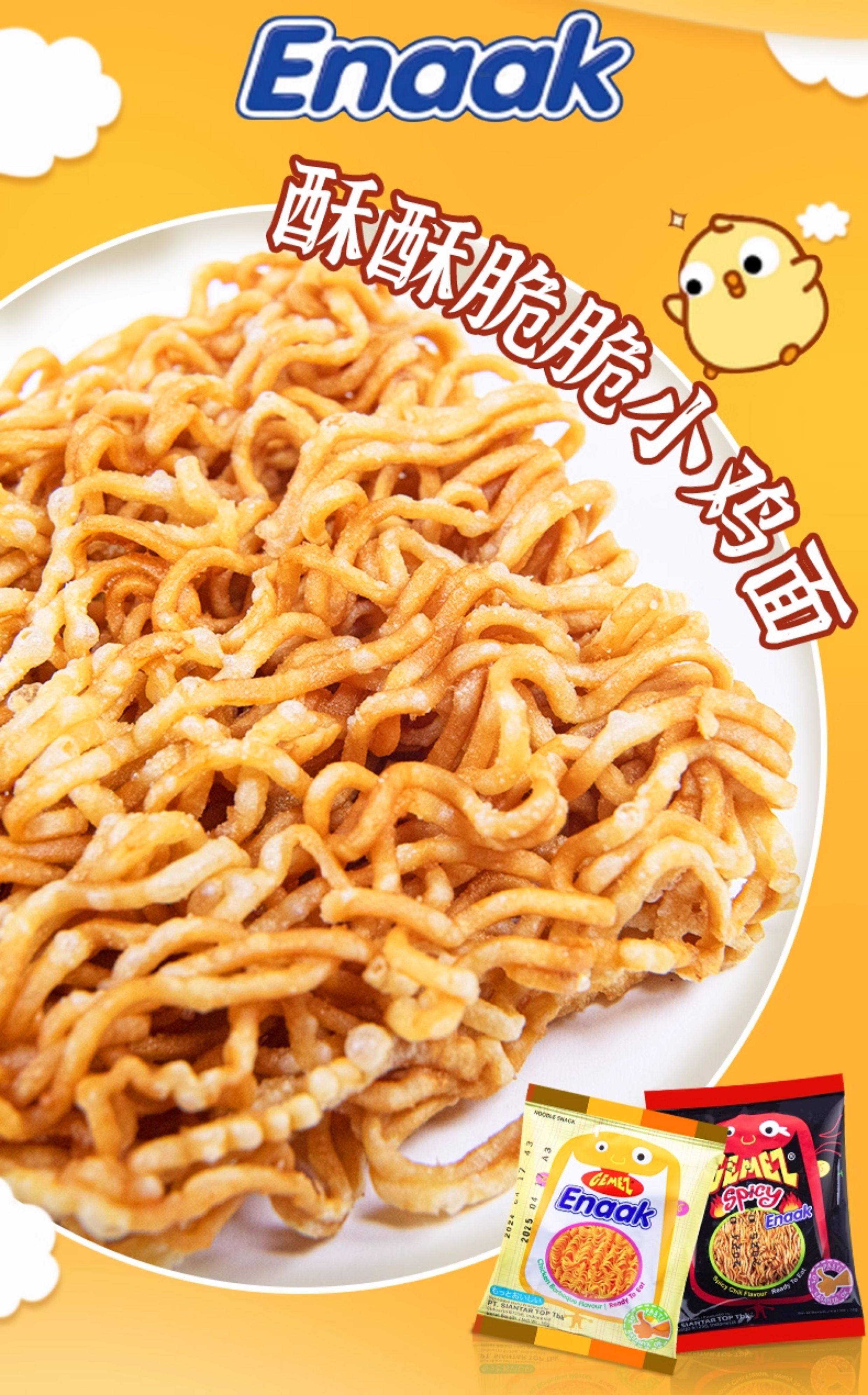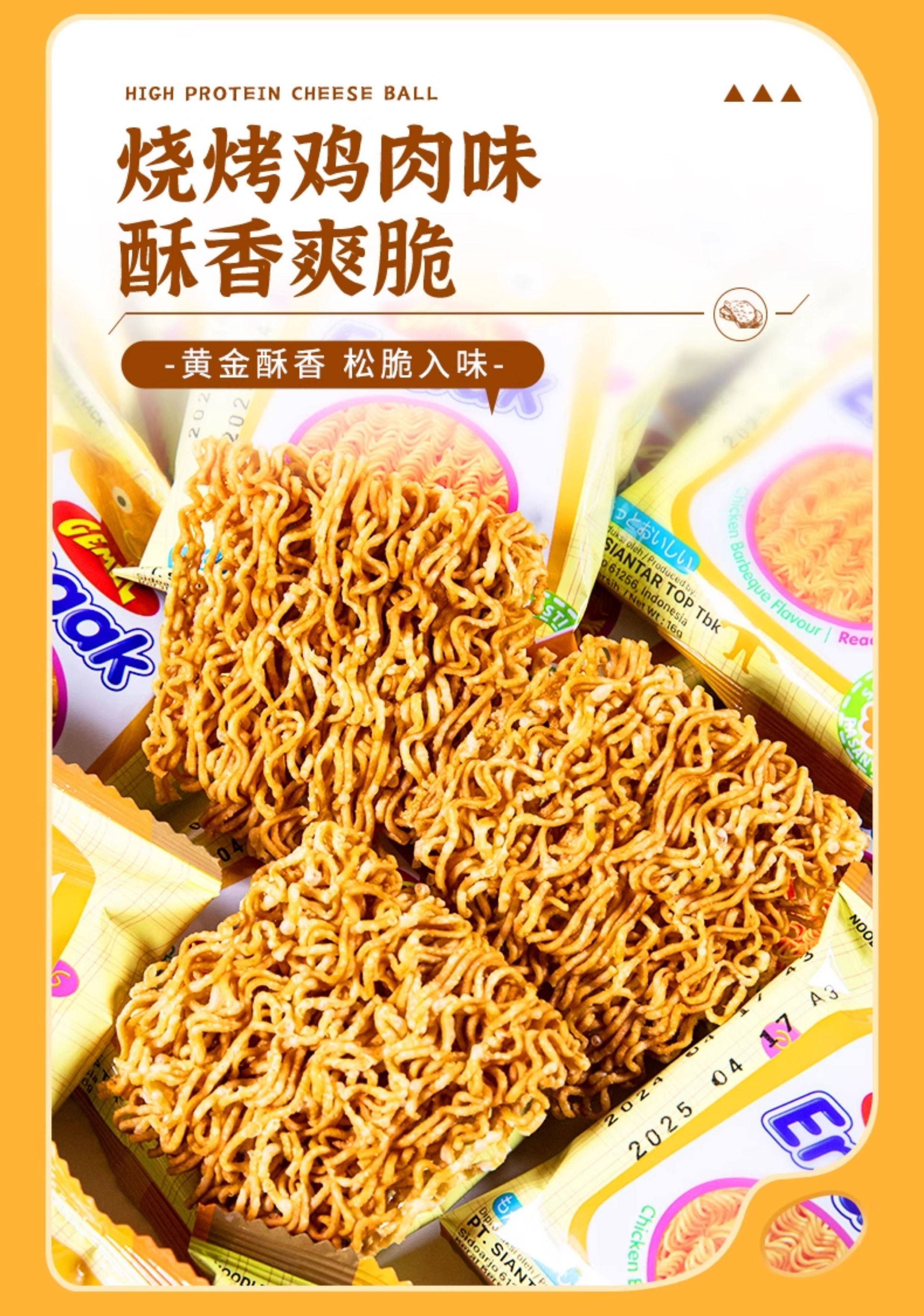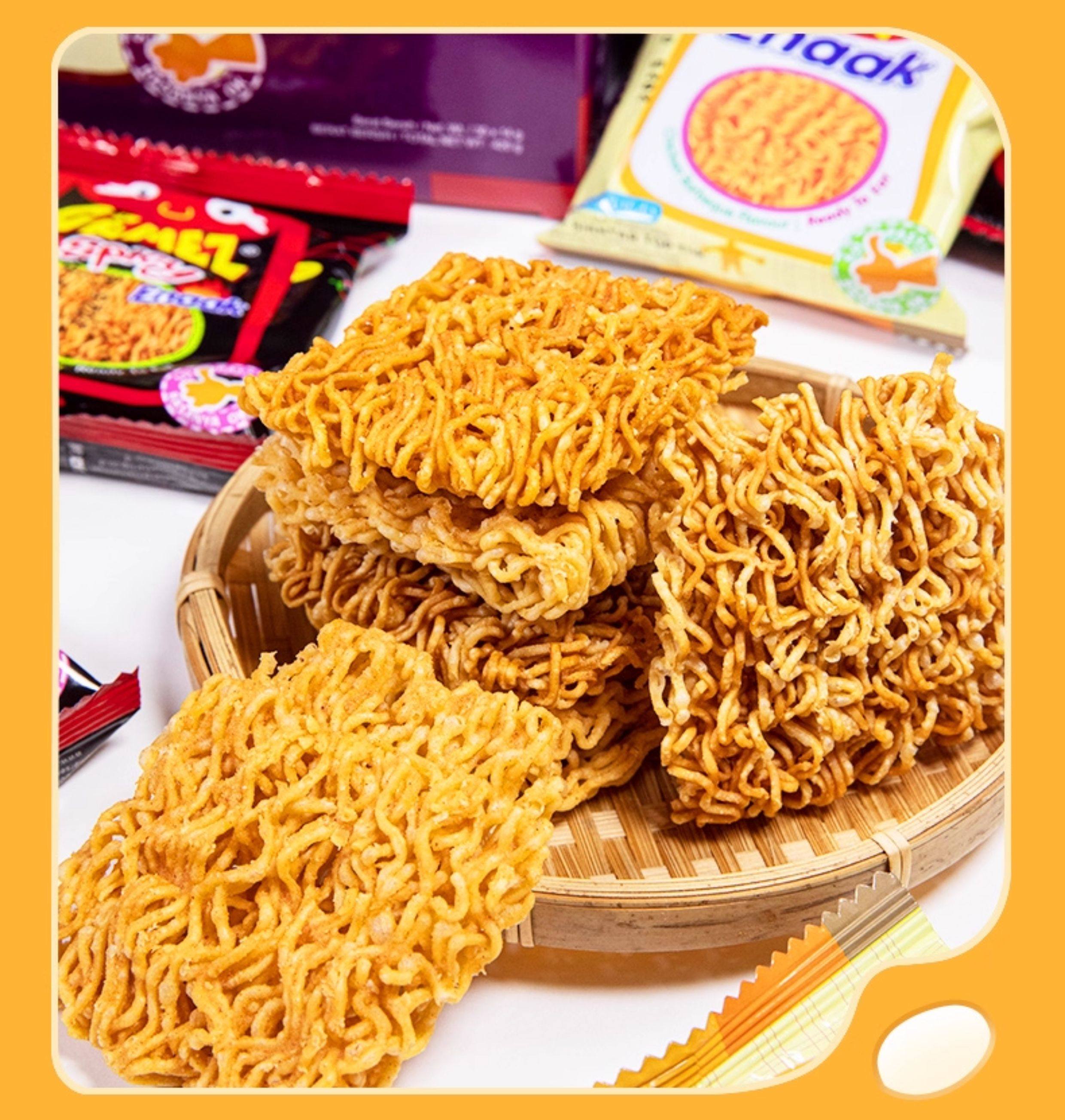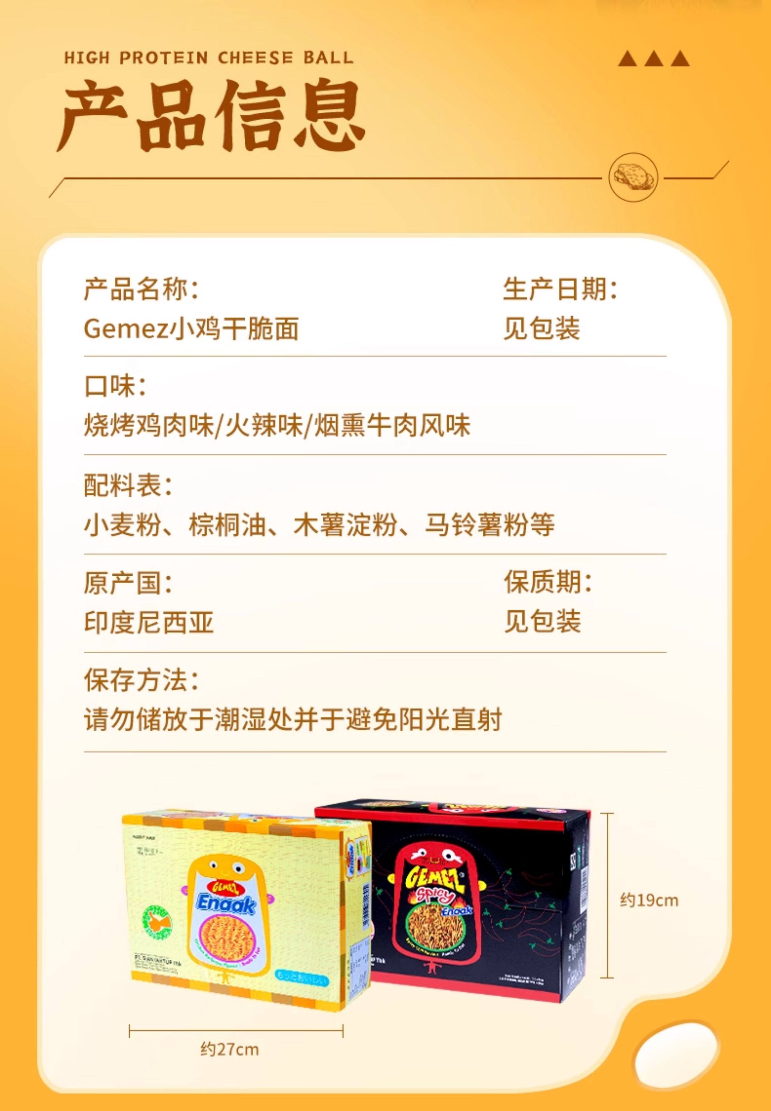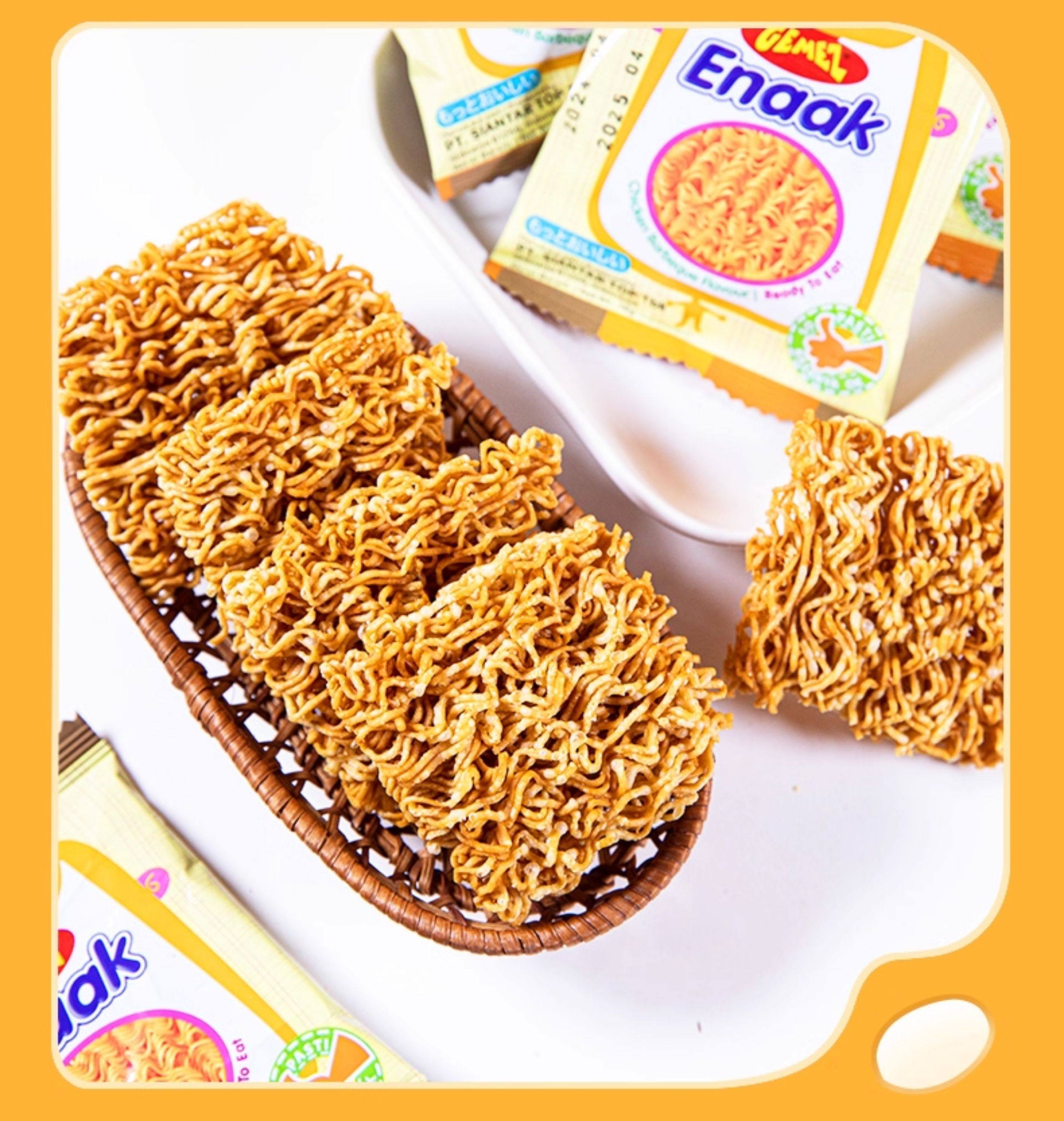 Gemez Indonesian Crispy Chicken Noodles with Barbecue Flavor, Whole Box Imported Dry Instant Noodles, Popular Snack for Kids to Satisfy Their Cravings