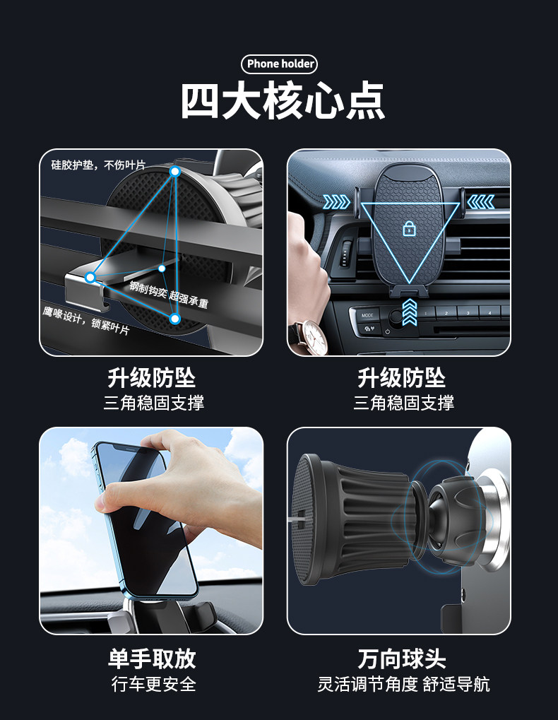 2024 New Car Mobile Phone Support Bracket Car Universal Fully Automatic Air Outlet Bracket New Navigation Universal Mobile Phone Clip
