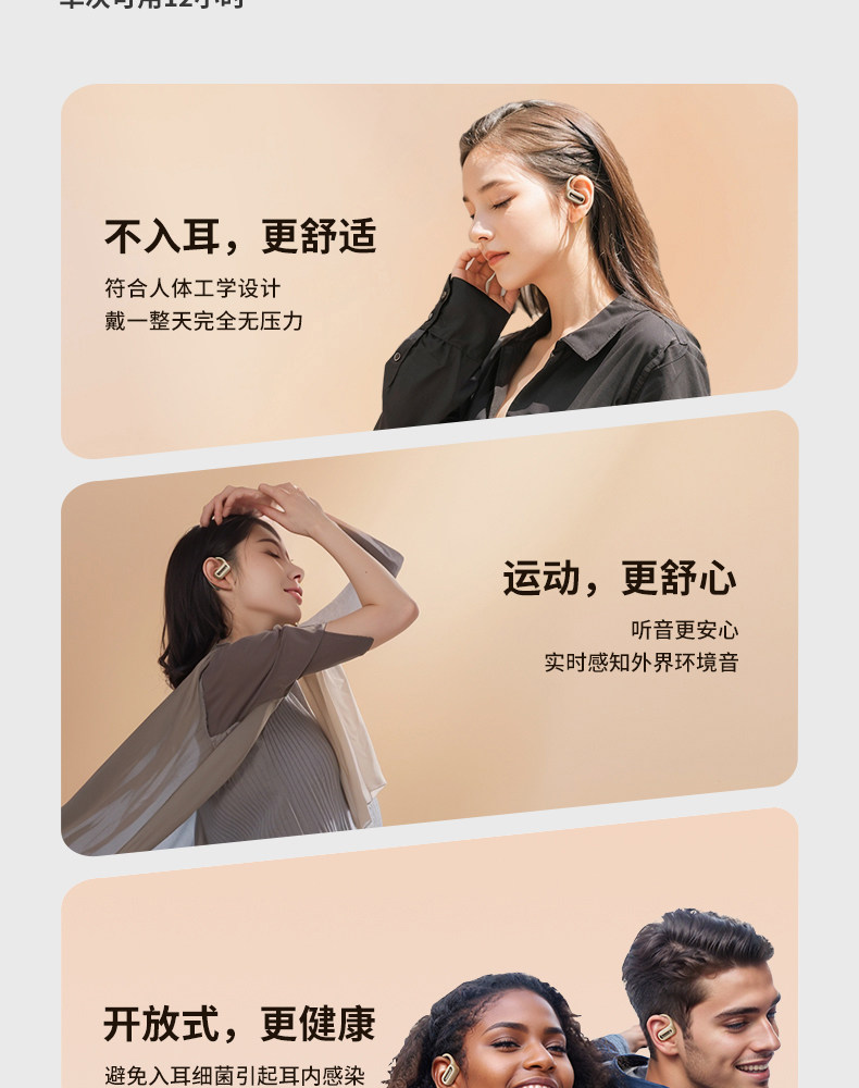 Bluetooth Earphones, Over-Ear, Air Conduction, Wireless, Open, Non-In-Ear, for Sports and Running, Noise Reduction, Long Battery Life, 2025 New Model