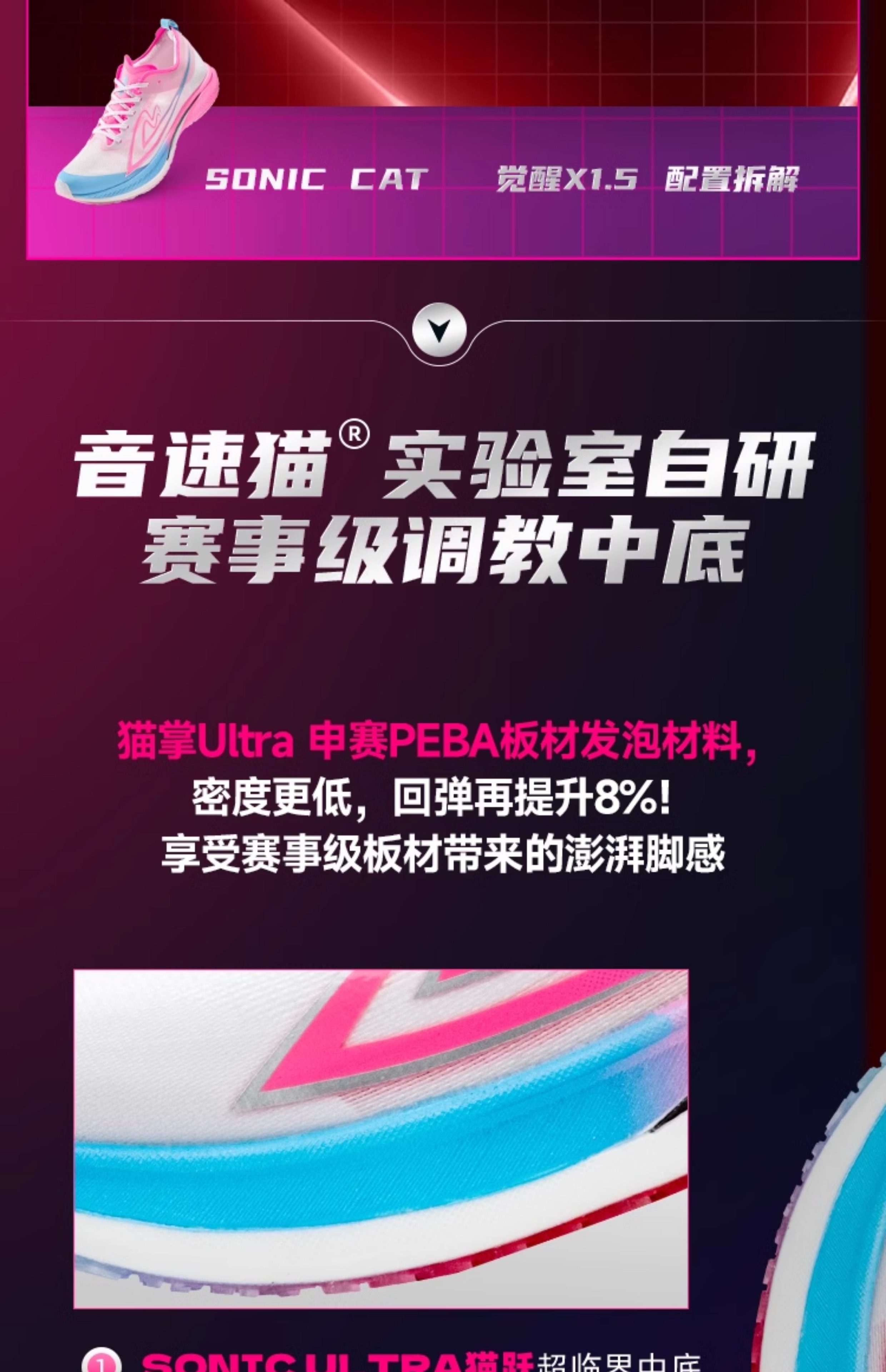 [North Sports Joint Research]Sonic Cat Awakening X1.5 Carbon Plate Racing Running Shoes Official Flagship Store Physical Fitness Test Competition Training