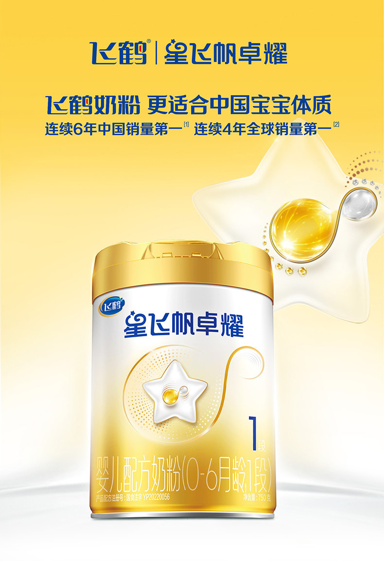 Feihe Xing Feifan Zhuoyao 1 Stage A2Β-Casein Milk Source Infant Formula Milk Powder 750g*6 Cans 5Hmos