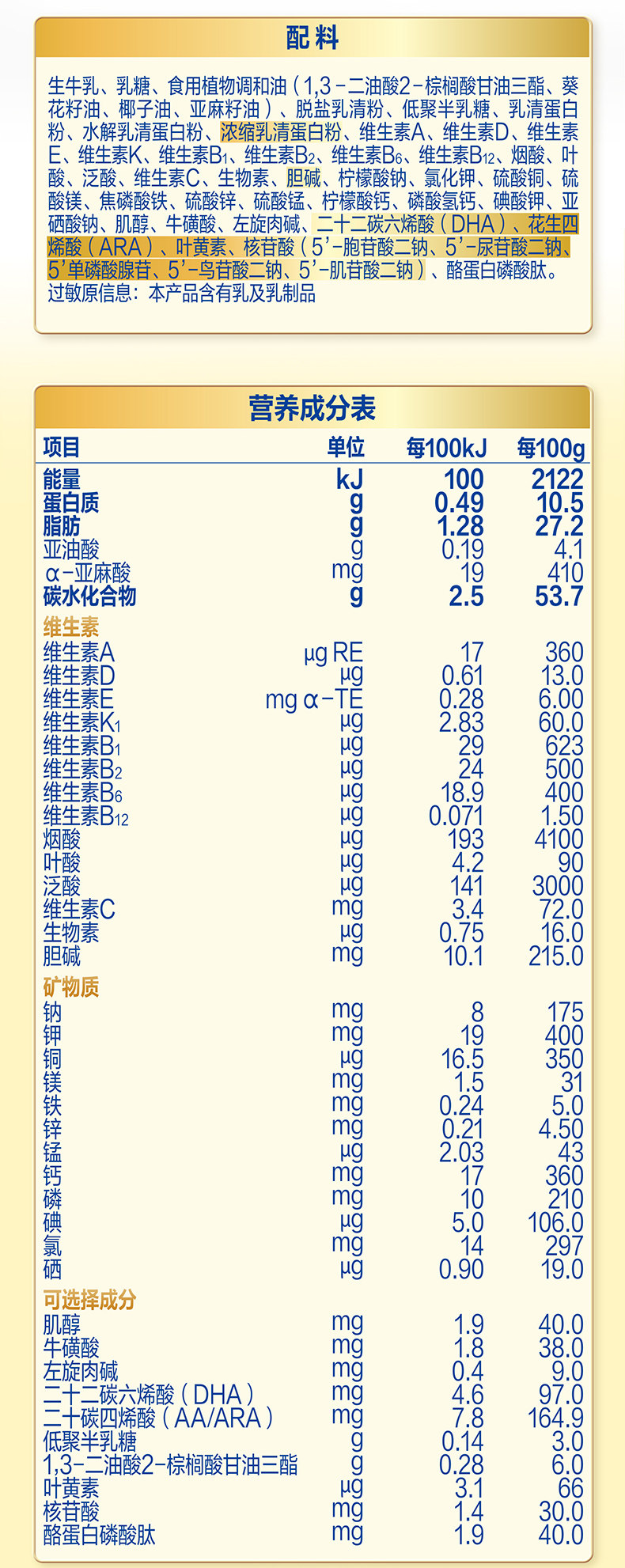 | Nutritional Elements | Lactose |