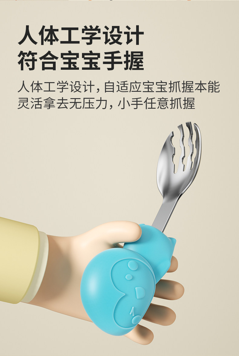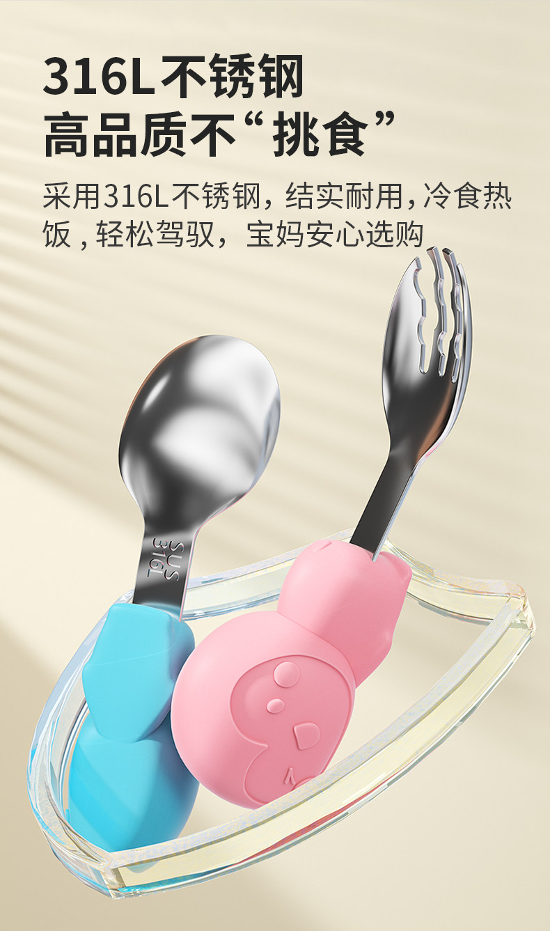 Baby Learning to Eat Training Fork and Spoon Set Infant Children's Tableware Supplementary Food Tools 316 Stainless Steel Silicone Short Handle