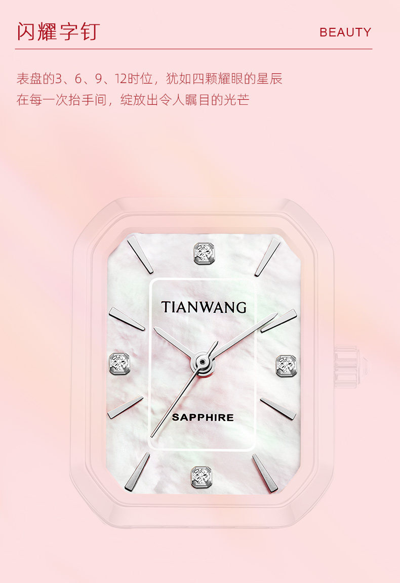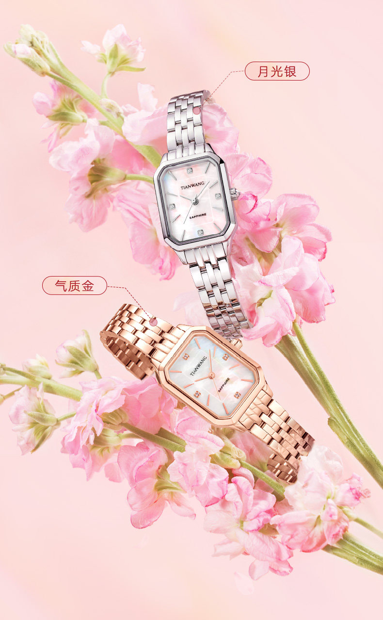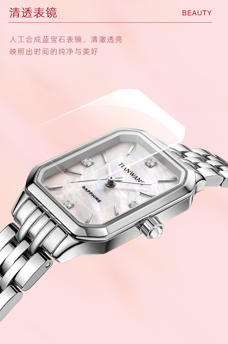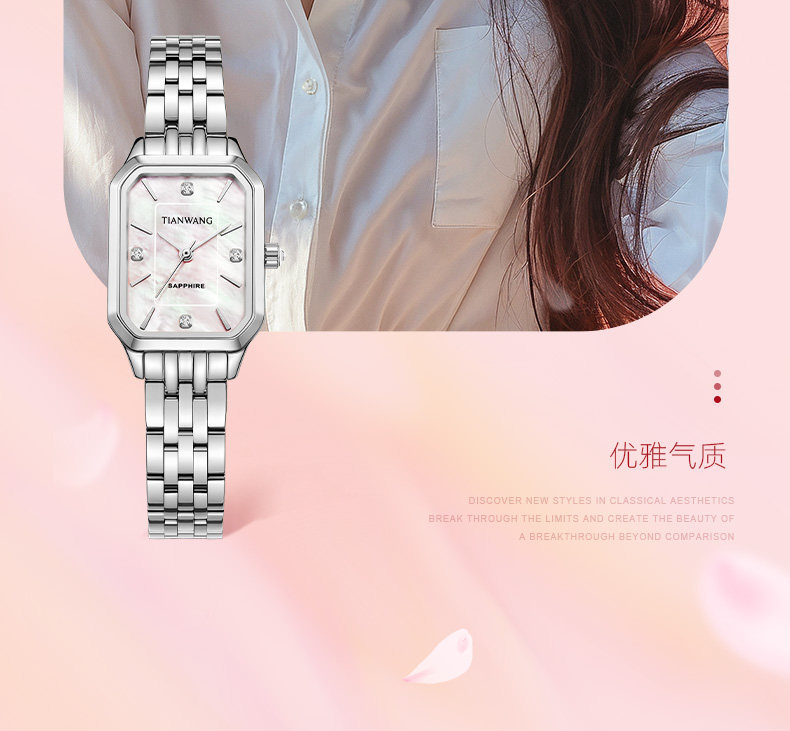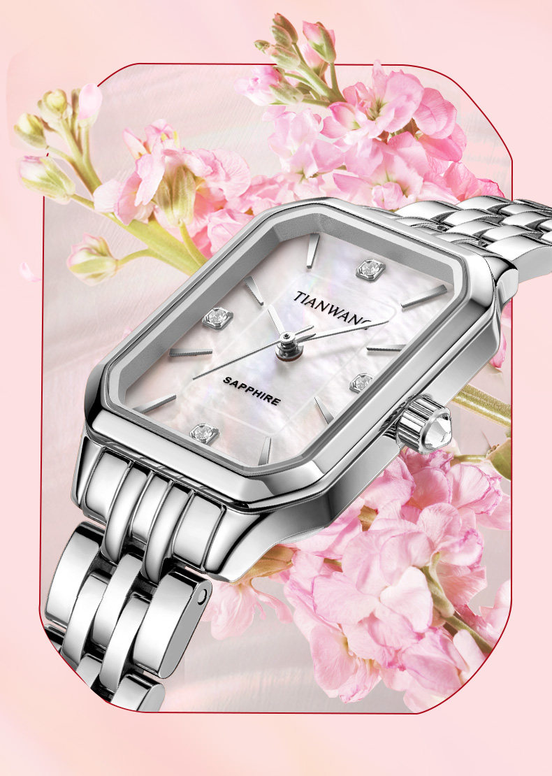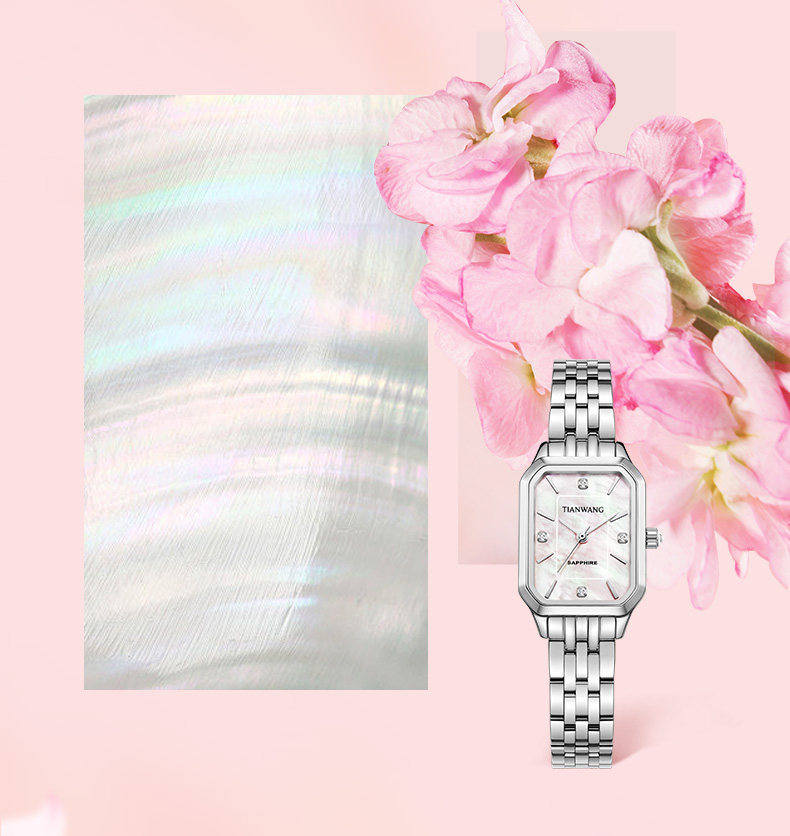 Tianwang Watch Mother-Of-Pearl Small Square Watch Niche Light Luxury Quartz High-Value Women's Watch Silver 31542 New Year Gift