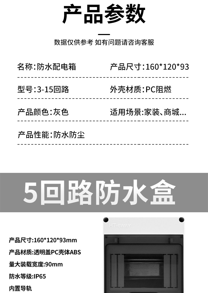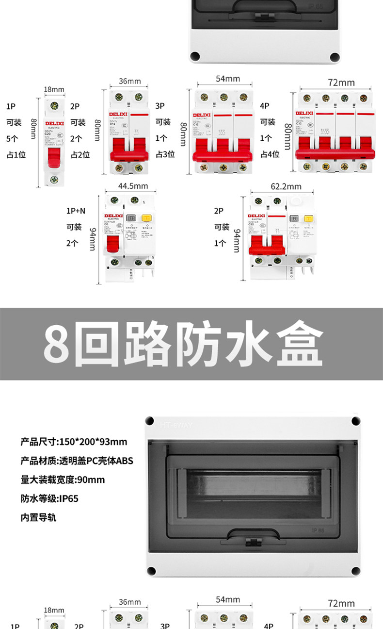 | Color Classification | Support Customization,Contact Customer Service!,Indoor 2-Circuit Box[Not Waterproof],Waterproof Box Ht-2 Circuit,Waterproof Box Ht-3 Circuit,Waterproof Box Ht-5 Circuit,Waterproof Box Ht-5 Circuit[With Lock],Waterproof Box Ht-8 Circuit,Waterproof Box Ht-12 Circuit,Waterproof Box Ht-15 Circuit,Waterproof Box Ht-18 Circuit,Waterproof Box Ht-24 Circuit,Waterproof Distribution Box - 5 Circuit,Waterproof Distribution Box - 9 Circuit,Circuit Breaker 2P-C16 (Delixi) + 2-Gang Waterproof Junction Box,Circuit Breaker 2P-C32 (Delixi) + 2-Gang Waterproof Junction Box,Circuit Breaker 2P-C40 (Delixi) + 2-Gang Waterproof Junction Box,Circuit Breaker 2P-C63 (Delixi) + 2-Gang Waterproof Junction Box,Leakage Protection 2P-C16 (Delixi) + 2-Position Waterproof Box,Leakage Protection 2P-C32 (Delixi) + 2-Position Waterproof Box,Leakage Protection 2P-C40 (Delixi) + 2-Position Waterproof Box,Leakage Protection 2P-C63 (Delixi) + 2-Position Waterproof Box,Five-Hole 10A (Delixi) + 5-Position Waterproof Box,Five-Hole 16A (Delixi) + 5-Position Waterproof Box,[Charging Pile 3.5Kw Dedicated]New Leakage Protection 2P-C32 (Delixi),New Leakage Protection 2P-C40 (Delixi) + 5-Position Waterproof Box,New Leakage Protection 2P-C63 (Delixi) + 5-Position Waterproof Box,Old Model Leakage Protection 2P-C32 (Delixi) + 5-Position Waterproof Box,Old Model Leakage Protection 2P-C40 (Delixi) + 5-Position Waterproof Box,[Dedicated for Bull Charging Piles]Old Model Missing Insurance 2P-C63 (Delixi),Leakage Protection 2P-C16 (Delixi) + Five Holes 10A + 5-Position Waterproof Box,[Special for Car Charger]Leakage Protection 2P-C16 (Delixi) + Five Holes 16A,Leakage Protection 2P-C40 (Delixi) + Five Holes 10A + 5-Position Waterproof Box,[7Kw Dedicated Charging Station]Leakage Protection 2P-C40 (Delixi) + Five-Hole 16A,Leakage Protection 2P-C32 (Delixi) + Five Holes 16A + 2 Holes 10A + 5-Position Waterproof Box,Leakage Protection 2P-C40 (Delixi) + Five Holes 16A + 2 Holes 10A + 5-Position Waterproof Box,Leakage Protection 2P-C40 (Delixi) + Circuit Breaker 2P-C40 + 5-Position Waterproof Box,Circuit Breaker 2P-C40 (Delixi) + Grounding Terminal Block + 5-Gang Waterproof Junction Box,Circuit Breaker 4P-C63 (Delixi) + Grounding Terminal Block + 5-Gang Waterproof Junction Box,Leakage Protection 2P-C40 (Delixi) + Grounding Terminal + 5-Position Waterproof Box,Leakage Protection 4P-C63 (Delixi) + Grounding Terminal + 5-Position Waterproof Box,Leakage Protection 2P-C32 (Delixi) + Five Holes 16A + Five Holes 10A + 6-Position Waterproof Box,Leakage Protection 2P-C40 (Delixi) + Five Holes 16A + Five Holes 10A + 6-Position Waterproof Box,Leakage Protection 2P-C63 (Delixi) + Five Holes 16A + Five Holes 10A + 6-Position Waterproof Box,[Outdoor Power 10A Socket]Leakage Protection 2P-C40 (Delixi) + Five-Hole 10A*3,[Outdoor Power 16A Socket]Leakage Protection 2P-C40 (Delixi) + Five Holes 16A*3,[1000m Remote Control]Leakage Protection 2P-C40 (Delixi) + Remote Control Switch + 5-Hole 16A,[1000m Remote Control]Leakage Protection 2P-C40 (Delixi) + Remote Control Switch + Five Holes 16A + Five Holes 10A,[Timing]Leakage Protection 2P-C40 (Delixi) + Time Control Switch 40A + Contactor,[Timing]Leakage Protection 2P-C40 (Delixi) + Time Control Switch 40A + Contactor + Five Holes 10A,[Lightning Protection]Leakage Protection 2P-C40 (Delixi) + Lightning Arrester 40A + Five Holes 16A,[Electric Meter Set]Leakage Protection 2P-C40 (Delixi) + Single-Phase Meter 60A + Five Holes 16A,[Electric Meter Set]Leakage Protection 2P-C63 (Delixi) + Single-Phase Meter 60A + Five Holes 16A,[Electric Meter Set]Leakage Protection 2P-C40 (Delixi) + Single-Phase Meter 60A + Five Holes 16A*2,[Overvoltage Protection]Leakage Protection 2P-C40 (Delixi) + Over- and Under-Voltage Protection 40A + Five Holes 16A + Five Holes 10A,[High Power 25A Socket]Circuit Breaker 4P-C63 (Delixi) + Four-Outlet 25A Socket[Free 25A Plug],[High Power 25A Socket]Leakage Protection 4P-C63 (Delixi) + Four-Hole 25A Socket[Free 25A Plug] |