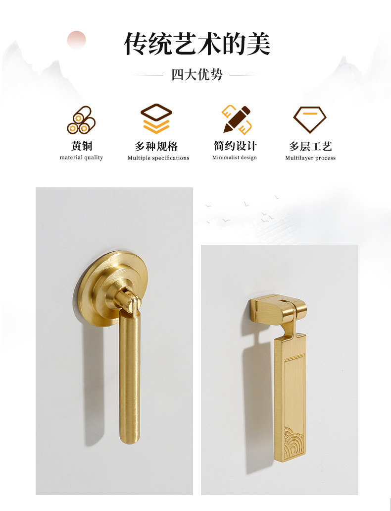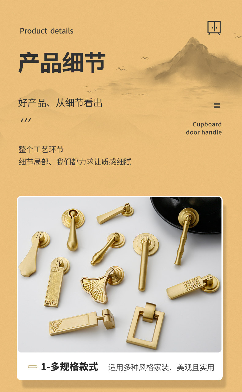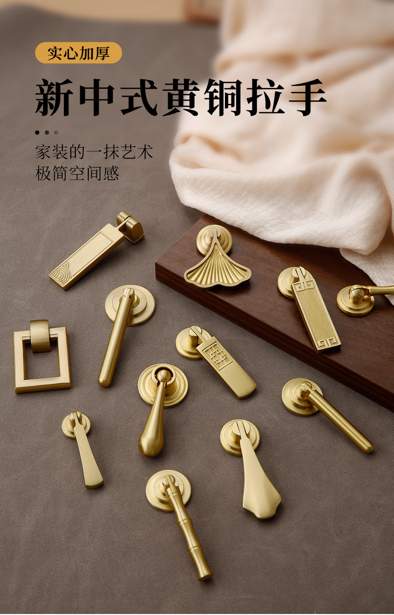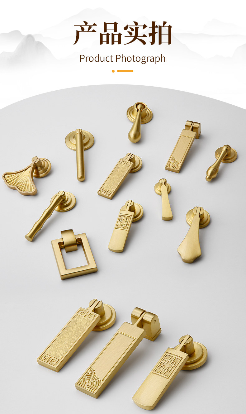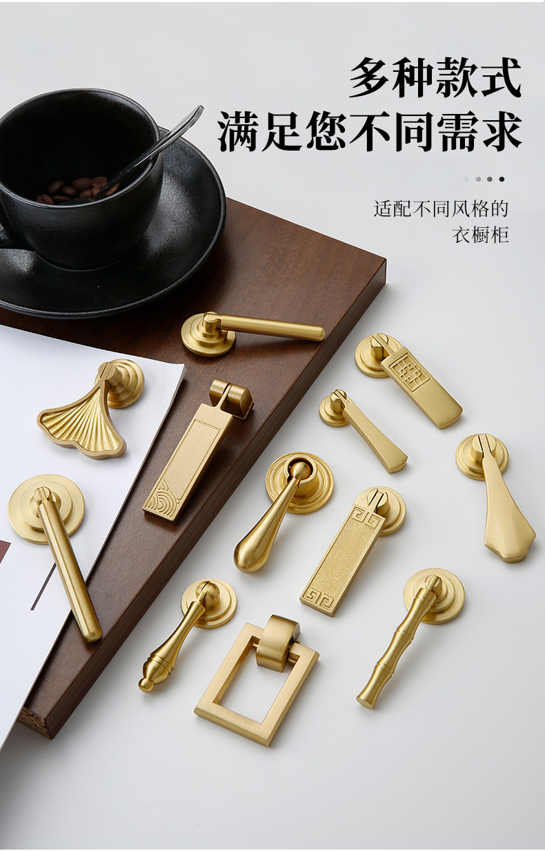 French Brass Cabinet Door Handle Cabinet Door Handle Modern Simple Accessible Luxury Chinese Pendant Cabinet Wardrobe Drawer Handle
