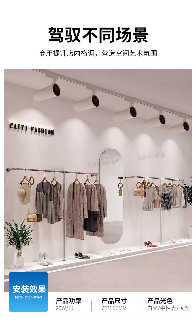 Clothing Store Spotlights Led Track Lights Commercial Ceiling Cob Super Bright Track-Mounted Spotlights Home Background Wall Lights