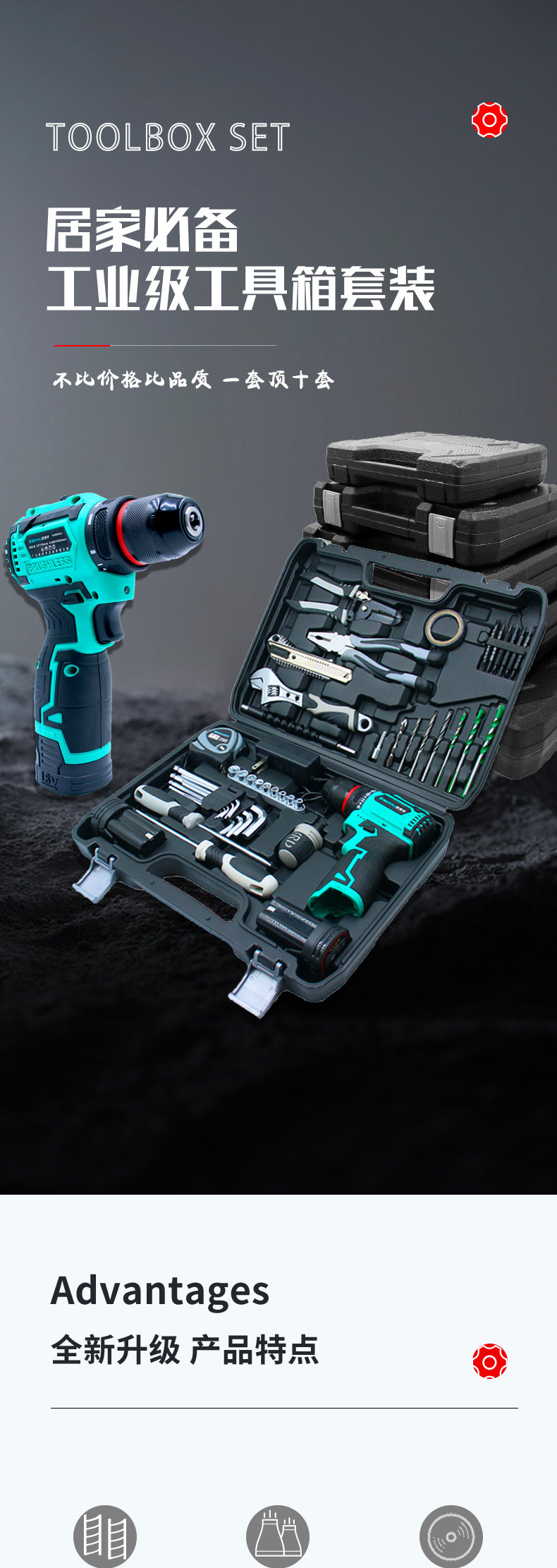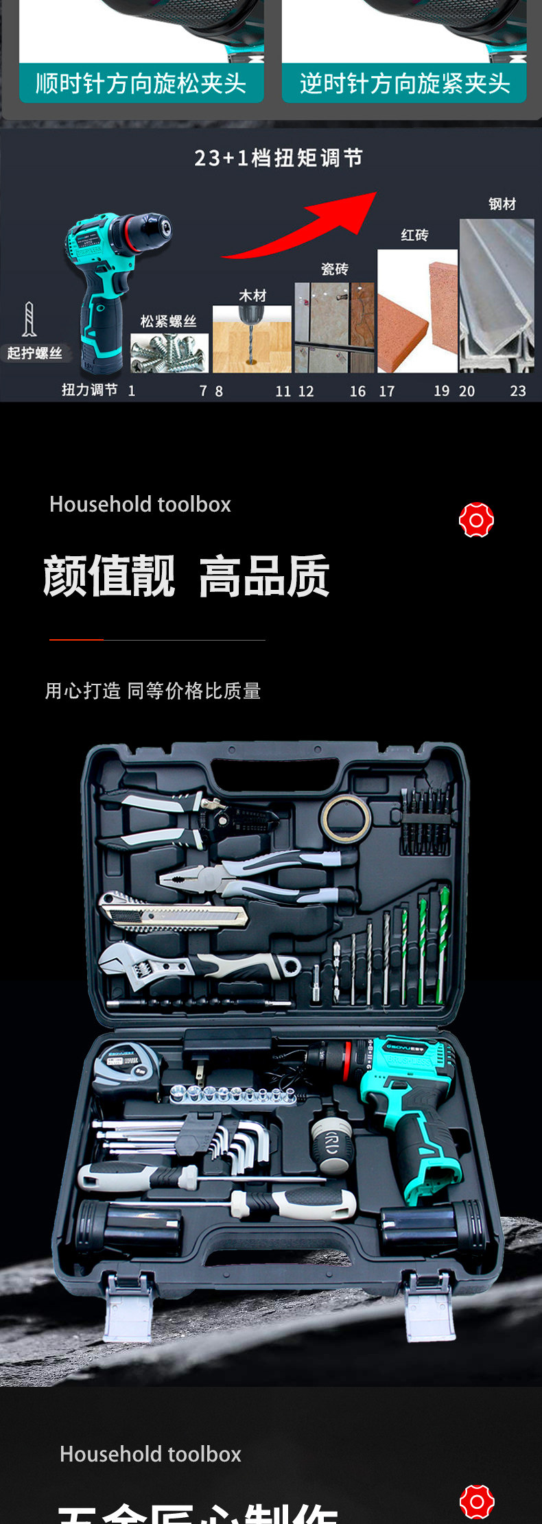 Small Brushless Electric Drill Household Tool Box Set Hand Drill Car-Mounted Electrician Hardware Tools Electric Screwdriver