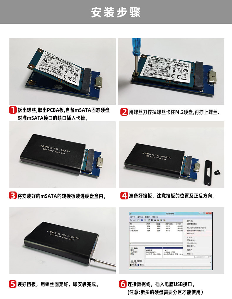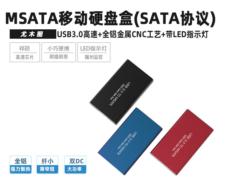 Msata to Usb3.0 Aluminum Alloy Mobile Hard Drive Box Ssd Solid-State Conversion External External Reading Adapter Box