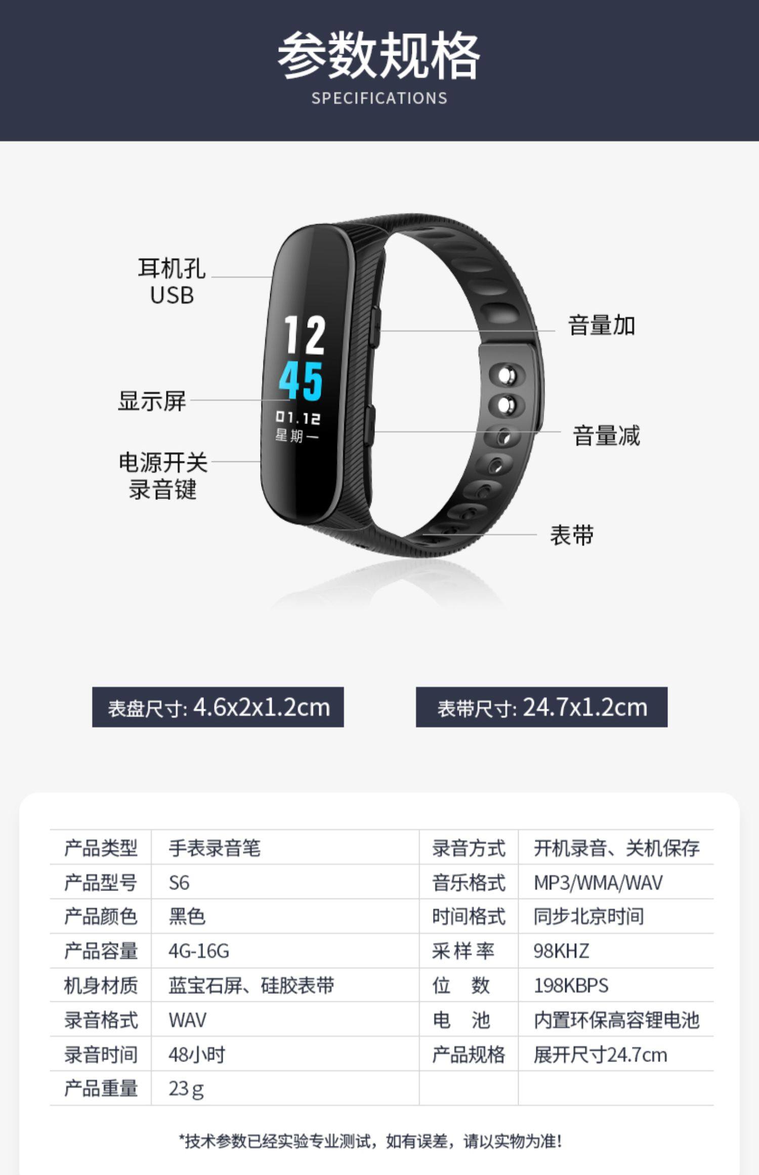 Jnn Wristband Voice Recorder Portable Professional High-Definition Noise Reduction Device for Students to Transcribe Class Notes 2025 New Model S6