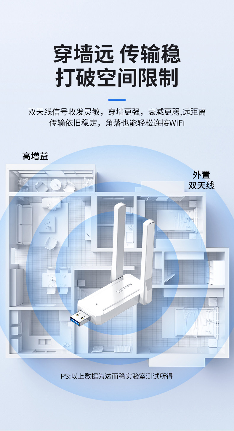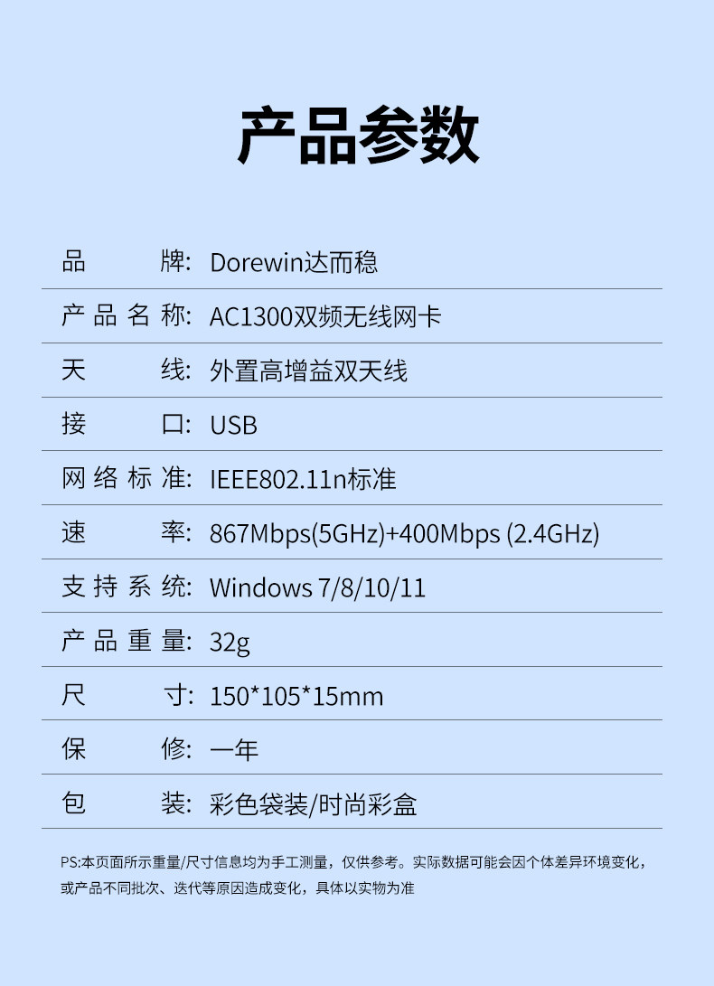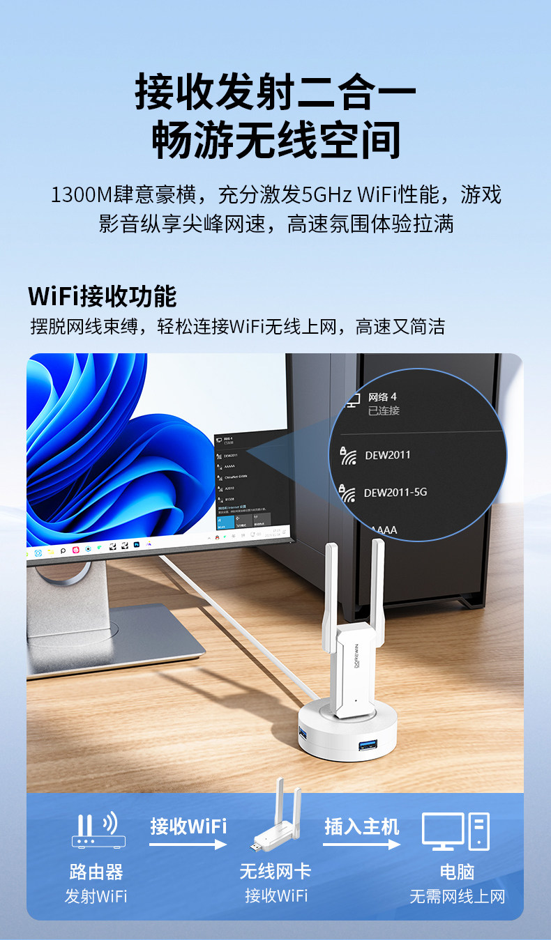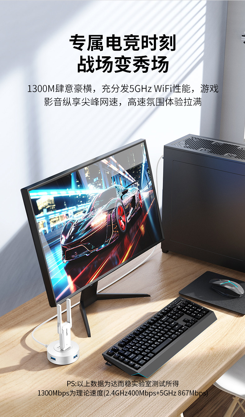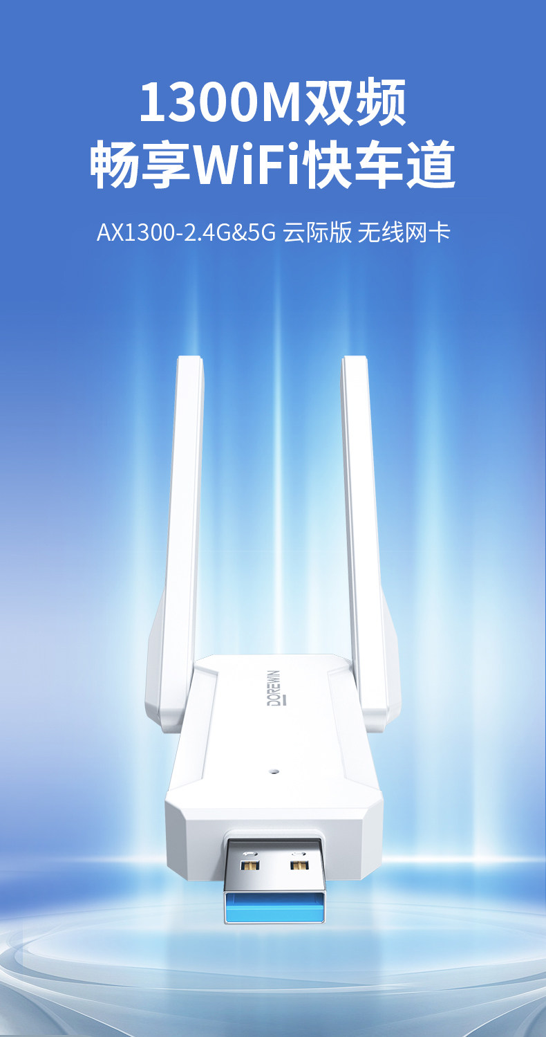 Daerwen Gigabit Wireless Network Card USB Desktop Receiver Transmitter 1300m Laptop Host Internet Connection Hotspot External Network 5g Dual-Band Signal Driver-Free