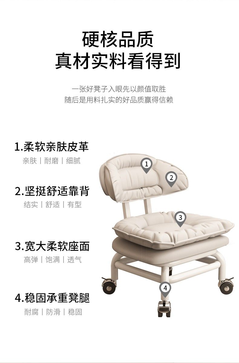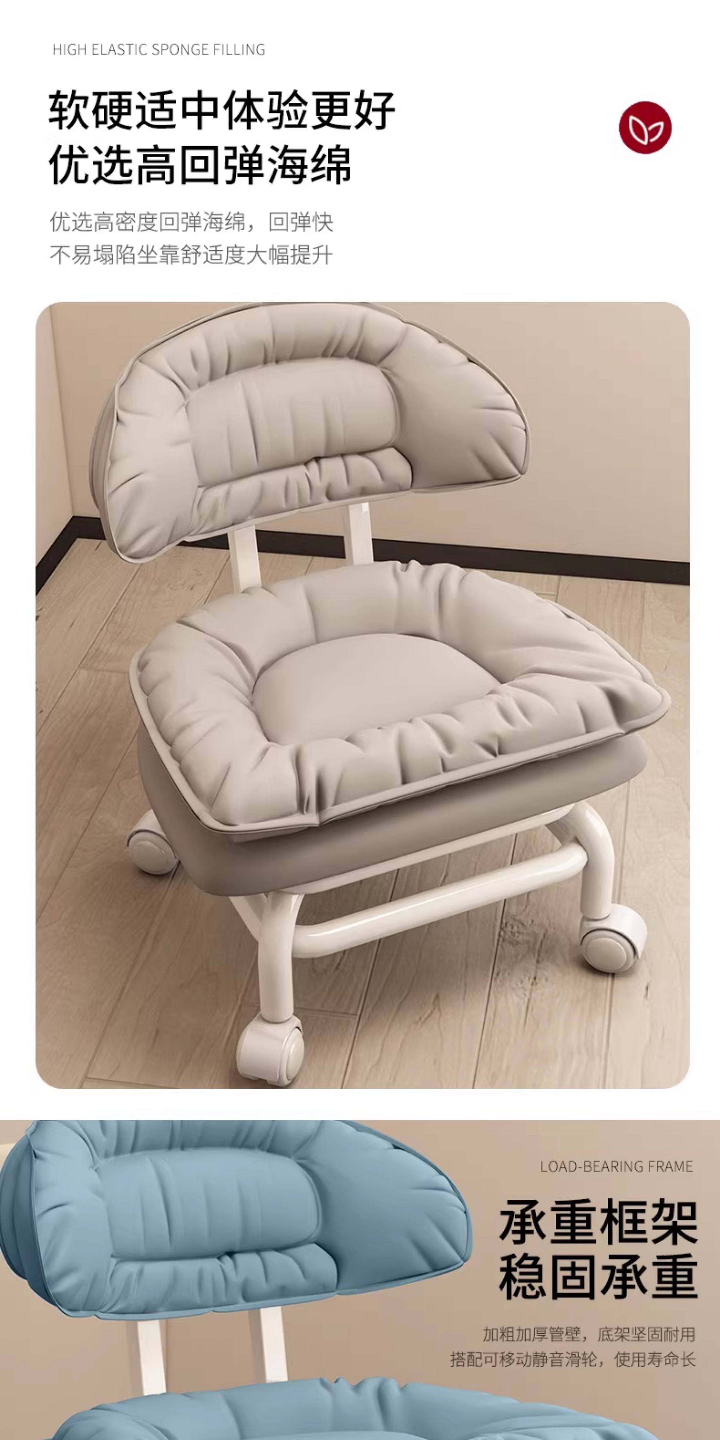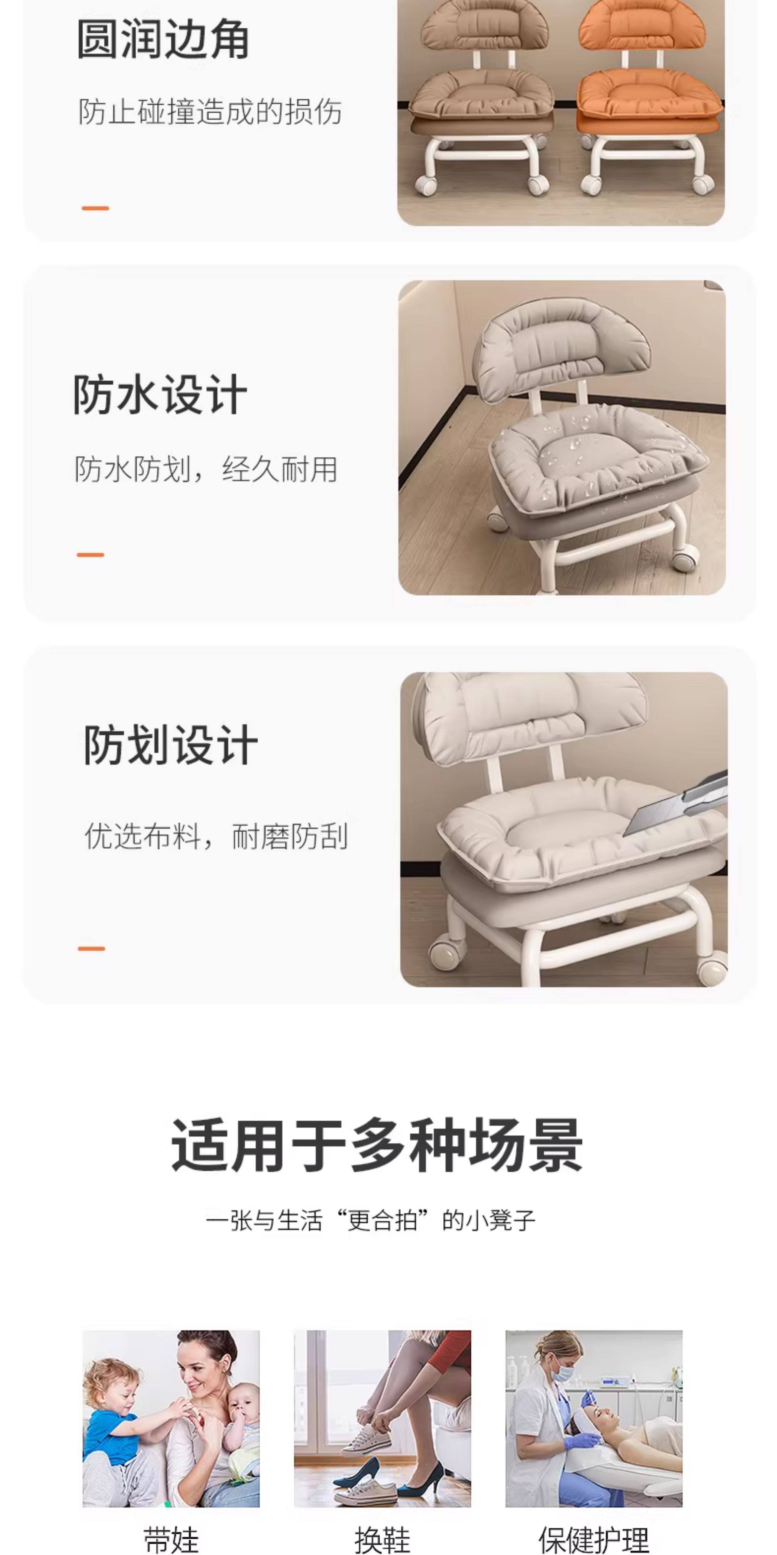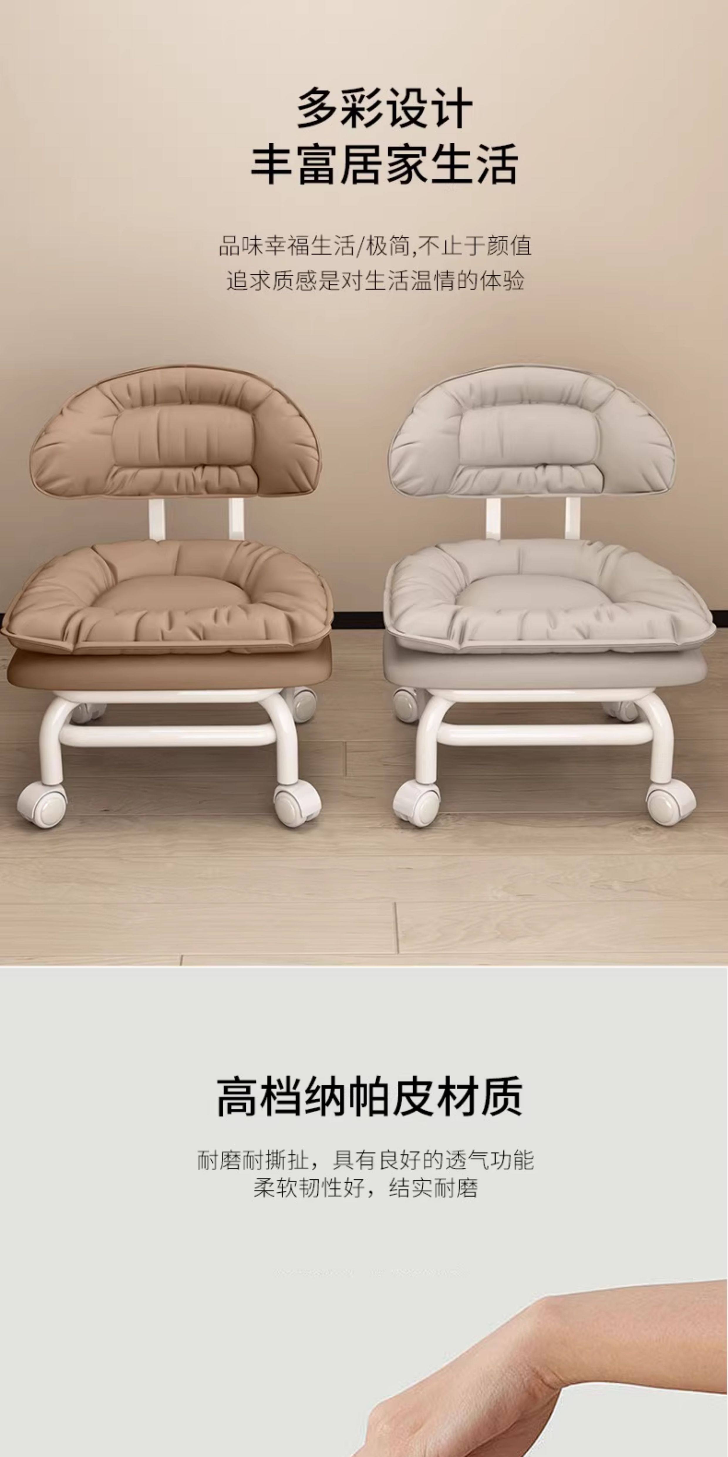 Silent Swivel Stool with Wheels, a Household Essential for Taking Care of Children, Round Stool, Bench, Seam-Sealing Stool, Wheeled Low Stool, Chair with Backrest