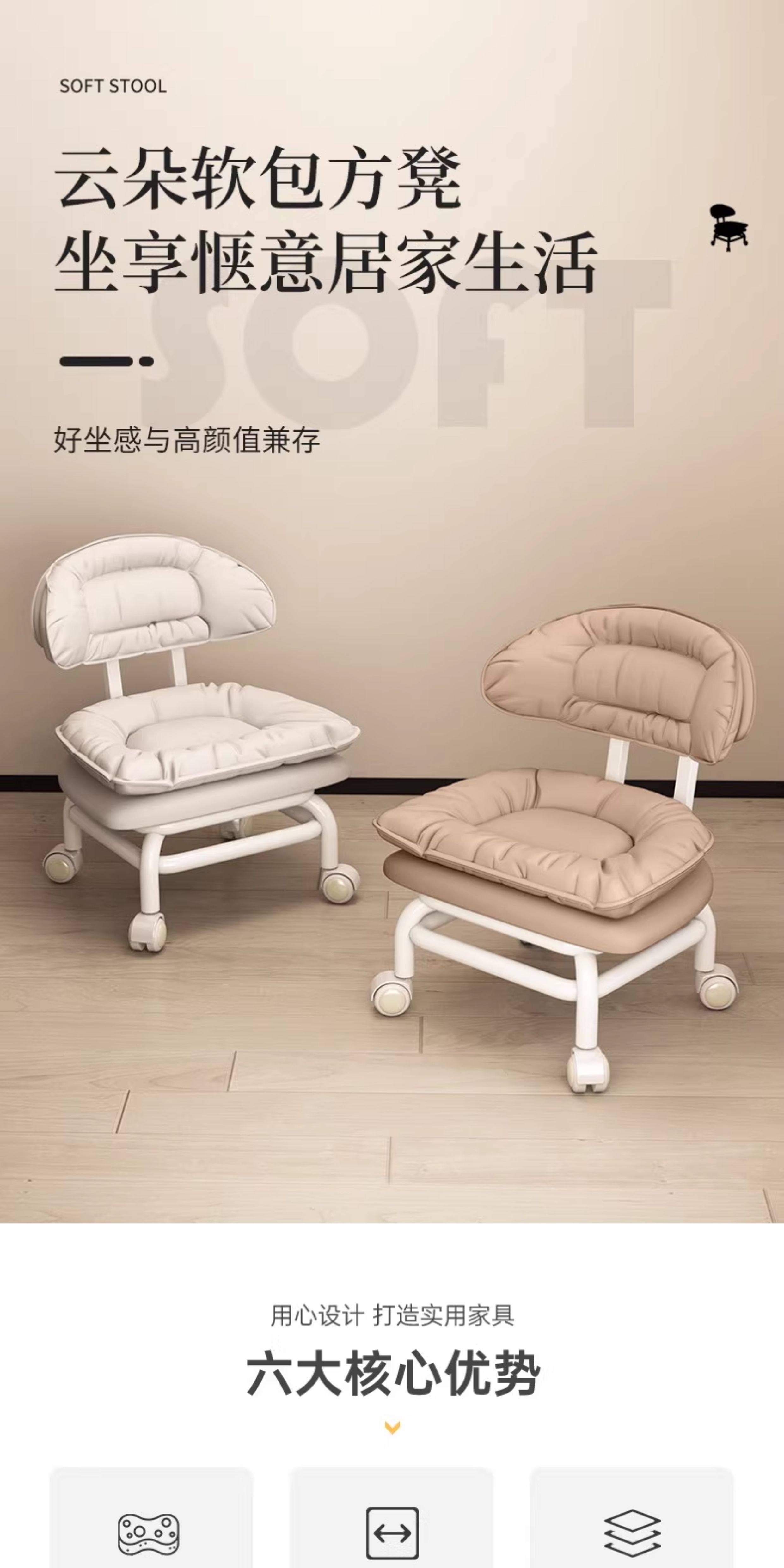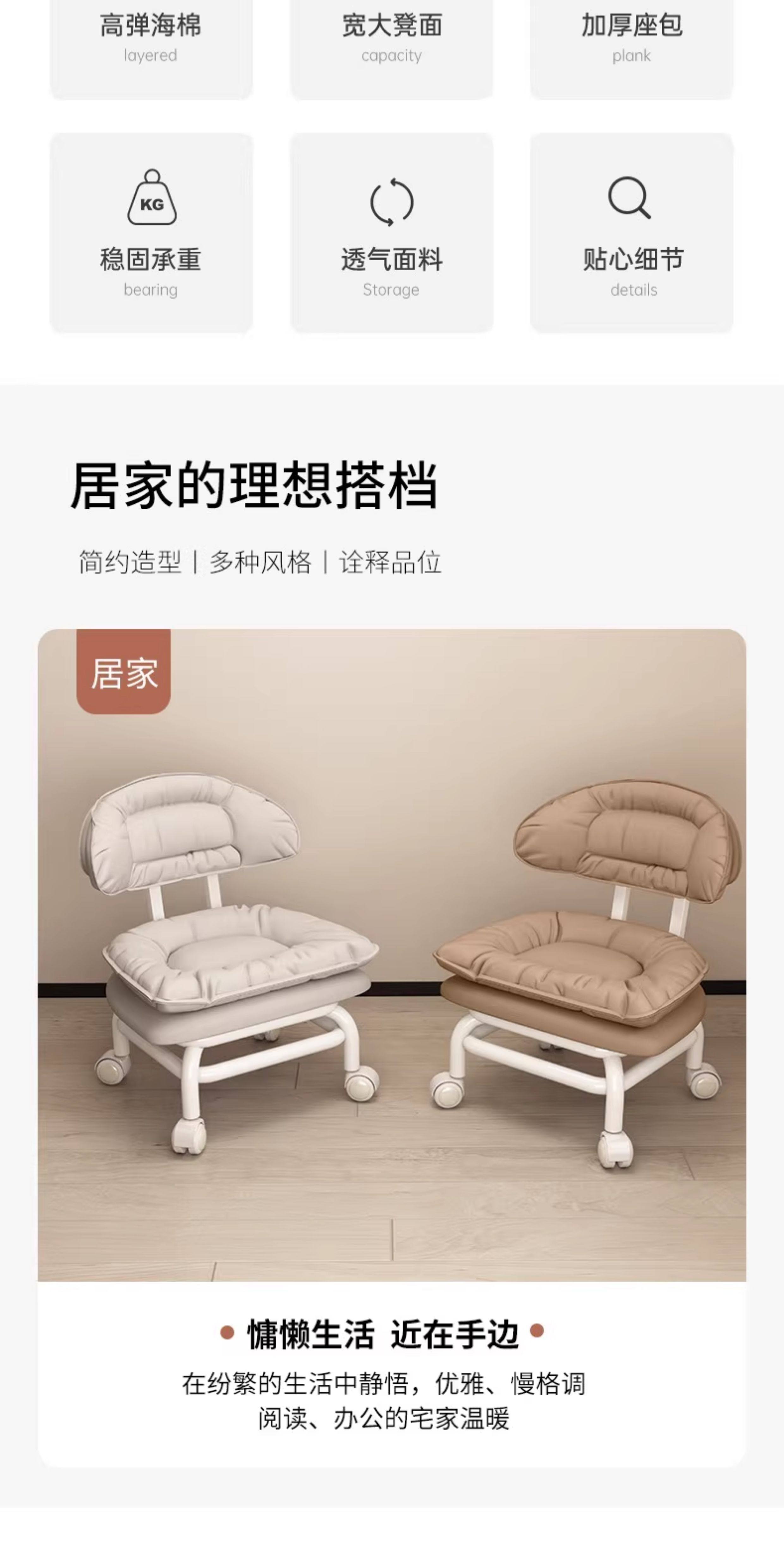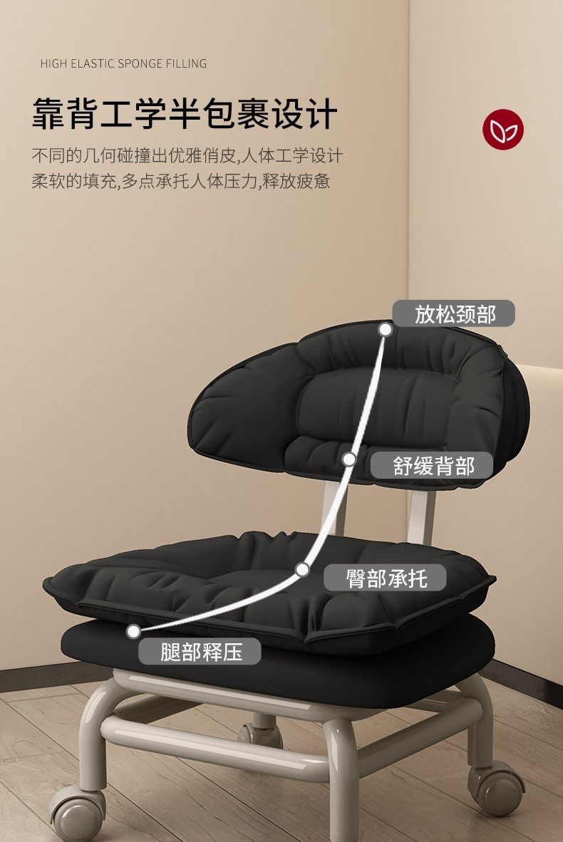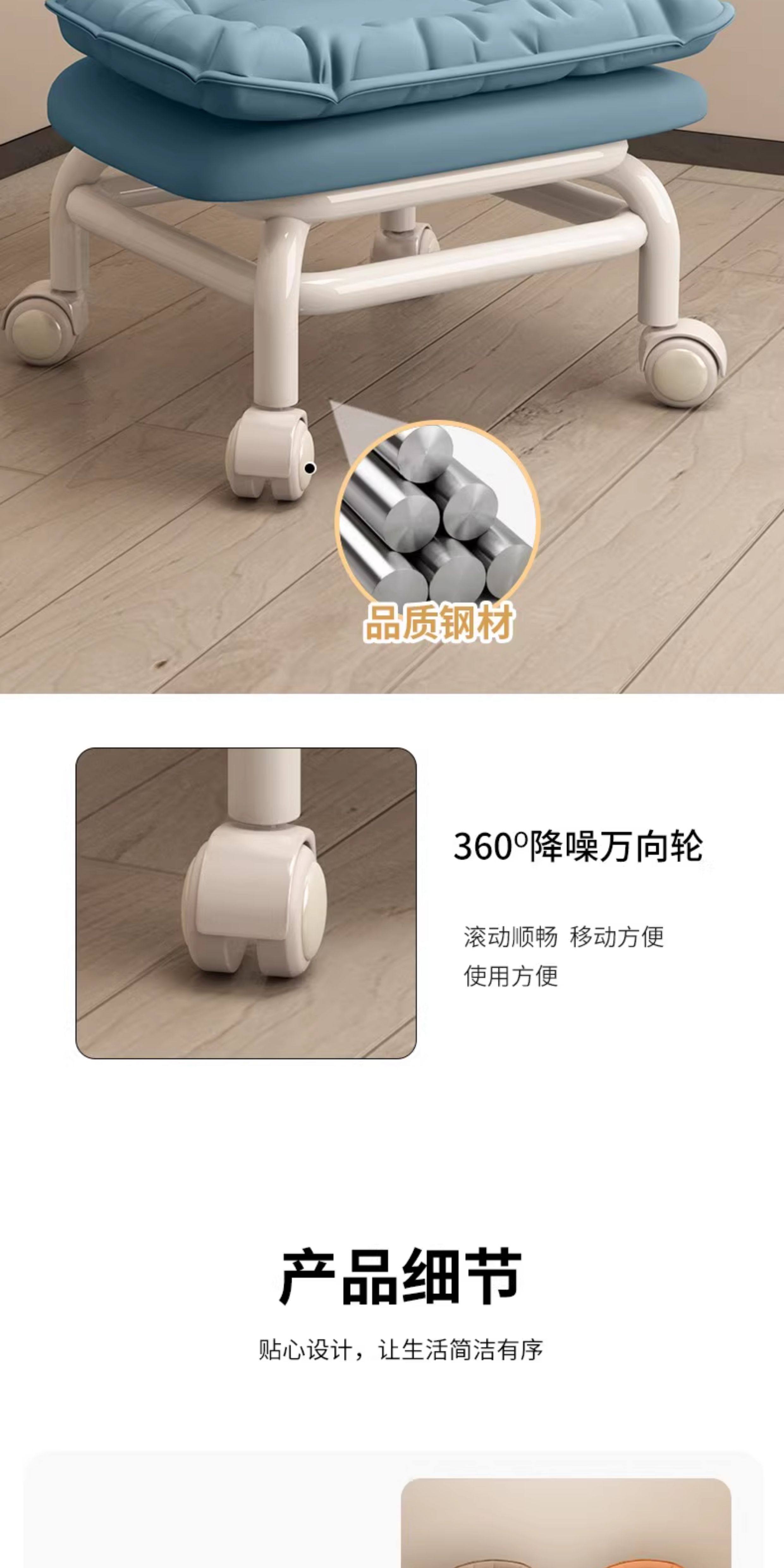 Silent Swivel Stool with Wheels, a Household Essential for Taking Care of Children, Round Stool, Bench, Seam-Sealing Stool, Wheeled Low Stool, Chair with Backrest