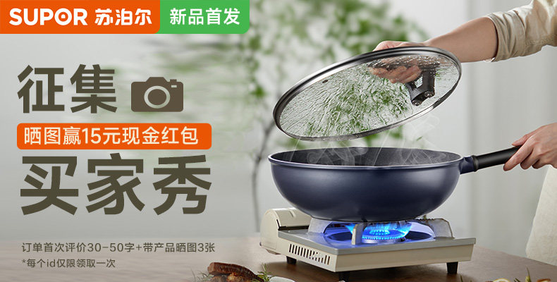 Supor Wear-Resistant Non-Stick Frying Pan for Home Use, Flat Bottom, No Oil Smoke, Suitable for Induction Cookers and Gas Stoves