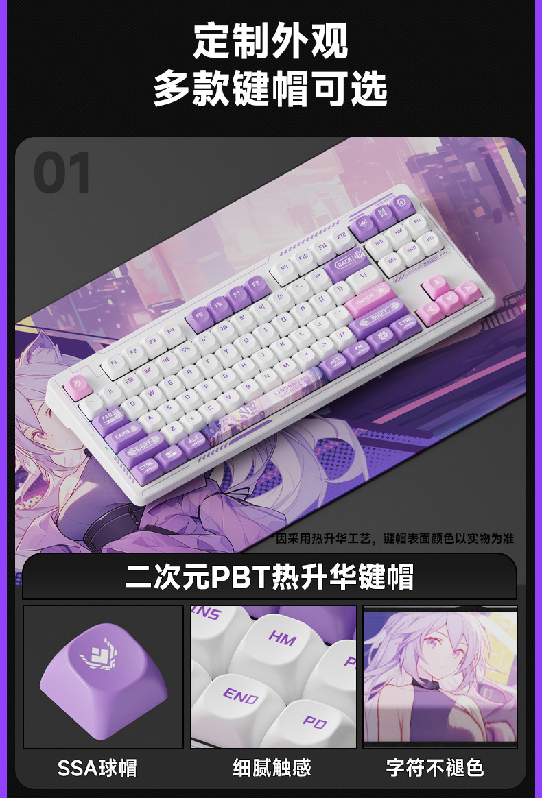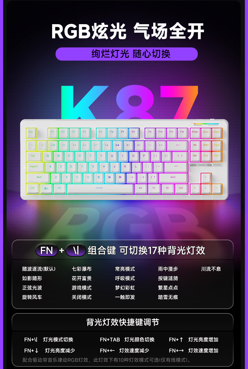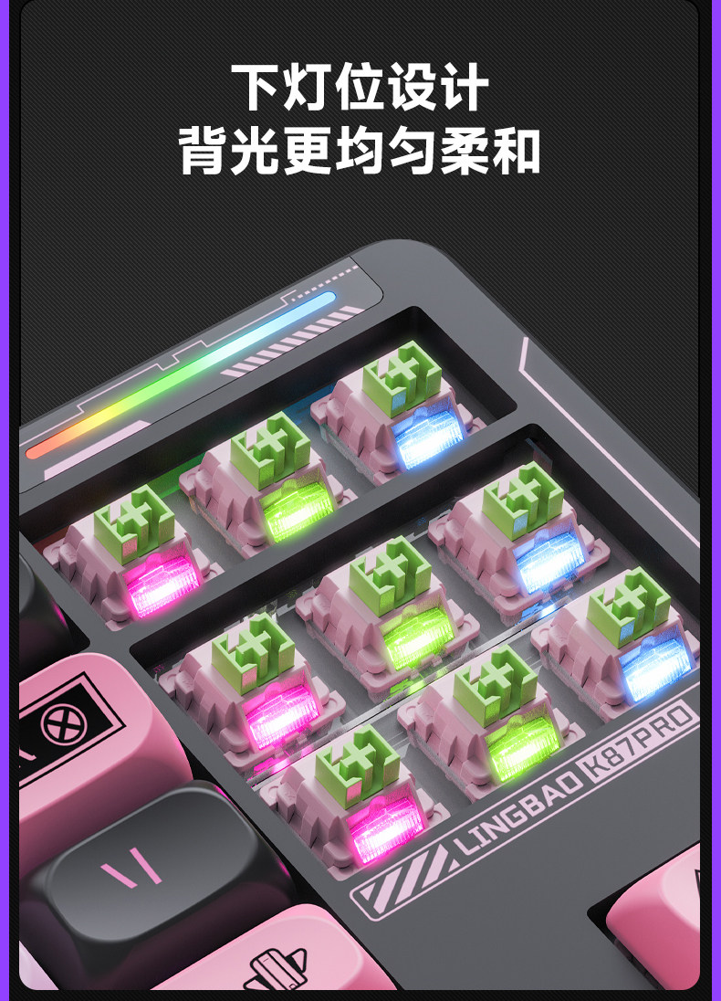 Lingbao K87Pro Mechanical Keyboard Customized Wireless Bluetooth Computer Gaming E-Sports Wired Keycaps for Men and Women Fx