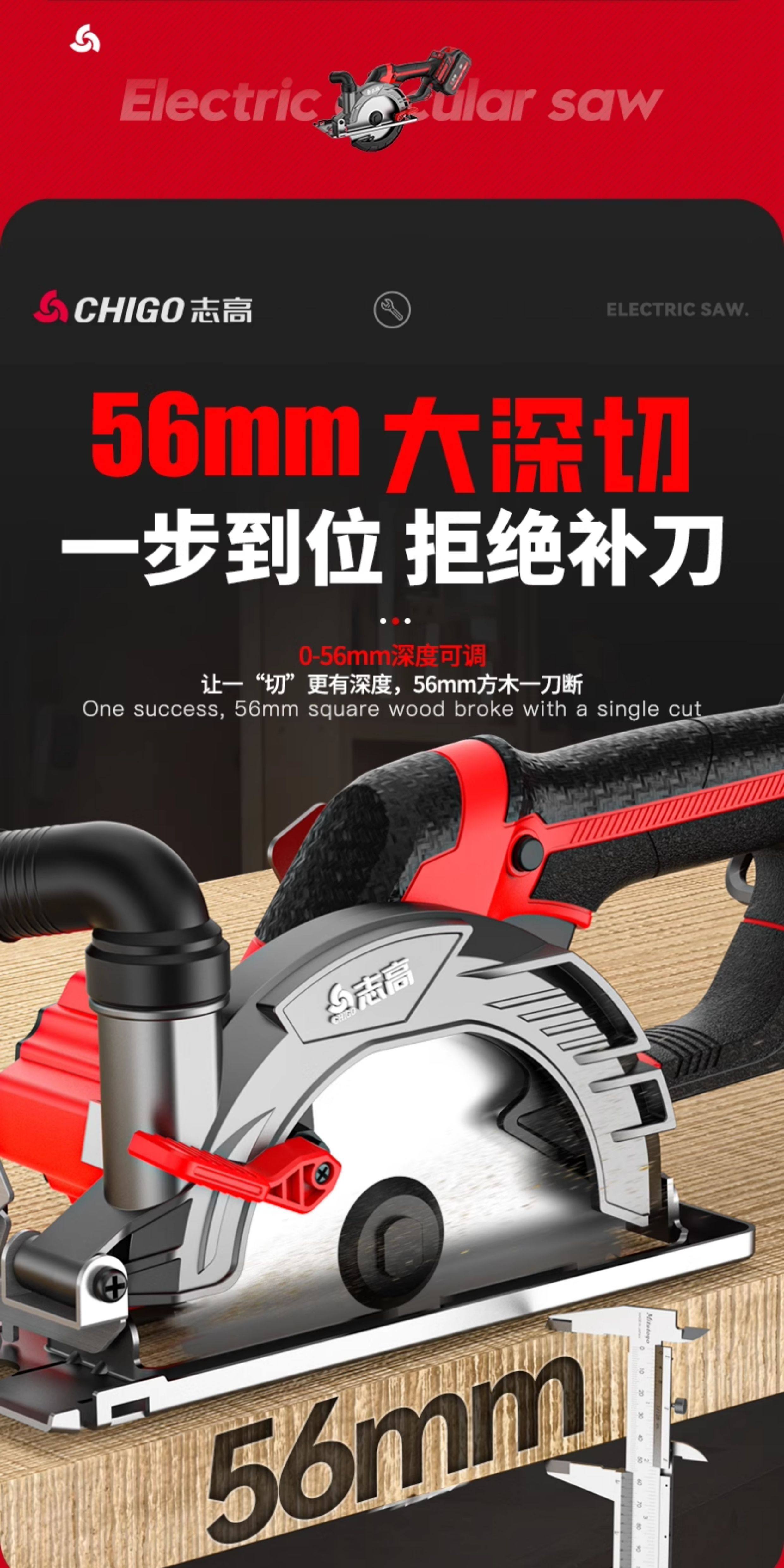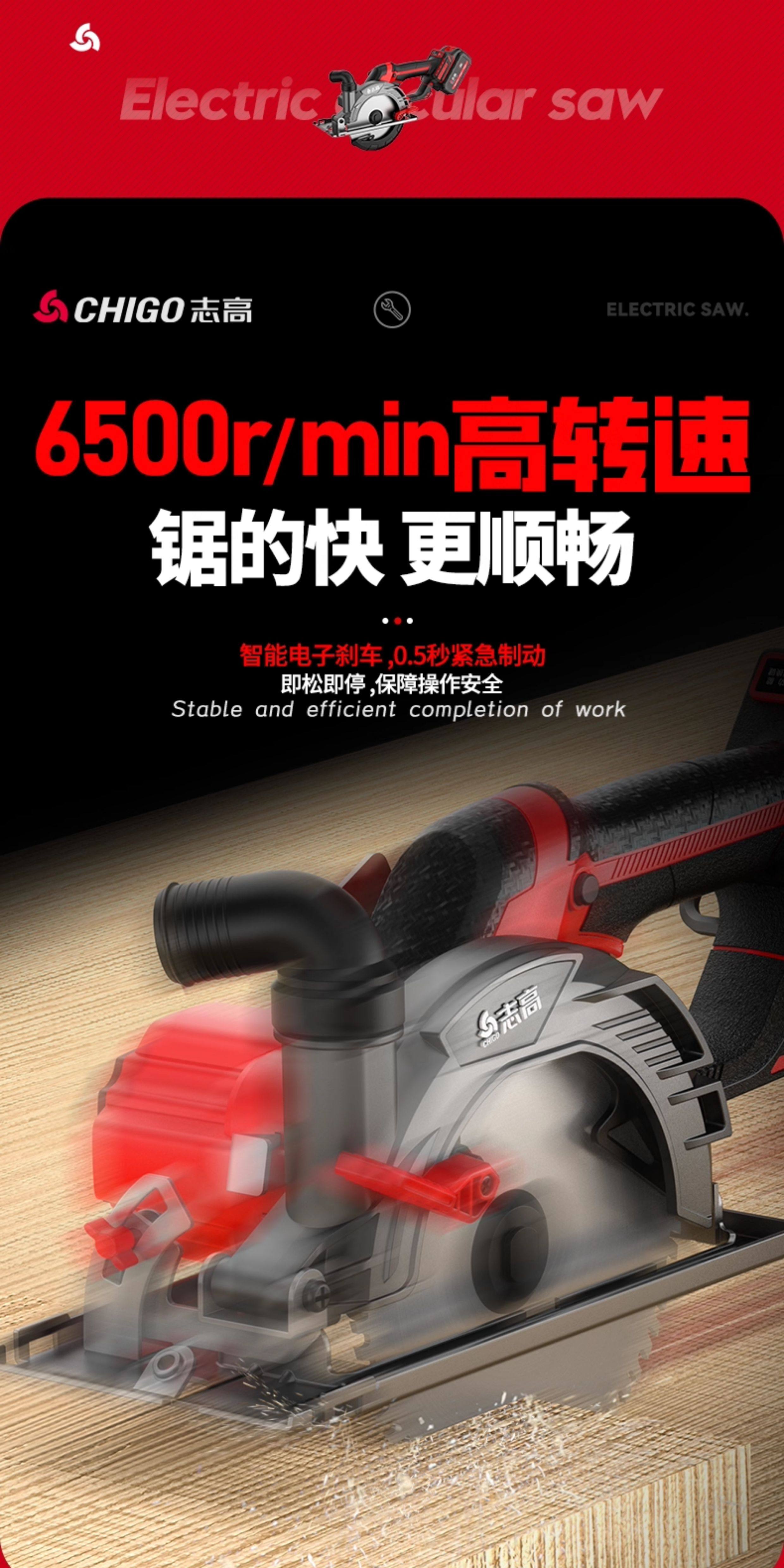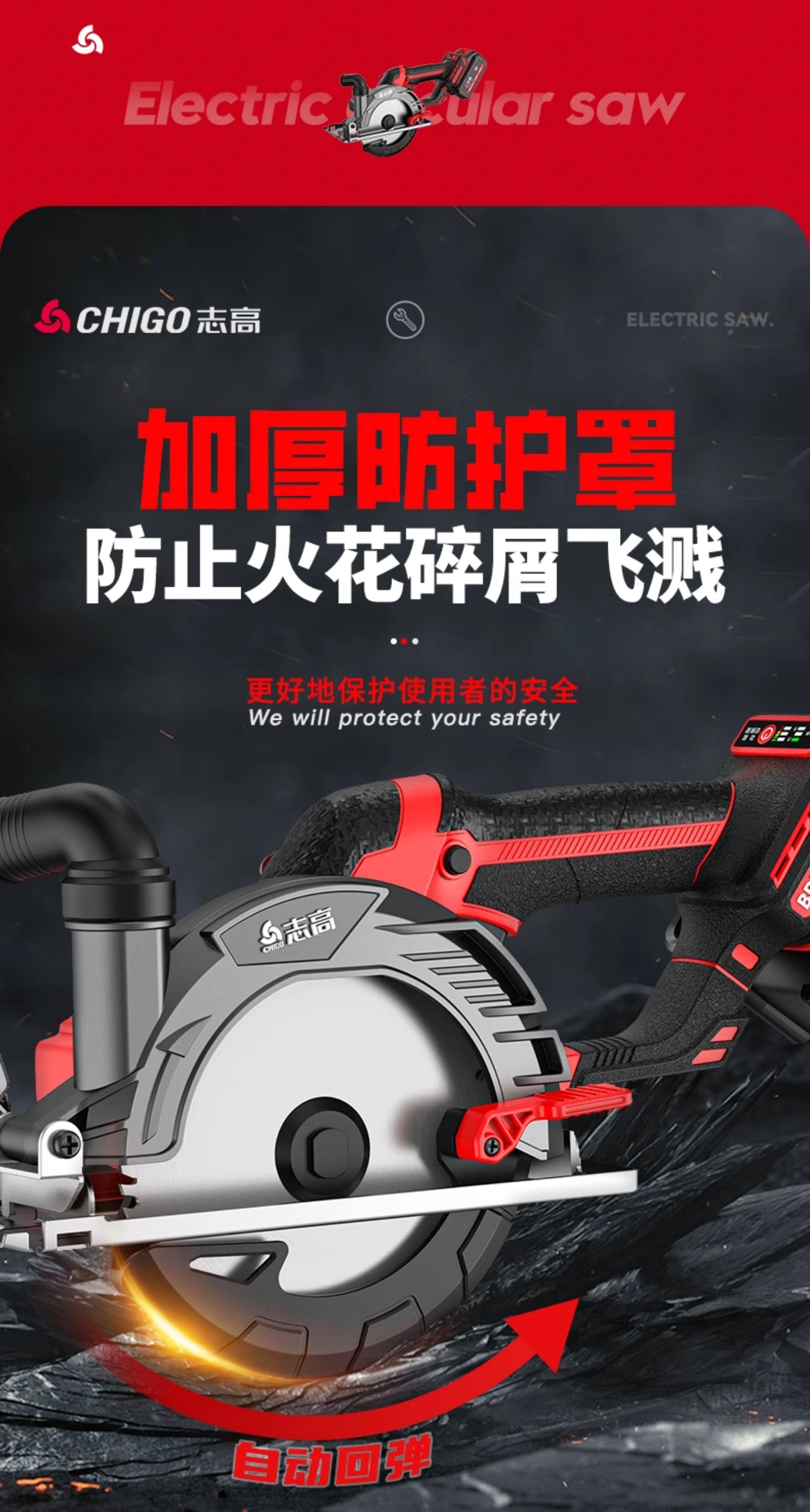 Chigo 6inch Brushless Cordless Circular Saw 150 Lithium Electric Woodworking Portable Chainsaw Marble Cutting Machine Circular Disc Saw