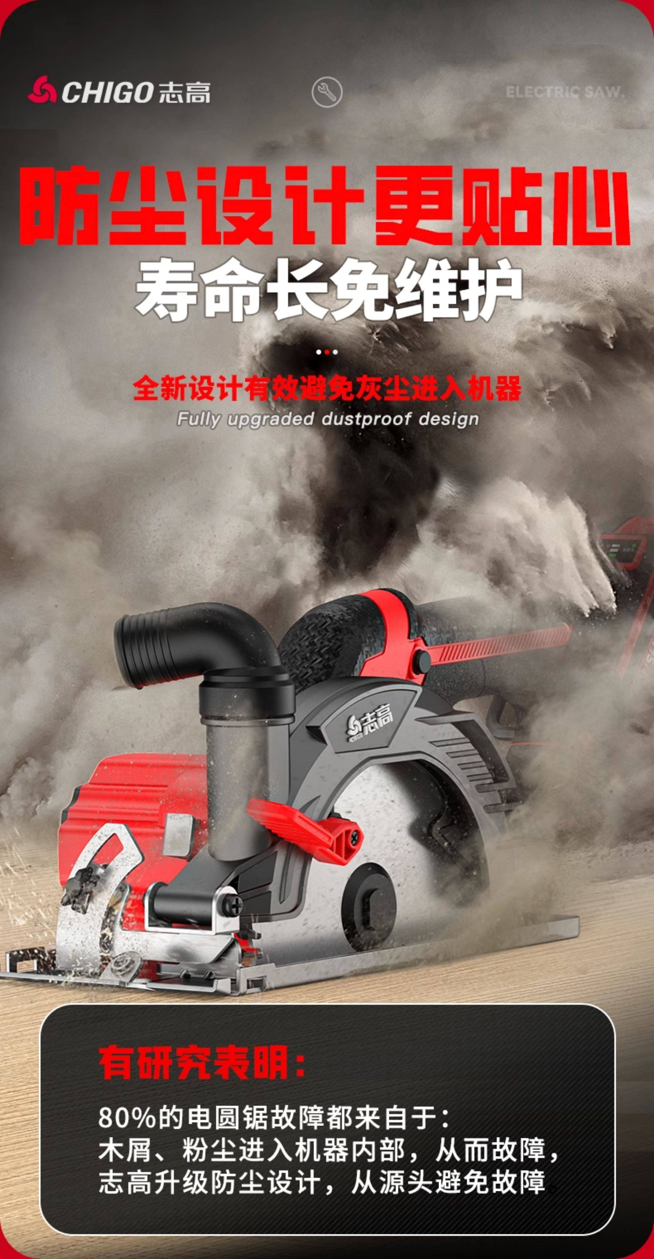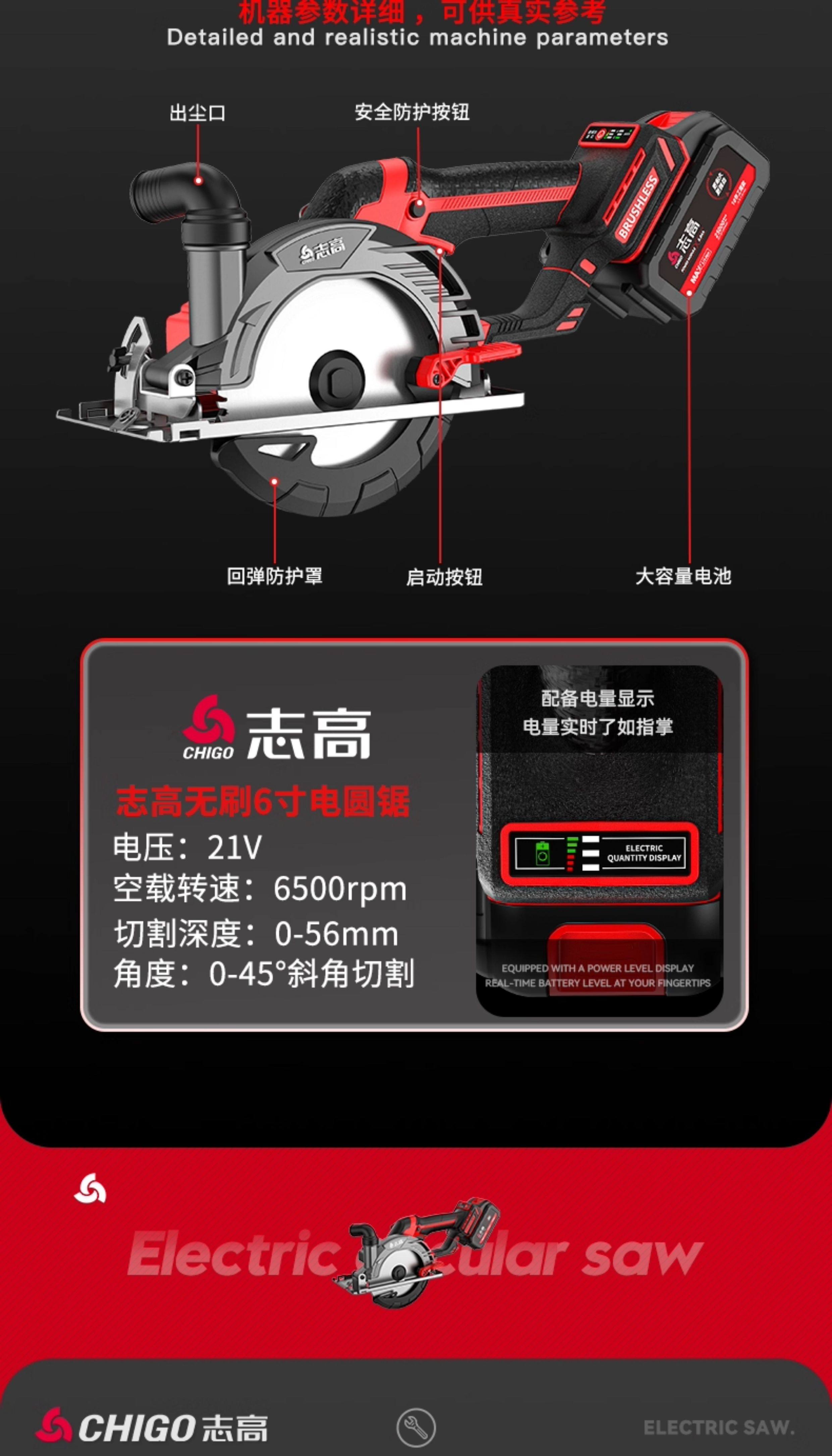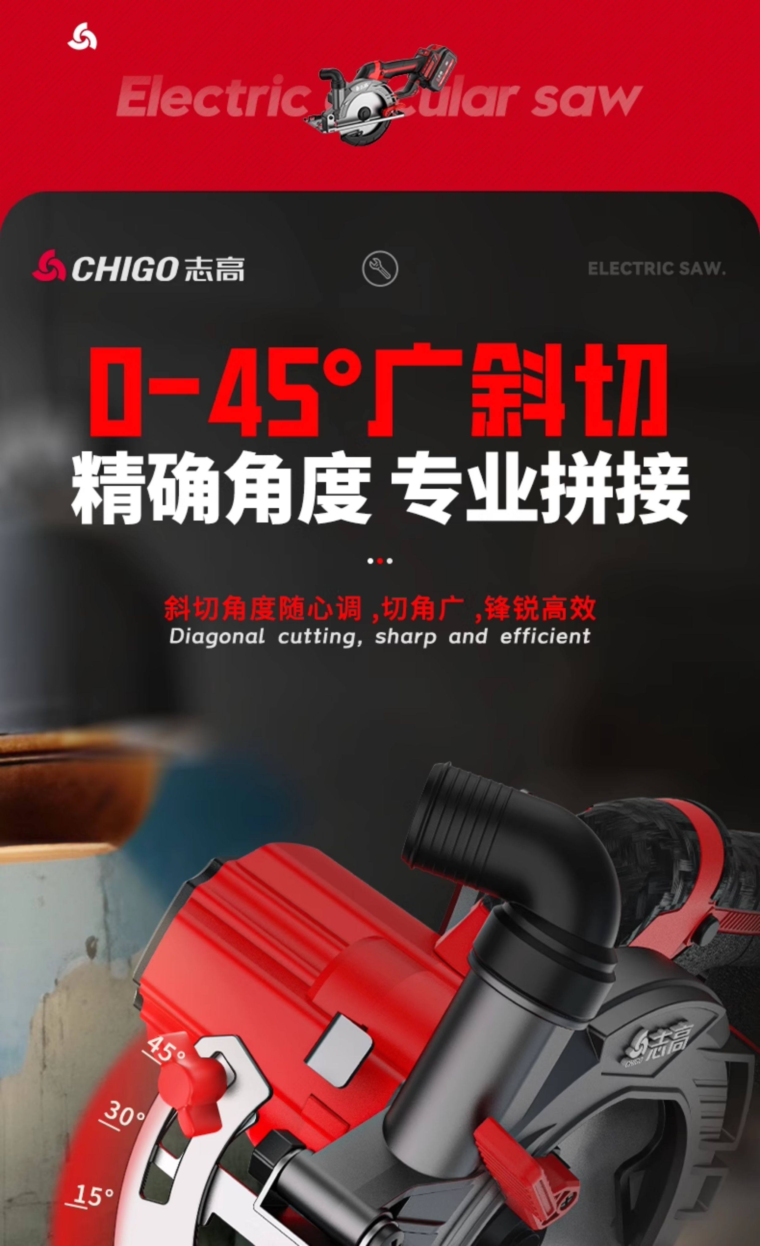 Chigo 6inch Brushless Cordless Circular Saw 150 Lithium Electric Woodworking Portable Chainsaw Marble Cutting Machine Circular Disc Saw