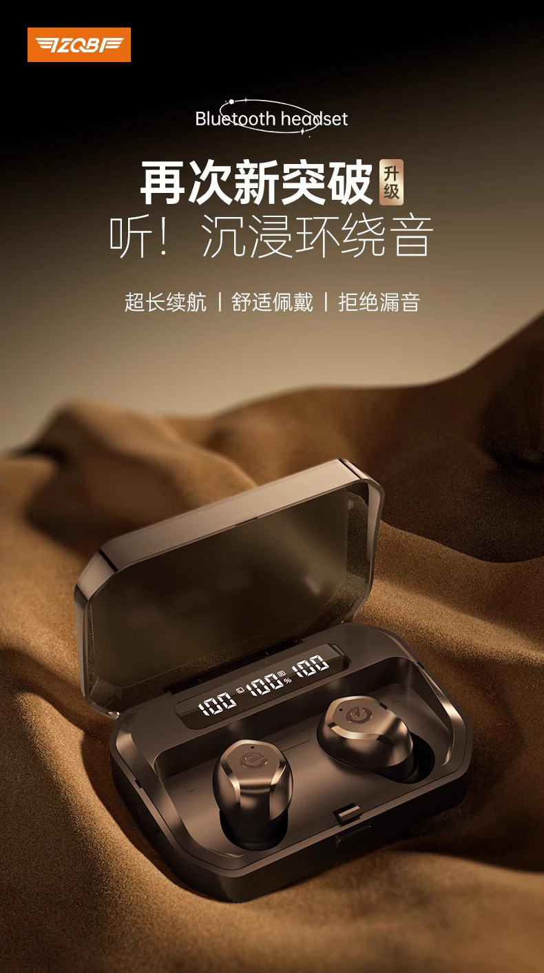 Zengqianqi Bluetooth Earphones, In-Ear Sports Wireless Noise-Cancelling, 2025 New Model, Ultra-Long Standby, Large Battery for Men and Women