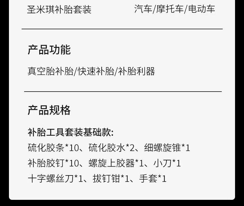 | Color Classification | Holy Mickey Upgraded Tire Repair,Saint Miqi Upgraded Tire Repair + Manual Pump,Saint Miqi Upgraded Tire Repair + Electric Air Pump |