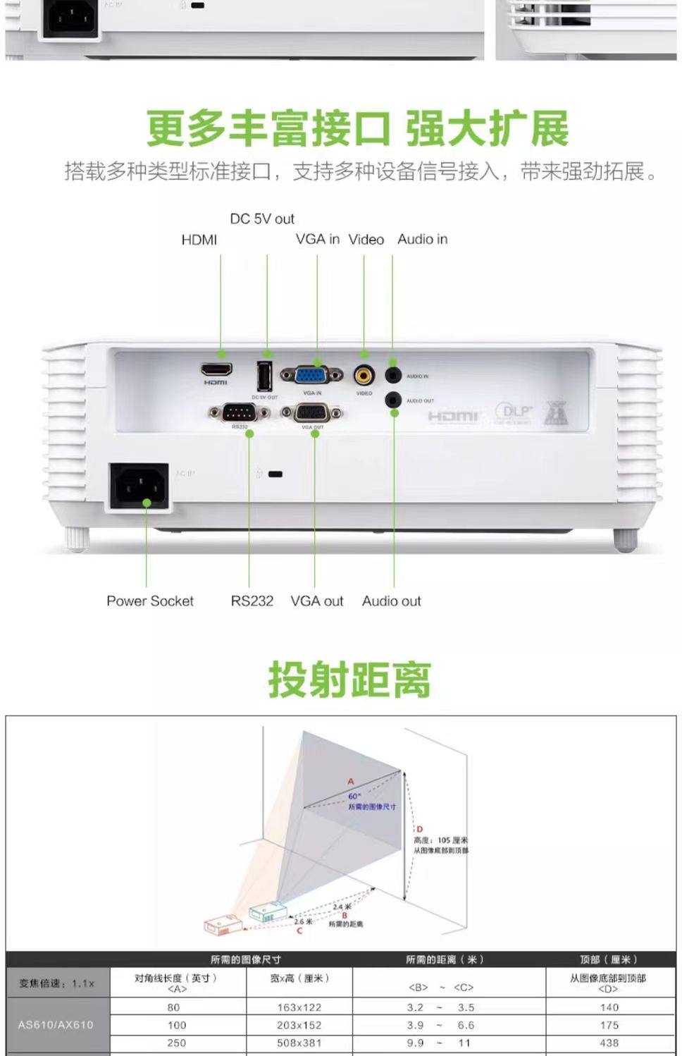 Acer/Acer Aw620A/Af620A/Ax620/As620/V65X/Aw620/V65W/Af608K/T421D/E355Dk Business Office Teaching Training Projector