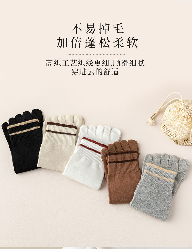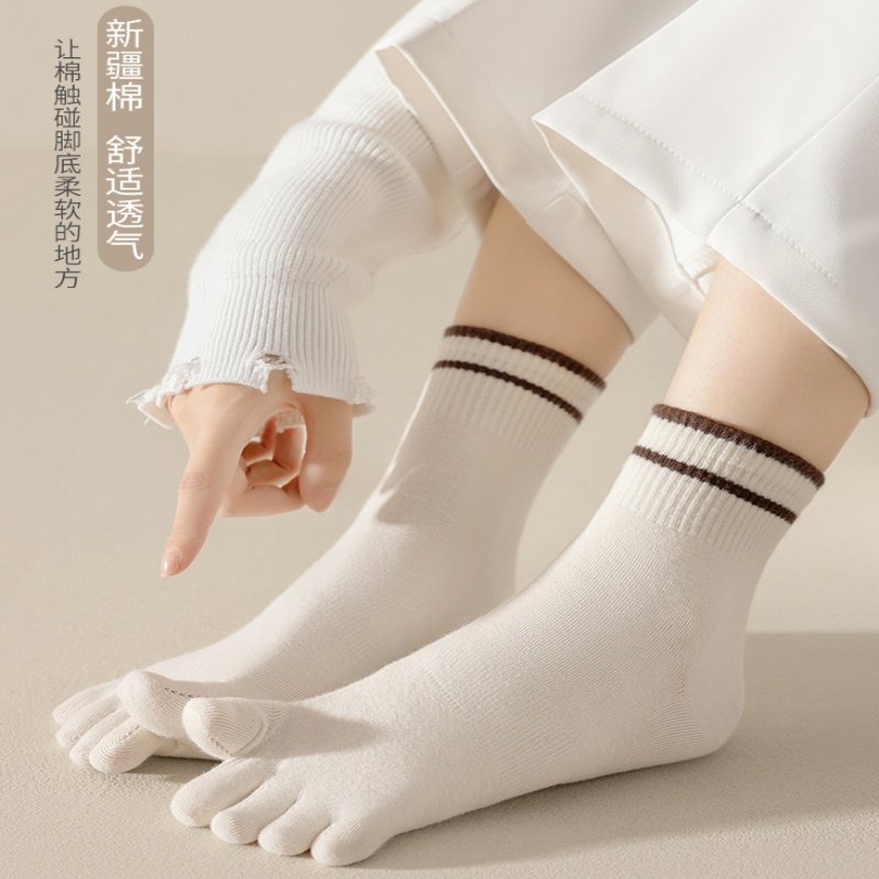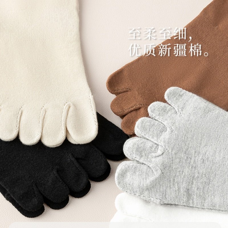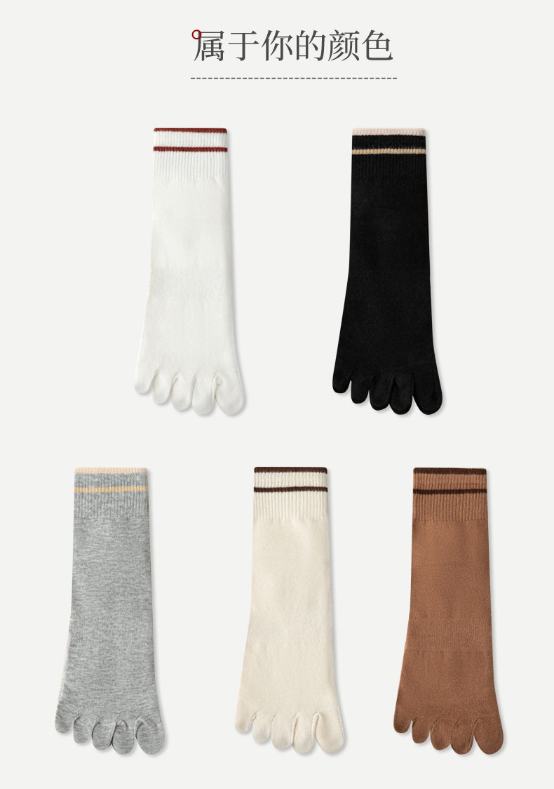 Five-Toe Socks for Women, Mid-Calf Socks, Pure Cotton, Odor-Resistant, Coffee-Colored, Split-Toe Cotton Socks, Breathable, Sweat-Absorbent, Spring and Autumn Women's Long Socks, Toe Socks