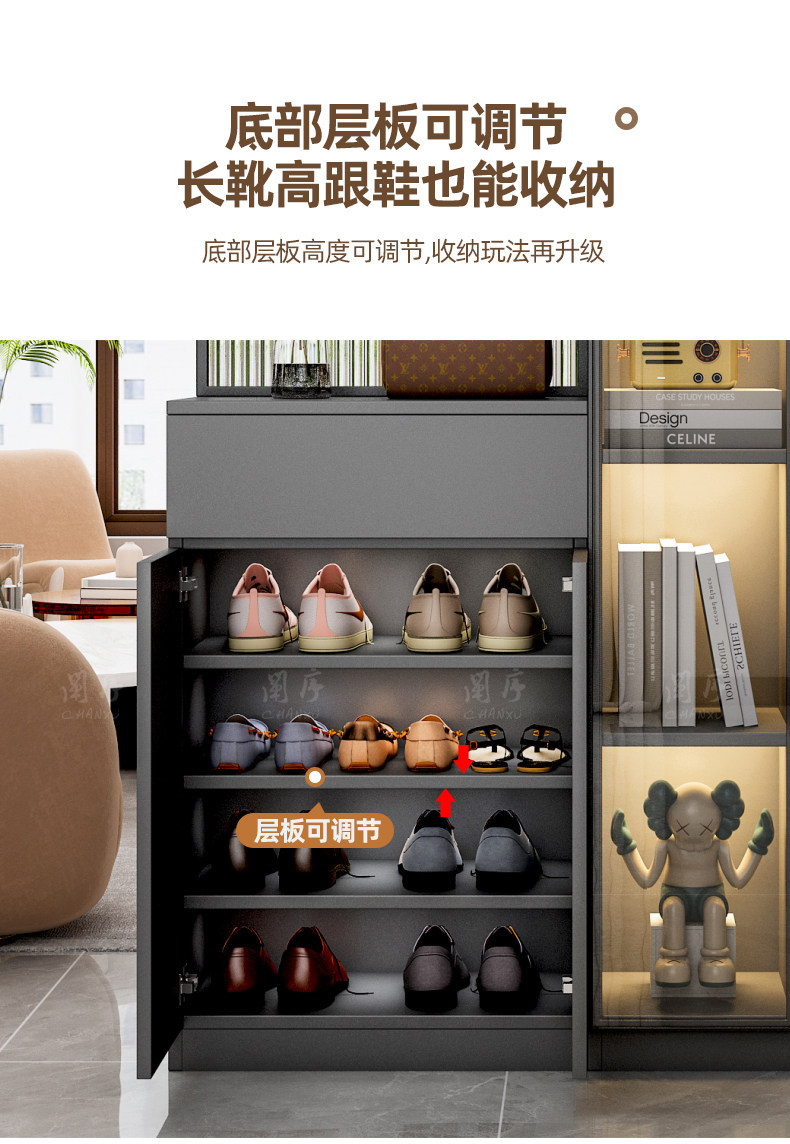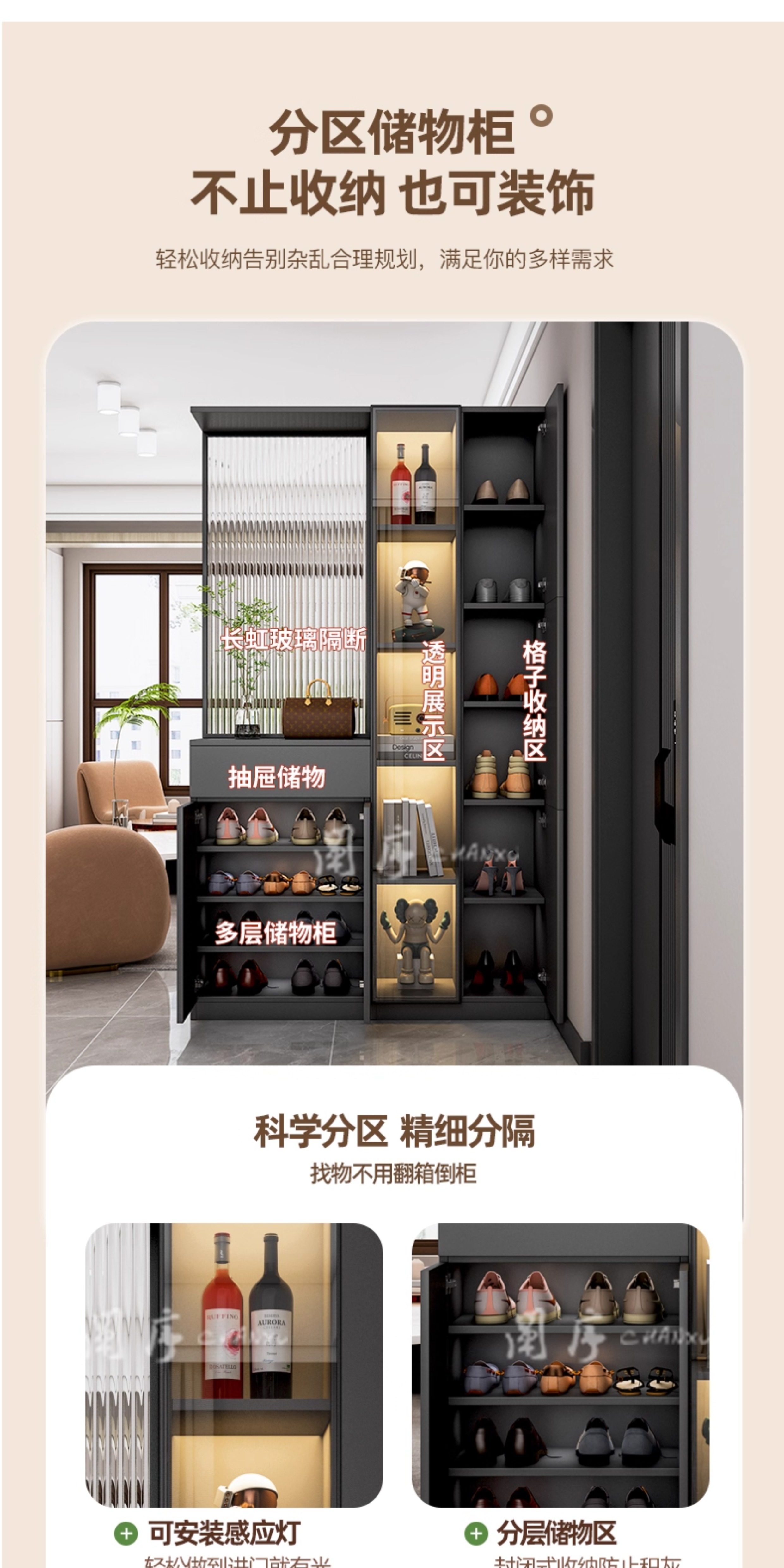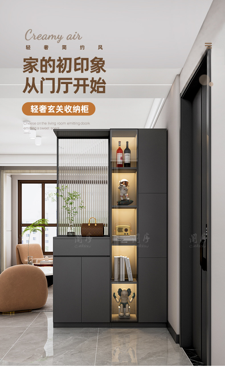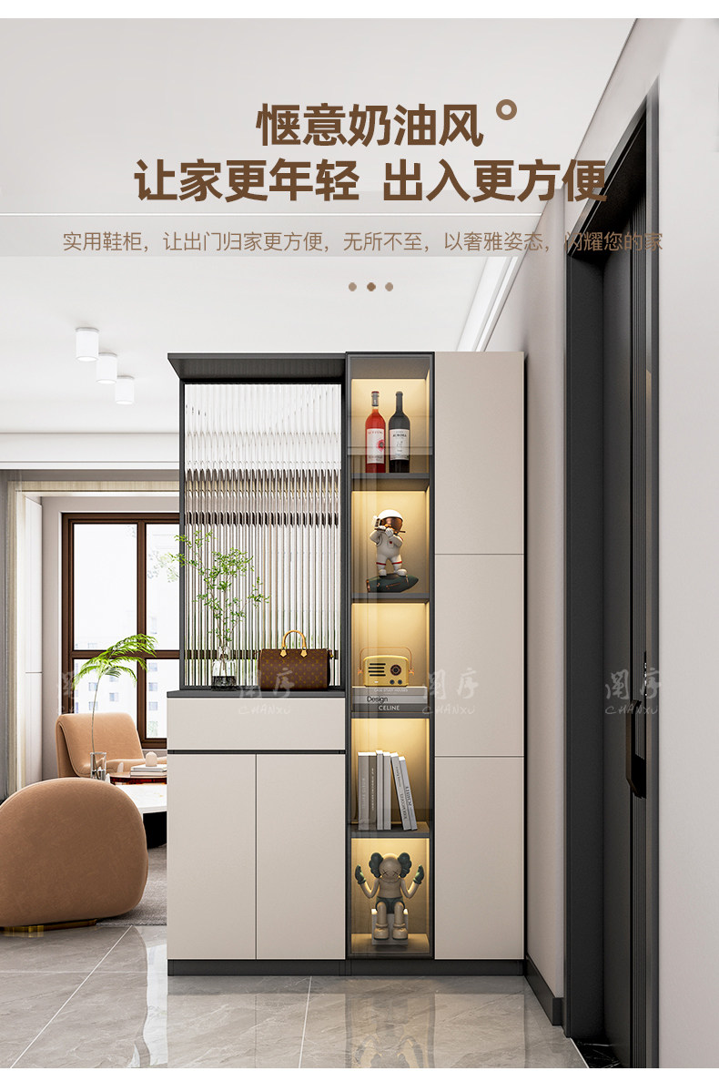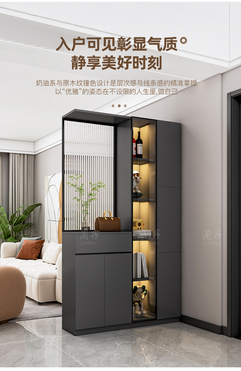Modern Minimalist Entryway Cabinet with Integrated Wine Cabinet, Double-Sided Decorative Screen, and Shoe Storage Partition Cabinet