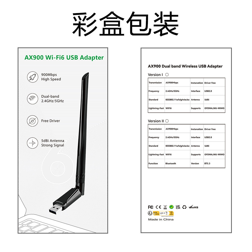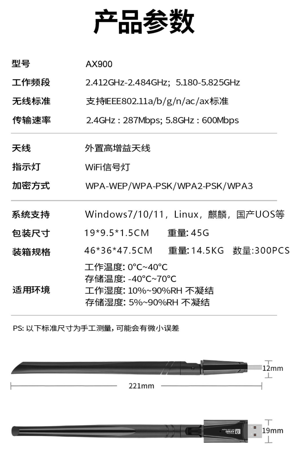| Color Classification | [WiFi6★AX300M]Built-In Antenna-2.4g Single Frequency,[WiFi6★AX300M]External Antenna★Stronger Signal-2.4g Single Frequency,[WiFi5-650M]Built-In Antenna-5G Dual-Band,[WiFi5★AX650M]External Antenna★Stronger Signal-5G Dual-Band,[WiFi6★AX900M]Built-In Antenna-5G Dual-Band,[WiFi6★AX900M]External Antenna★Stronger Signal-5G Dual-Band,New Arrivals[WiFi5-1300M]External Dual Antennas★Stronger Signal-5G Dual-Band,[WiFi5-1300M]Gain Dual External Antennas★Stronger Signal and More Stable Signal-5G Dual-Band,[WiFi6★AX1800M]Built-In Antenna-5G Dual-Band,[WiFi6★AX1800M]External Dual Antennas★Stronger Signal and More Stable Signal-5G Dual-Band,[WiFi6★AX5400M]Gain External Antenna★Stronger Signal and More Stable Signal - Tri-Band,[WiFi6★AX5400M]External Dual Antennas ★ Stronger Signal and More Stable Signal - Tri-Band |
