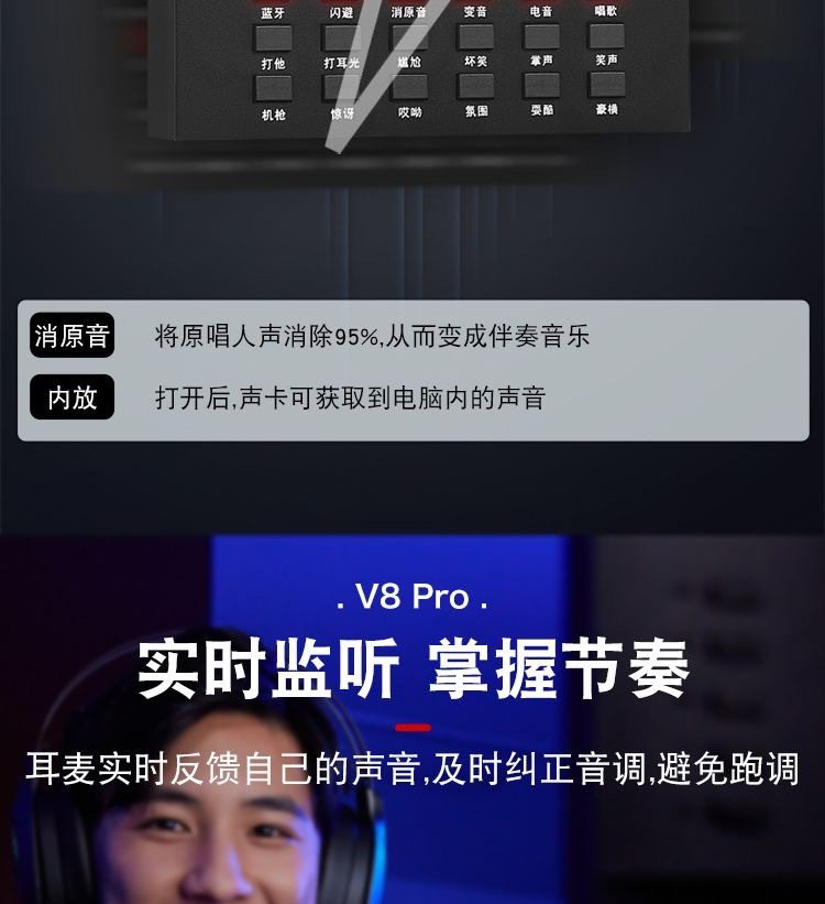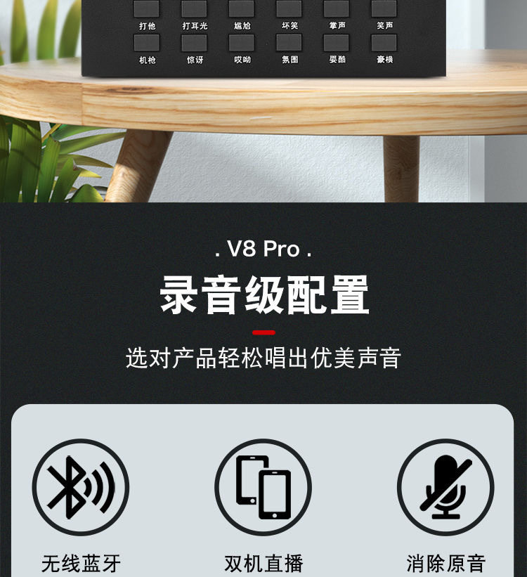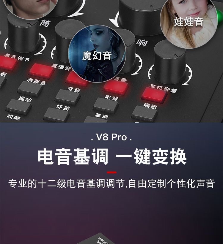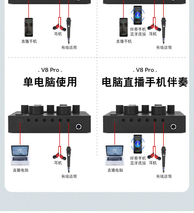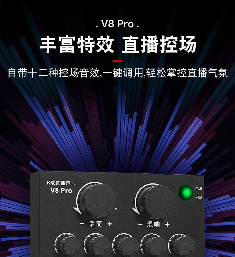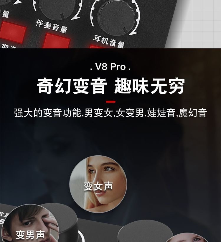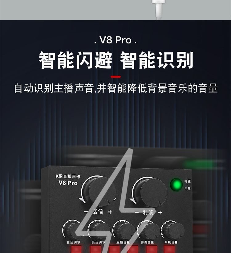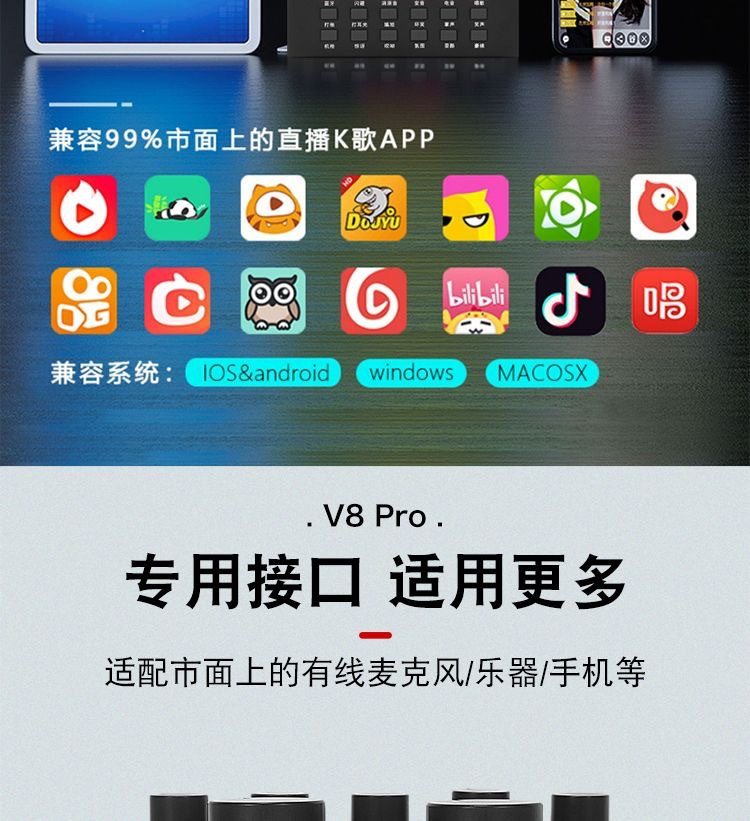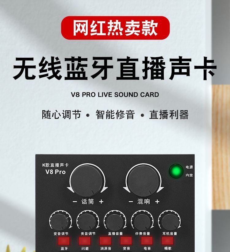 Singing and Singing Voice Recording Sound Card Wireless Microphone Dedicated for Internet Celebrities, Microphone for Mobile Phones and Desktop Computers, External Device