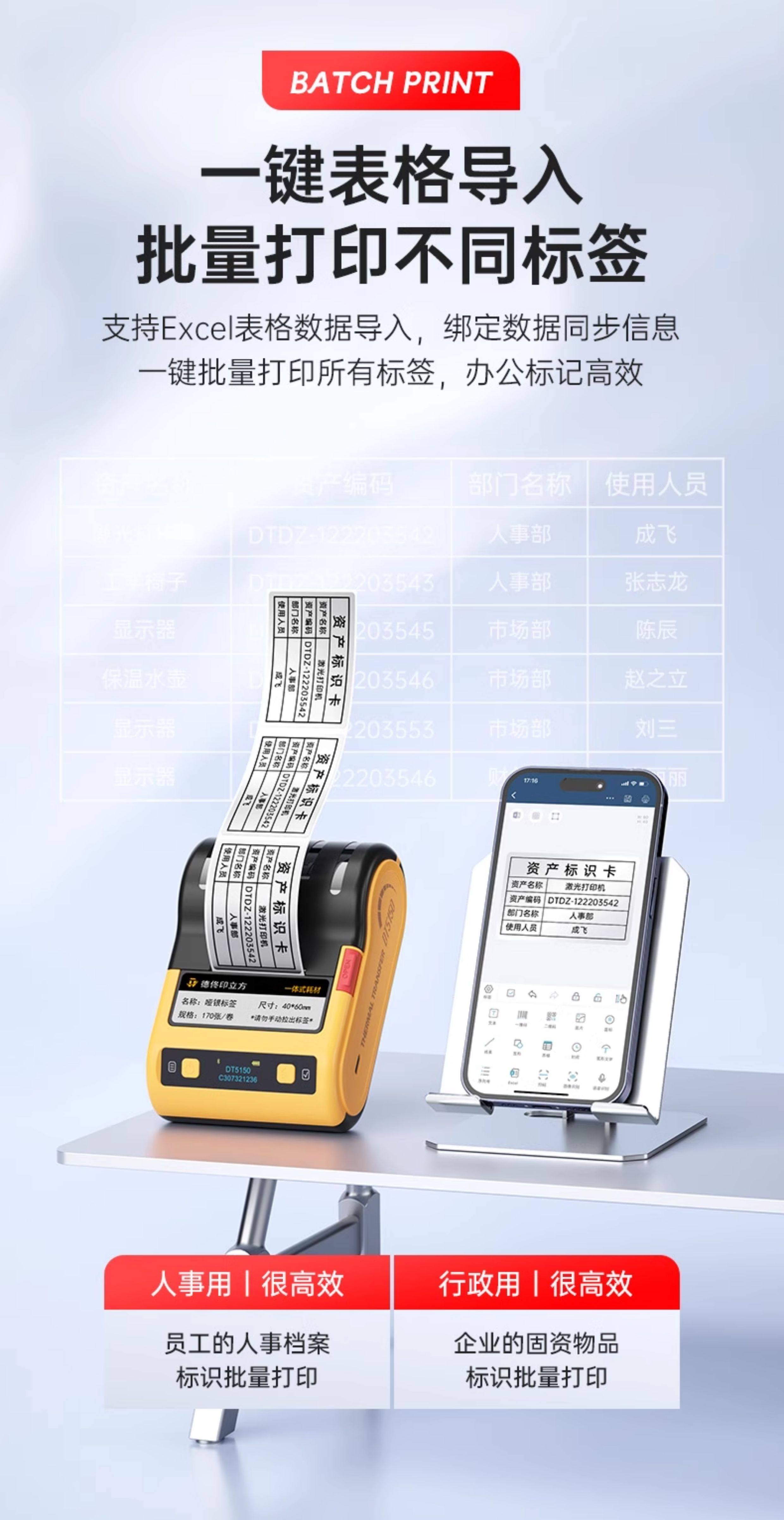 Detong Yinchuang Dt5150 Thermal Transfer Matte Silver Label Printer Multifunctional Fixed Asset Office Equipment Qr Code Generation Barcode Ribbon Adhesive Sticker Printer Commercial Use