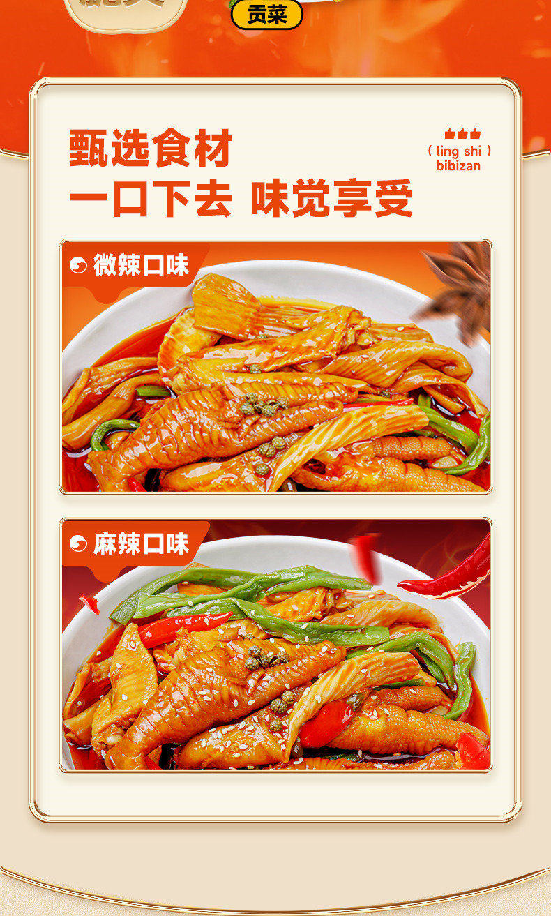 Bibizan Spicy Mixed Stew Boneless Chicken Feet with Gongcai Pickles, Internet-Famous Late-Night Snack, Spicy Snack, Leisure Snack