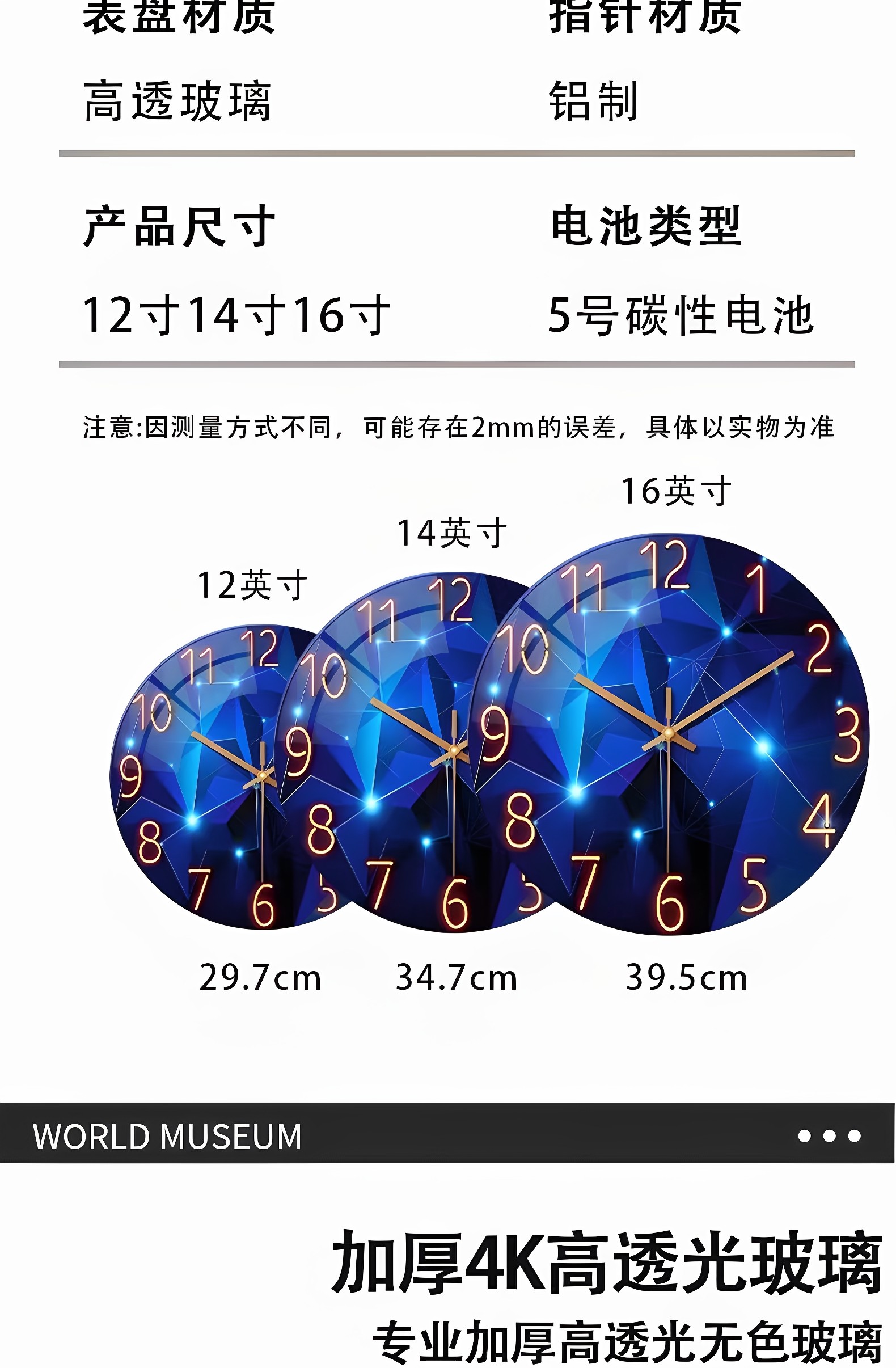 Internet-Famous Silent Wall Clock, Living Room Clock, Bedroom Clock, Creative Quartz Clock, Simple Modern Glass Wall Clock for Home Use