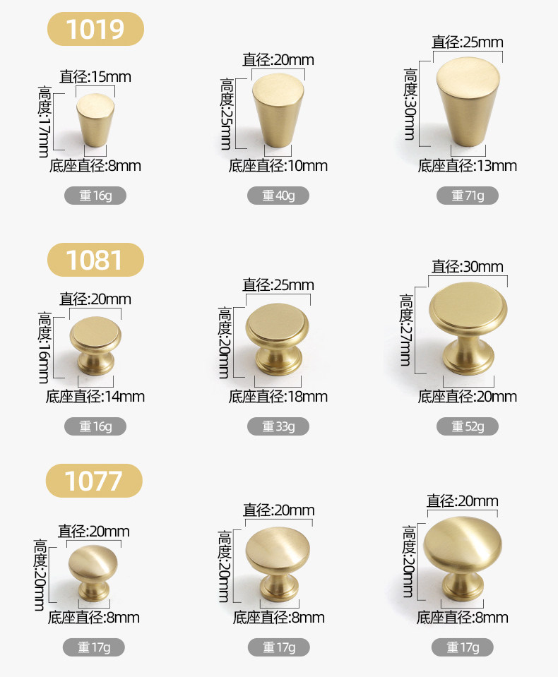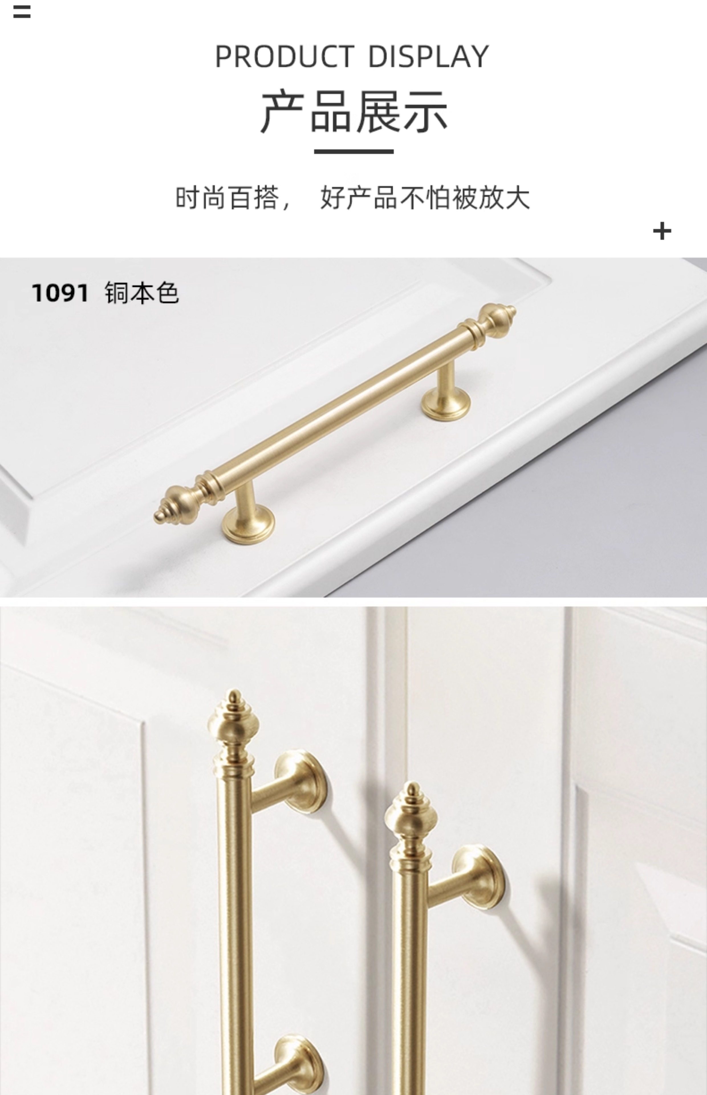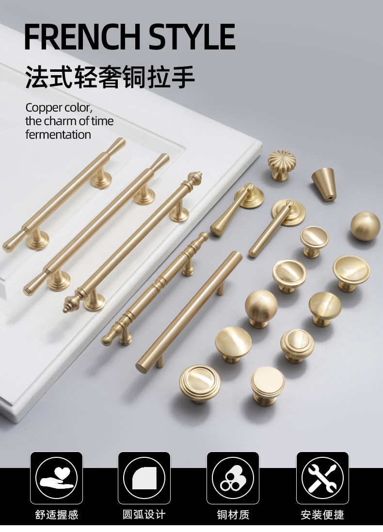 Small Brass Handle, Light Luxury Nordic French Style Wardrobe Door Handle, Drawer Gold Single-Hole Small Handle, Solid Pure Brass