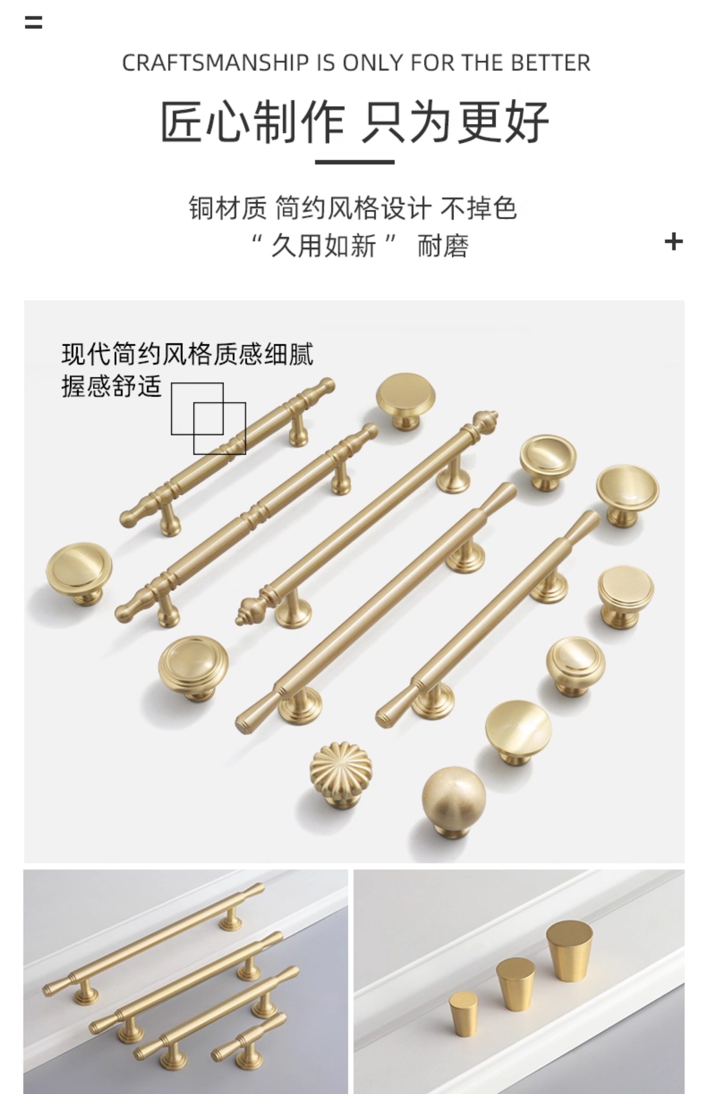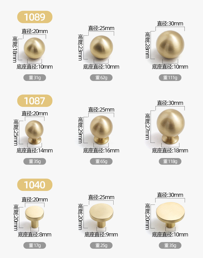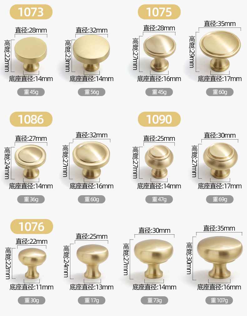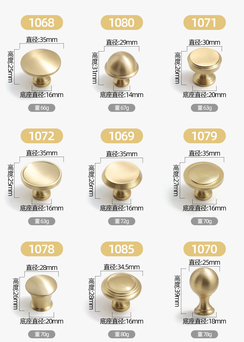 Small Brass Handle, Light Luxury Nordic French Style Wardrobe Door Handle, Drawer Gold Single-Hole Small Handle, Solid Pure Brass