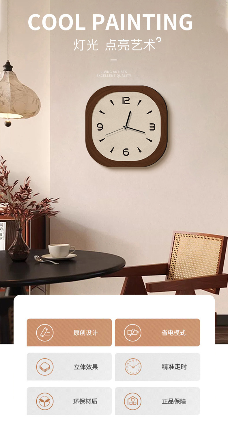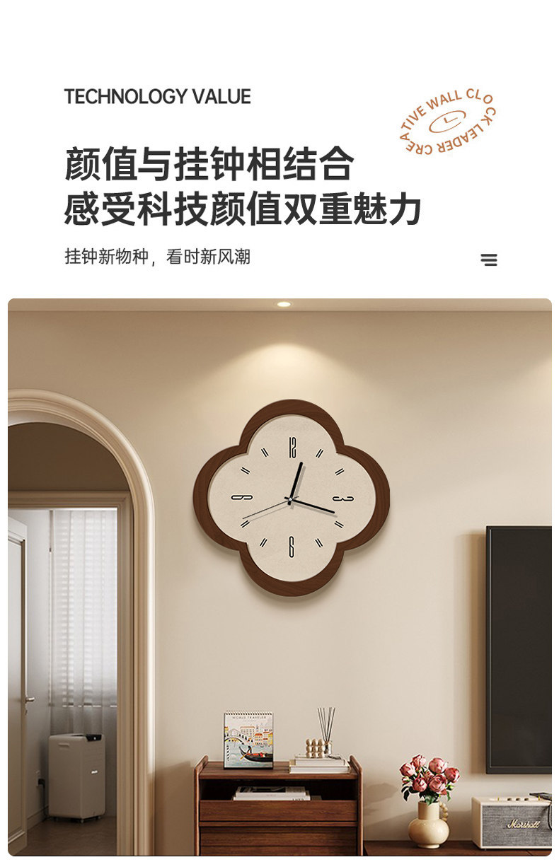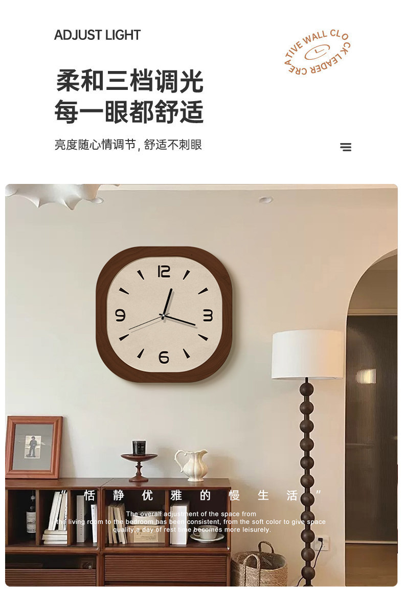2024 New Retro Clock Wall Clock Living Room Light Luxury Dining Room Decoration Silent Bedroom Punch-Free Creative Wall Clock