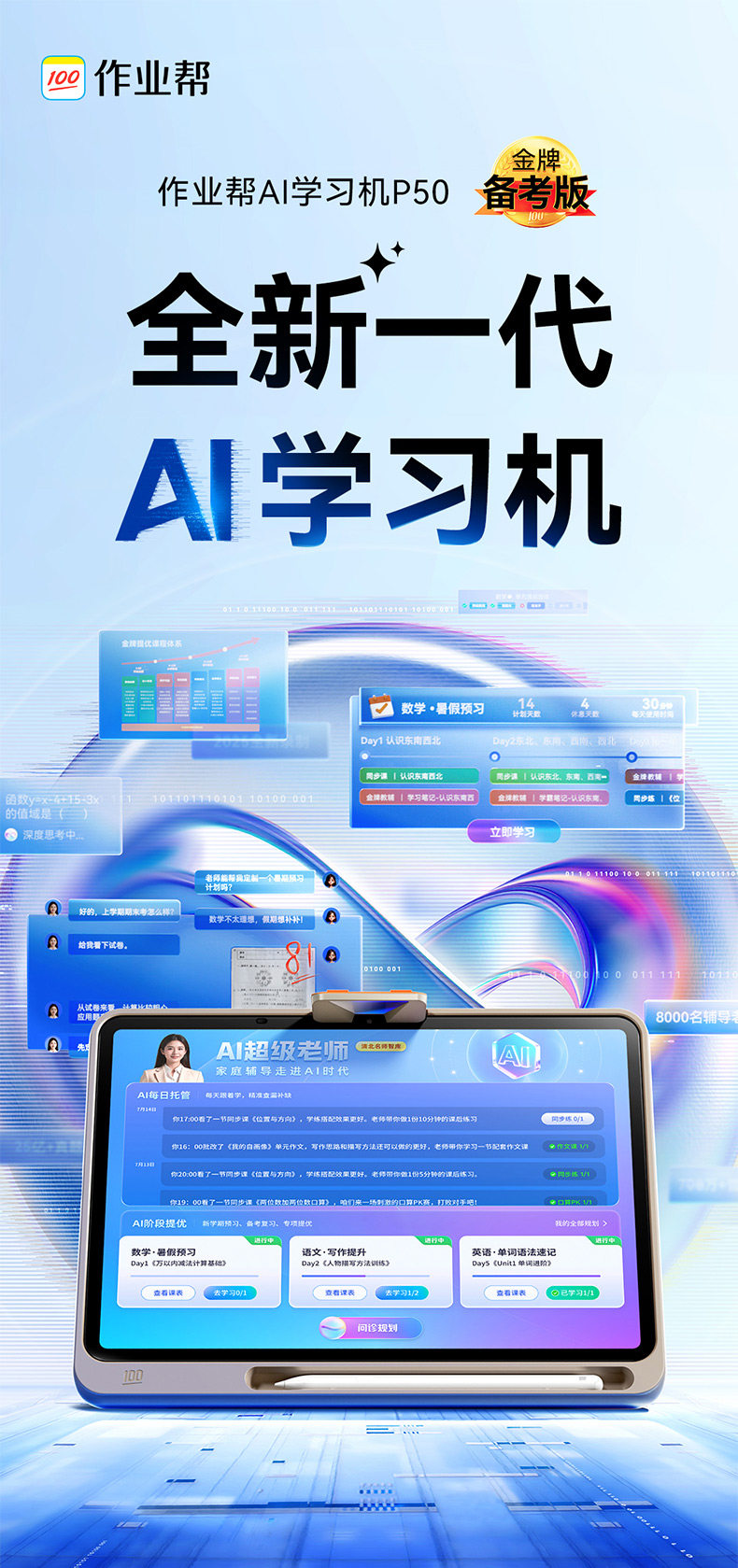 [88Vip Instant Discount of 200, Refund if You Buy It at a Higher Price]Zuoyebang P50 Learning Machine with Ai Dual Model, 256 Tutoring Exercises, Suitable for Children in Elementary, Middle, and High School, Universal Large-Screen Eye-Protecting Tablet official store