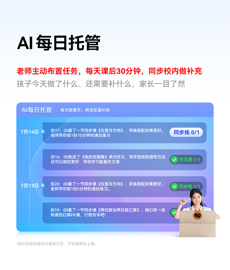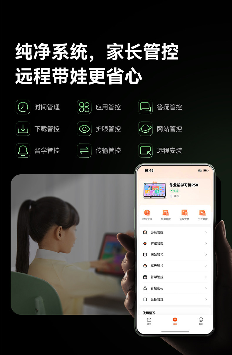 | Parental Control | Sitting Posture Monitoring,Combination Mode,Self-Study Statistics,Answer Locked,Internet Access Control,Content Filtering,Parental Mobile App,Application Download Restrictions,Take Regular Breaks,Parents Accompany Learning,Time Period Control,Ai English Q&A and Tutoring,Usage Statistics,Application Management,Account Switching,Personalized Reminder,Learning Daily |
