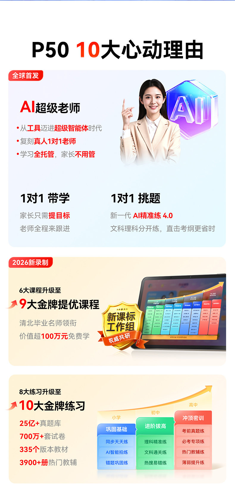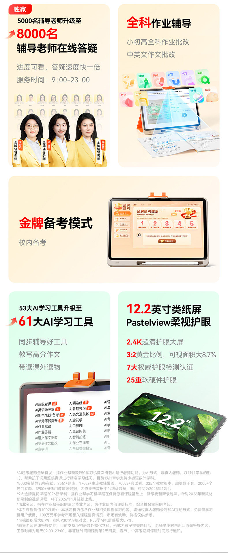 | Color Classification | 【Price Match Guarantee: Get a Refund if You Find It Cheaper Elsewhere!】 P50 (6+3/256g) Bundle: Includes Stylus Pen + Protective Case + Keyboard,【Price Match Guarantee】P50 (6+3/128g) Bundle: Includes Stylus Pen + Protective Case + Keyboard + Carrying Case,No Need to Buy Expensive [2499 Refund] P50 (6+3/256g) Free: Answer Pen + Protective Case + Keyboard,No Need to Worry about Overpaying! [Price Match Guarantee: Get a Refund if You Find It Cheaper Elsewhere] P50 (6+3/128g) Bundle: Includes a Stylus, Protective Case, Keyboard, and Carrying Case,No Need - P50 (6+3/256g) Free: Answer Pen + Protective Case + Keyboard,No Need - P50 (6+3/128g) Comes With: Answer Pen + Protective Case + Keyboard + Storage Bag,No Need to [Consult Customer Service 2498] P50 (6+3/256g) Comes With: Answer Pen + Protective Case + Keyboard,No Need to [Consult Customer Service 2299] P50 (6+3/128g) Comes With: Answer Pen + Protective Case + Storage Bag + Keyboard and Mouse,Abandoned [Consult Customer Service 2498] P50 (6+3/256g) Comes With: Answer Pen + Keyboard + Protective Case,Discontinued [Contact Customer Service 2299] P50 (6+3/128g) Bundle: Includes Stylus + Protective Case + Carrying Case + Keyboard & Mouse,A New Generation of Ai Learning Machine,Graded Homework for Primary, Junior and Senior High School Students,Abandon-P50 128,Best-Selling Product, Recommended by the Store Manager,[National Subsidy 4299] X50 (8+4/256g) Comes With: Keyboard + Cosmetics Bag + Answer Pen + Protective Case,Price Guarantee Across the Entire Network: Get a Refund for the Difference if You Find a Lower Price,【Nationwide Subsidy 3799】t35 (8+4/256g) Bundle: Keyboard + Sleeve + Stylus + Protective Case,Limited Time National Subsidy, Hurry up if You Want to Buy,The New Curriculum Standard Has the Highest Resource Volume,Spare T30 Is Normal,Spare T30 Price Increase,Spare-X58 Normal Price 5999,Spare-X58 Price Increase 6099,Spare (P30 Normal 2819),Spare (P30 Normal 2919) |