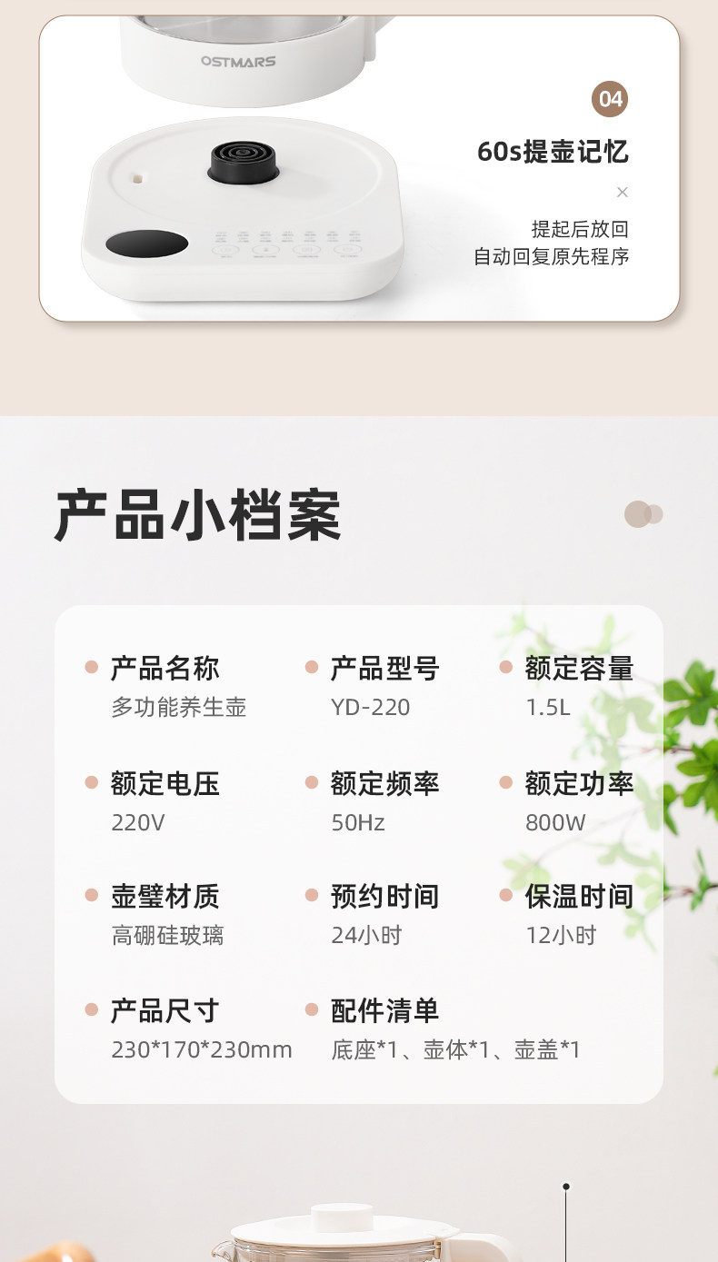 German Ostmars Health-Preserving Stewing Pot, Constant Temperature Health Pot, Tea Brewing Device, Flower Tea Pot, Tea Kettle, Health-Preserving Water Boiling Kettle