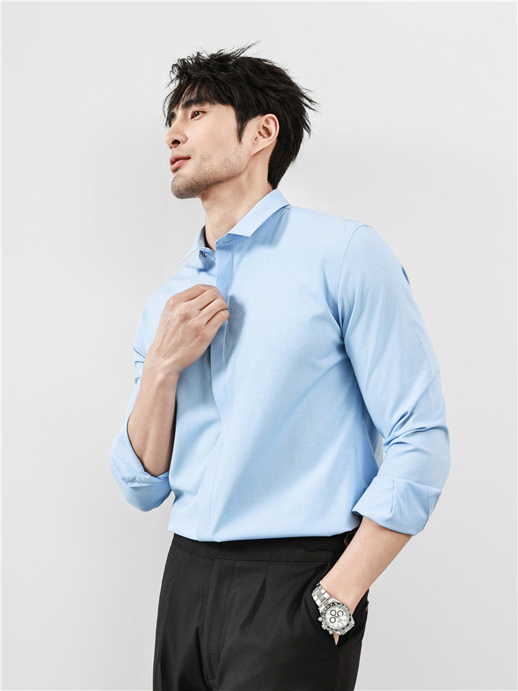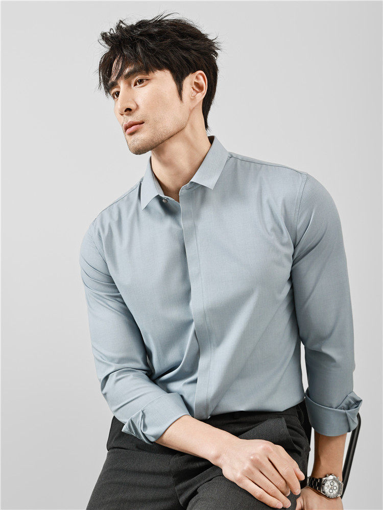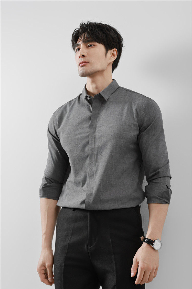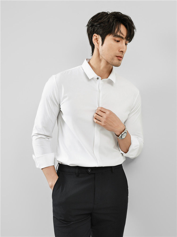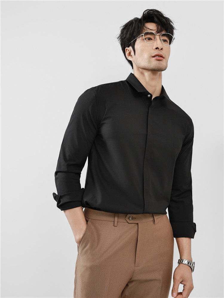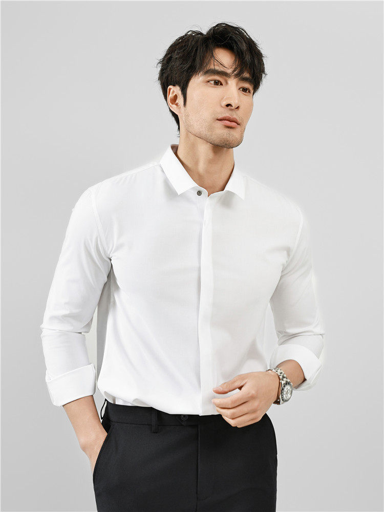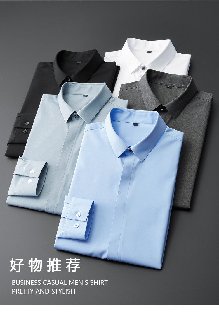 High-End Business Shirts for Men, Hidden Placket, Seamless Taped Shirt, Long-Sleeved Shirt, Men's Casual Slim Fit, No-Iron, Anti-Wrinkle