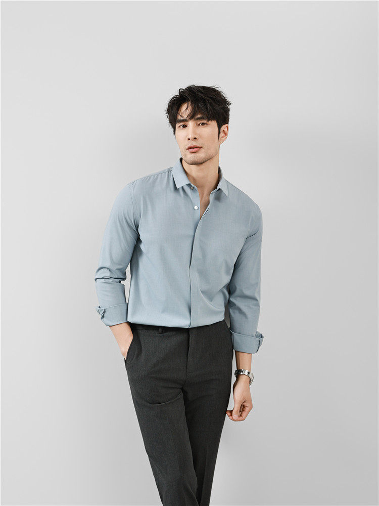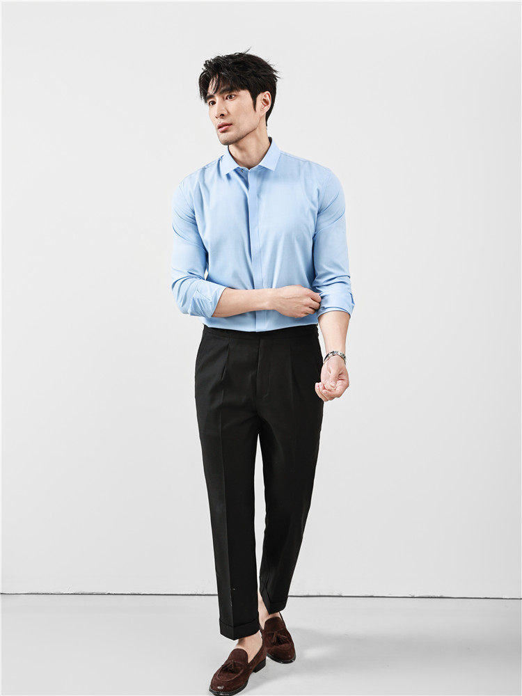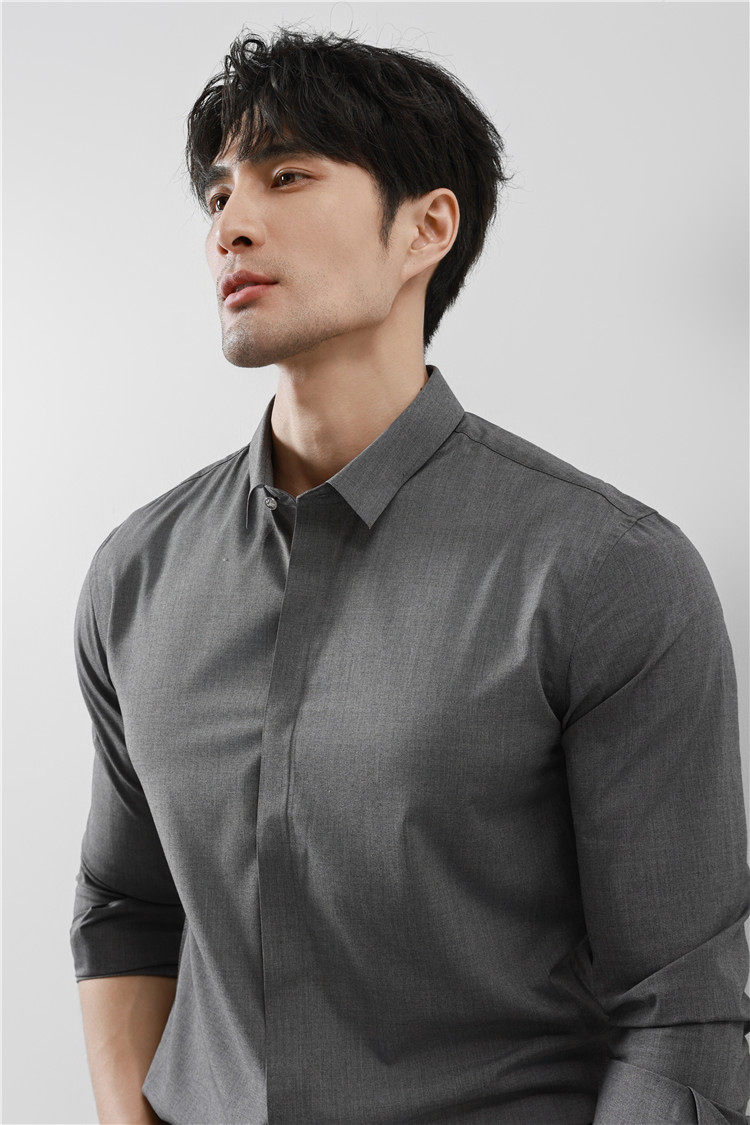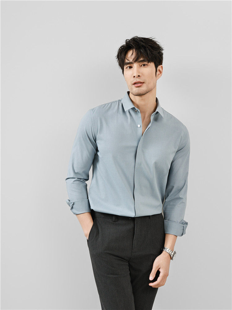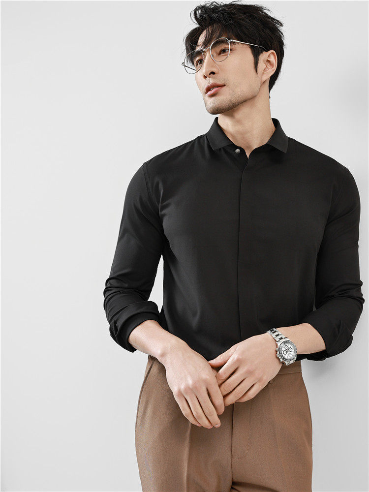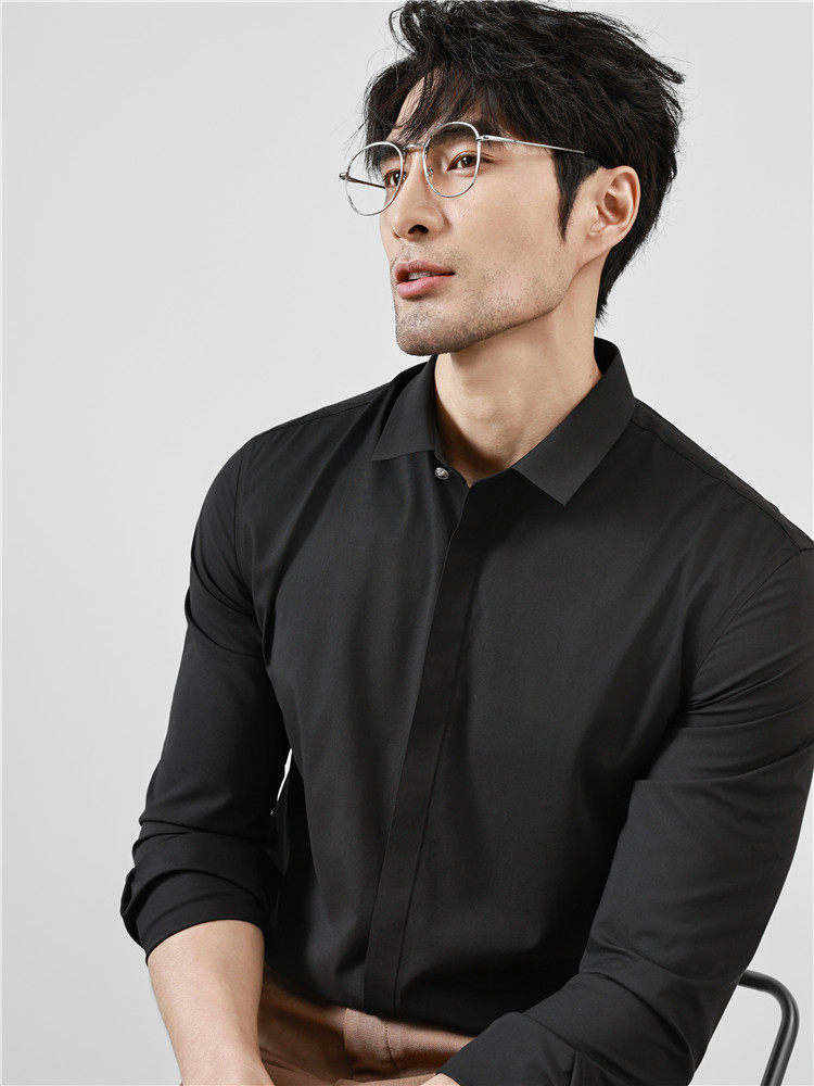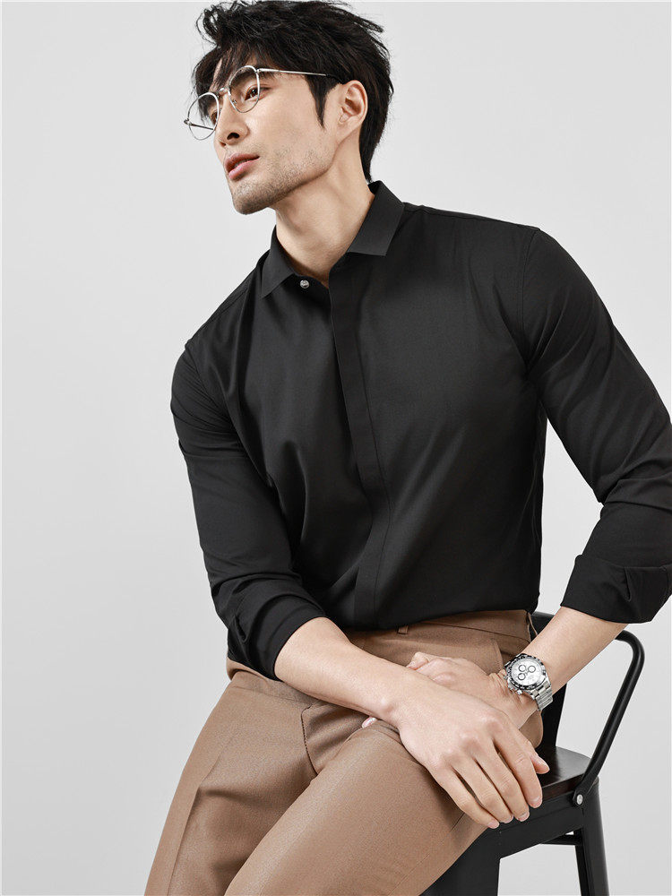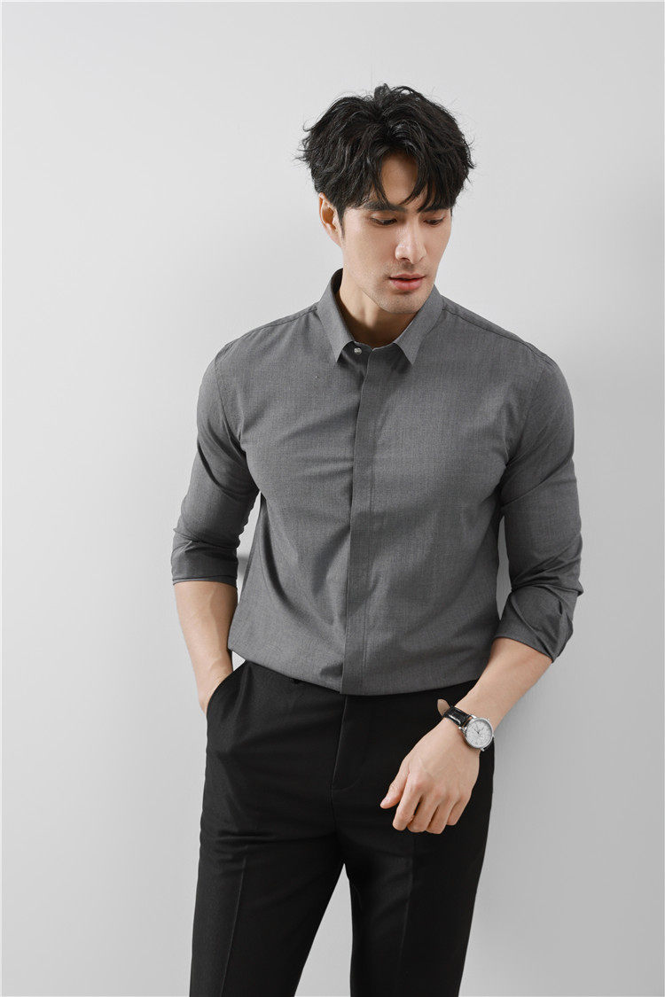 High-End Business Shirts for Men, Hidden Placket, Seamless Taped Shirt, Long-Sleeved Shirt, Men's Casual Slim Fit, No-Iron, Anti-Wrinkle