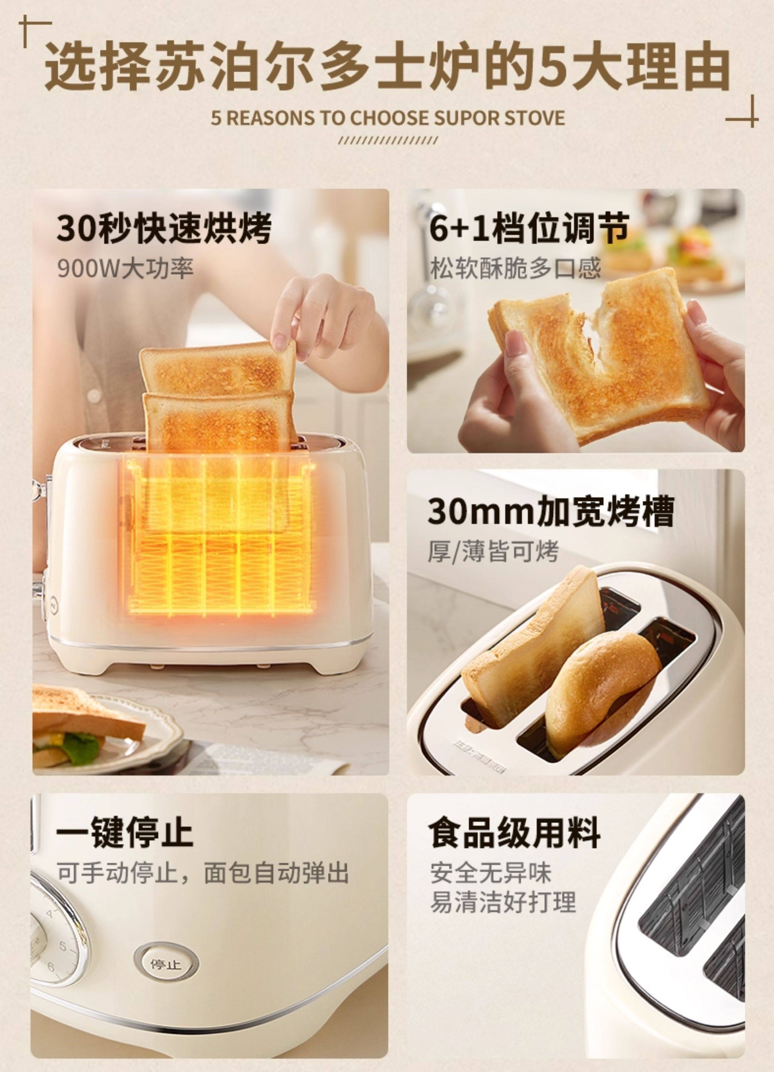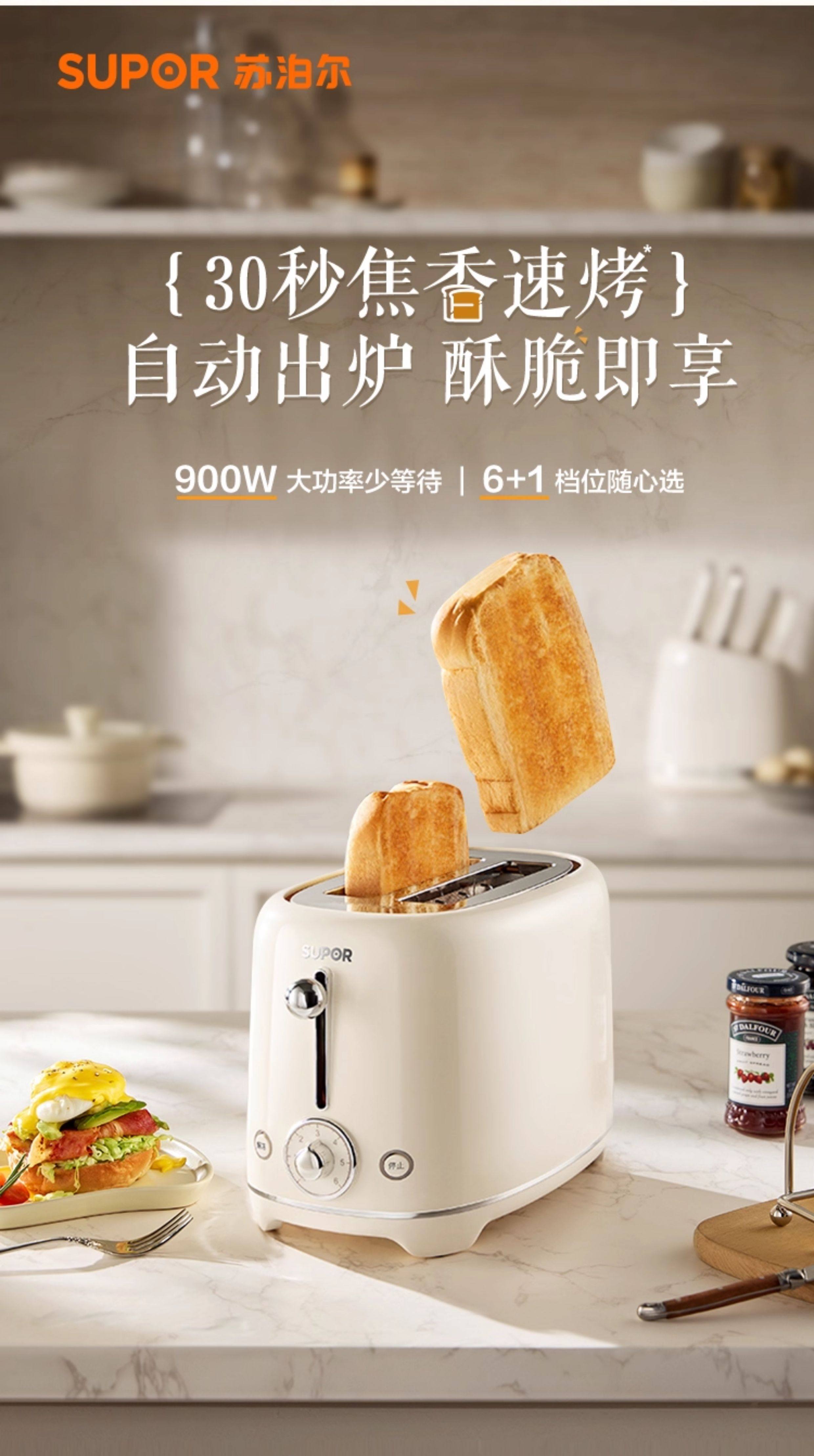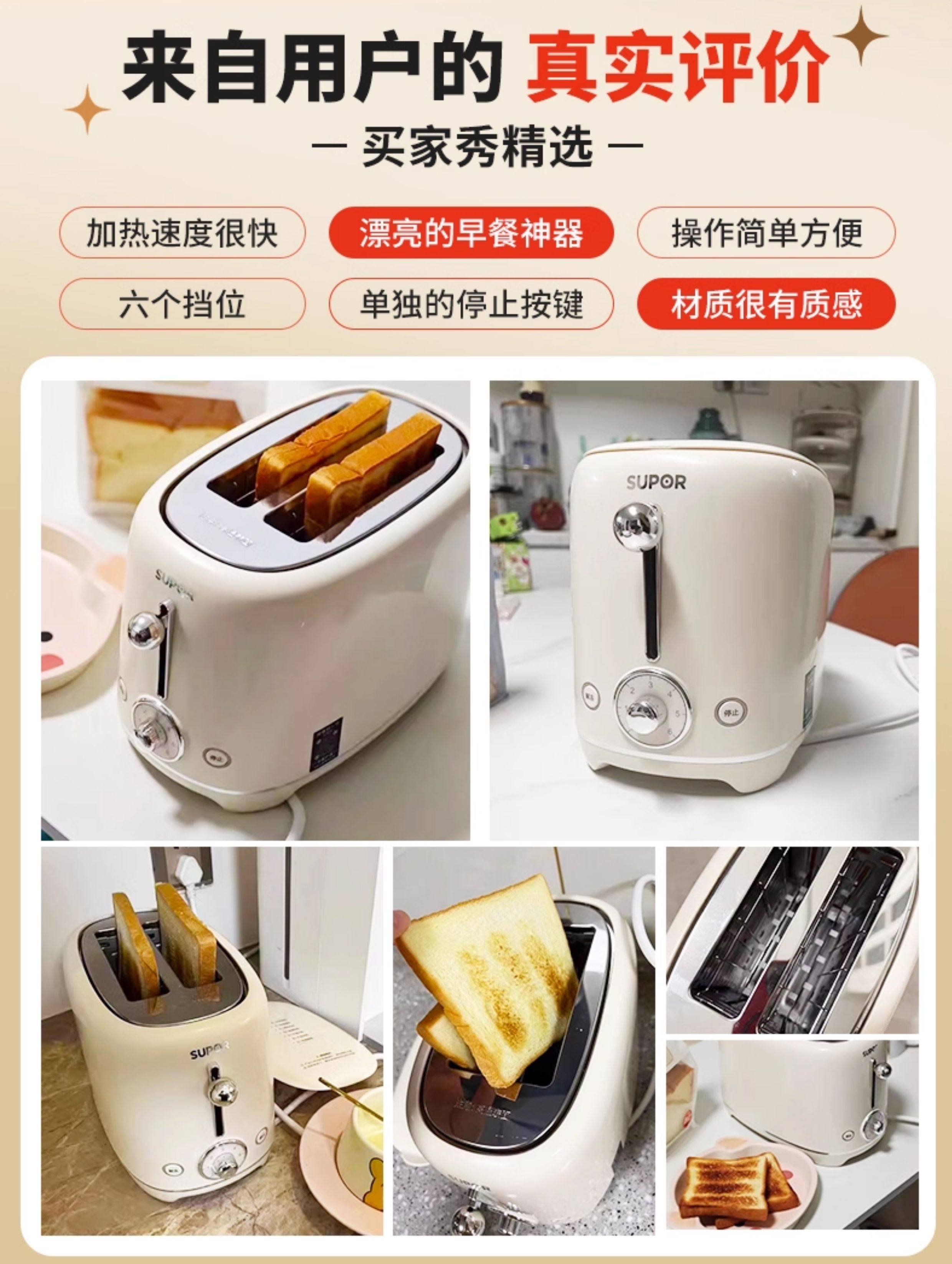 Supor Bread Maker Toaster for Home Use, Fully Automatic Toast Bread Slice Sandwich Breakfast Machine Cooking Machine