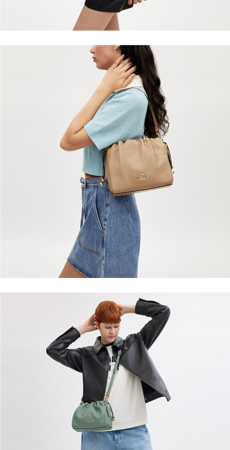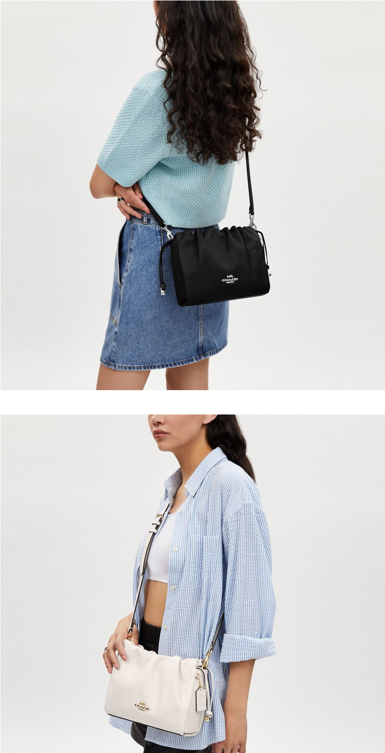 [New Year Gift] COACH Outlet Women's Cow Leather Faye Drawstring Handbag Shoulder Bag Crossbody Bag