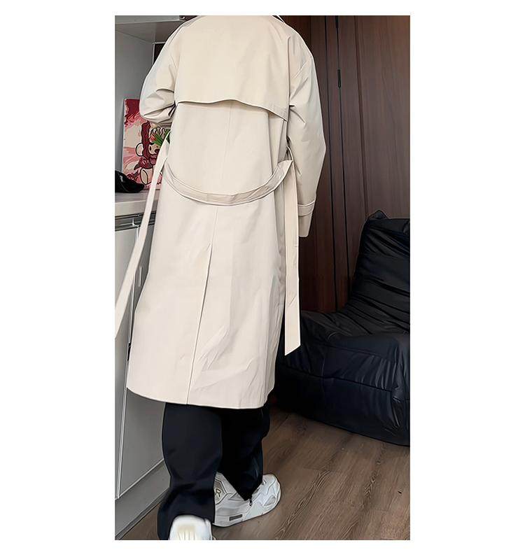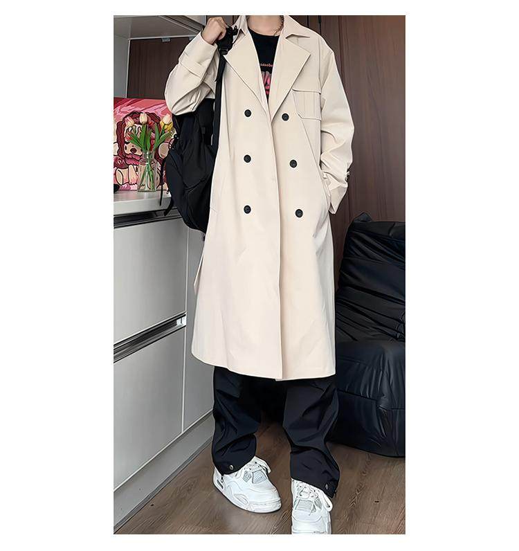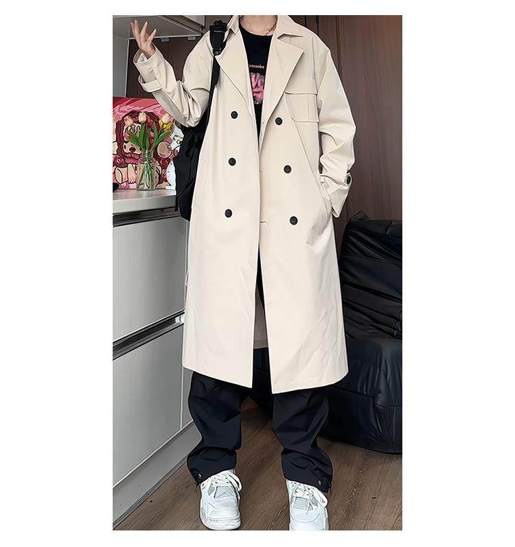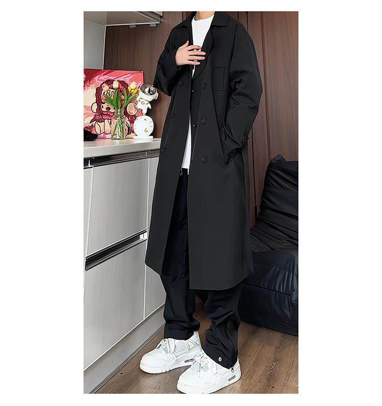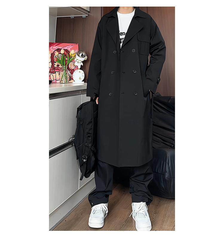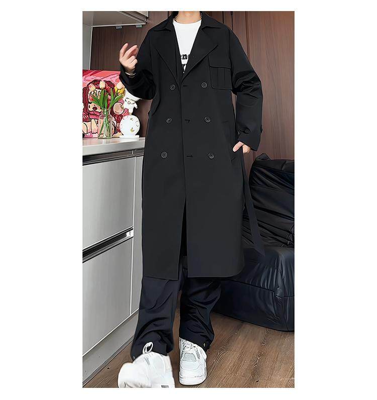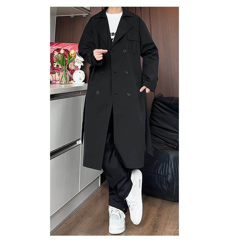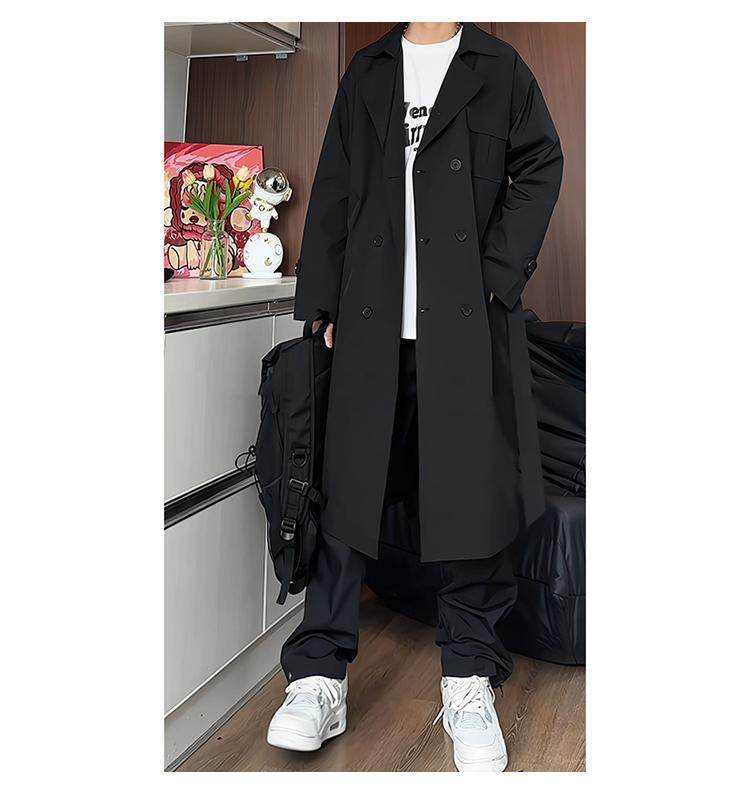 Black Trench Coat for Men, Spring and Autumn, Korean Style, High-End Look, Mid-Length, Youth College Style, Over-The-Knee Coat