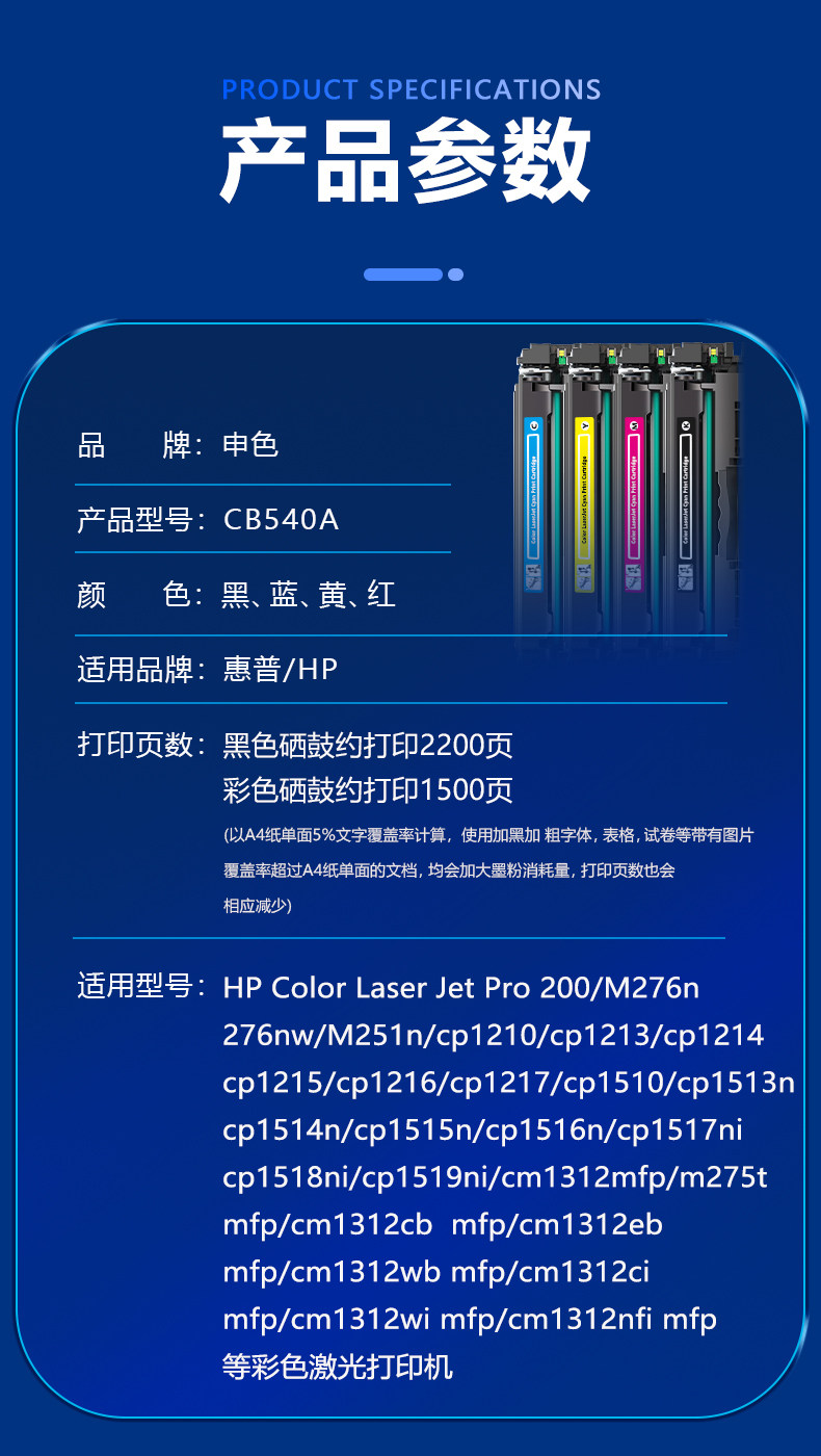 | Color | [Cb540A-Black Toner Cartridge]About 2200 Pages/Easy to Add Powder,[Cb541A-Blue Toner Cartridge]About 1500 Pages/Easy to Add Powder,[Cb542A-Yellow Toner Cartridge]About 1500 Pages/Easy to Add Powder,[Cb543A-Red Toner Cartridge]About 1500 Pages/Easy to Add Powder,[Discounted Set-Four-Color Toner Cartridge]Black, Yellow, Red and Blue/Store Manager Recommended,[Add Powder Package]Four-Color Toner Cartridge + Four-Color Toner/Value Recommendation |