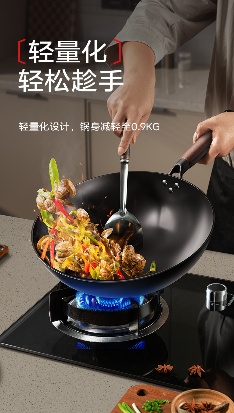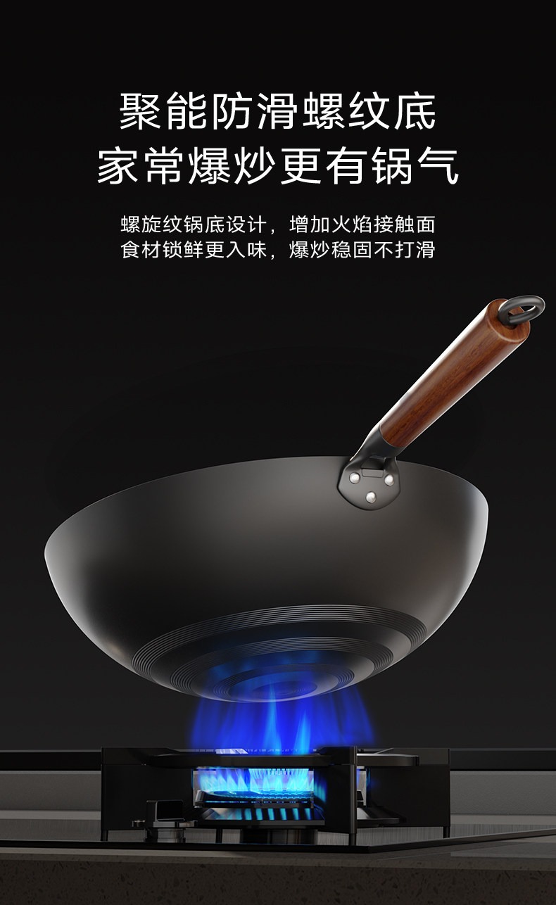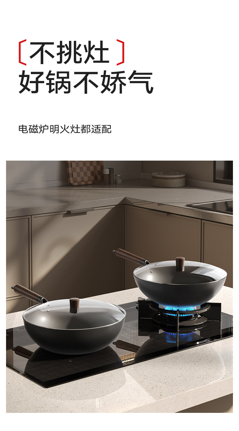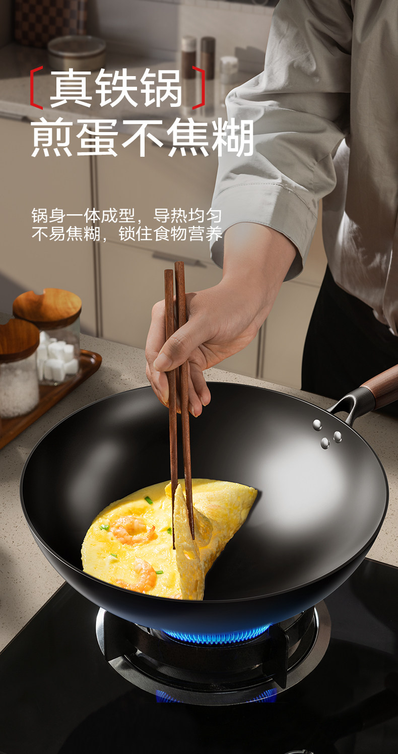 Fengdi Iron Wok, Non-Coated Non-Stick Frying Pan for Home Use, Zhangqiu Cooking Pan, Suitable for Gas Stoves and Induction Cookers, Flagship Store